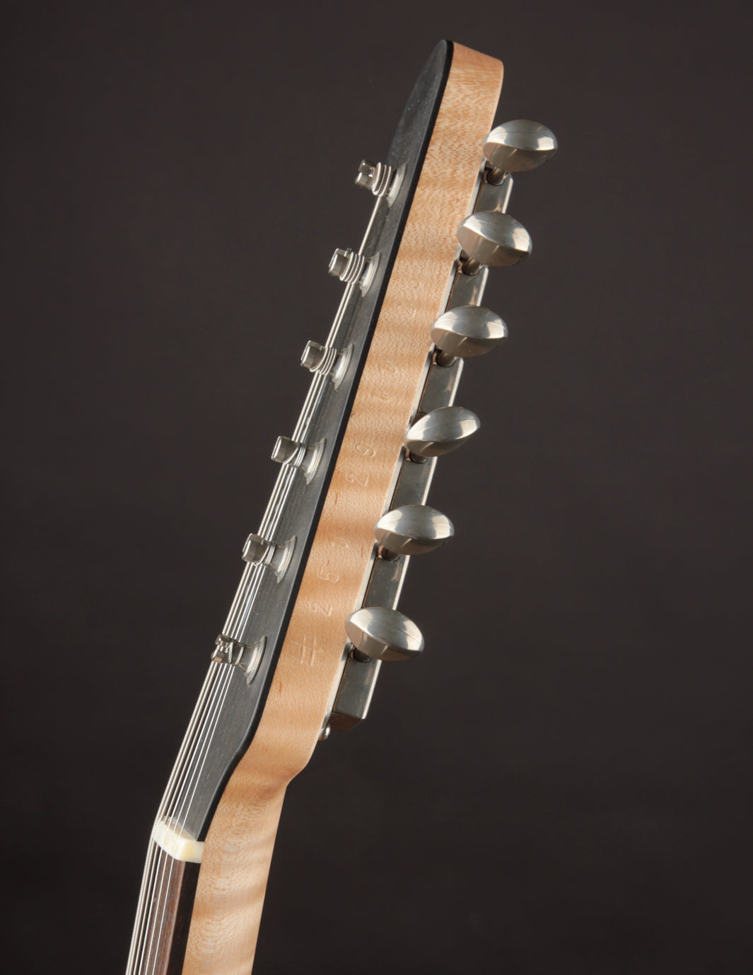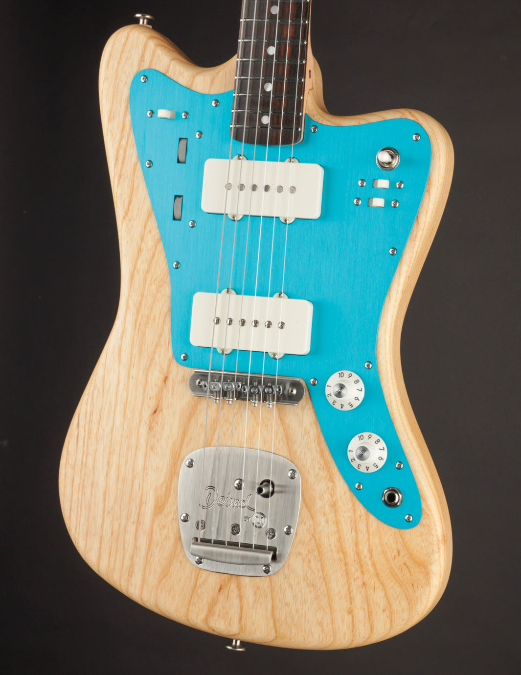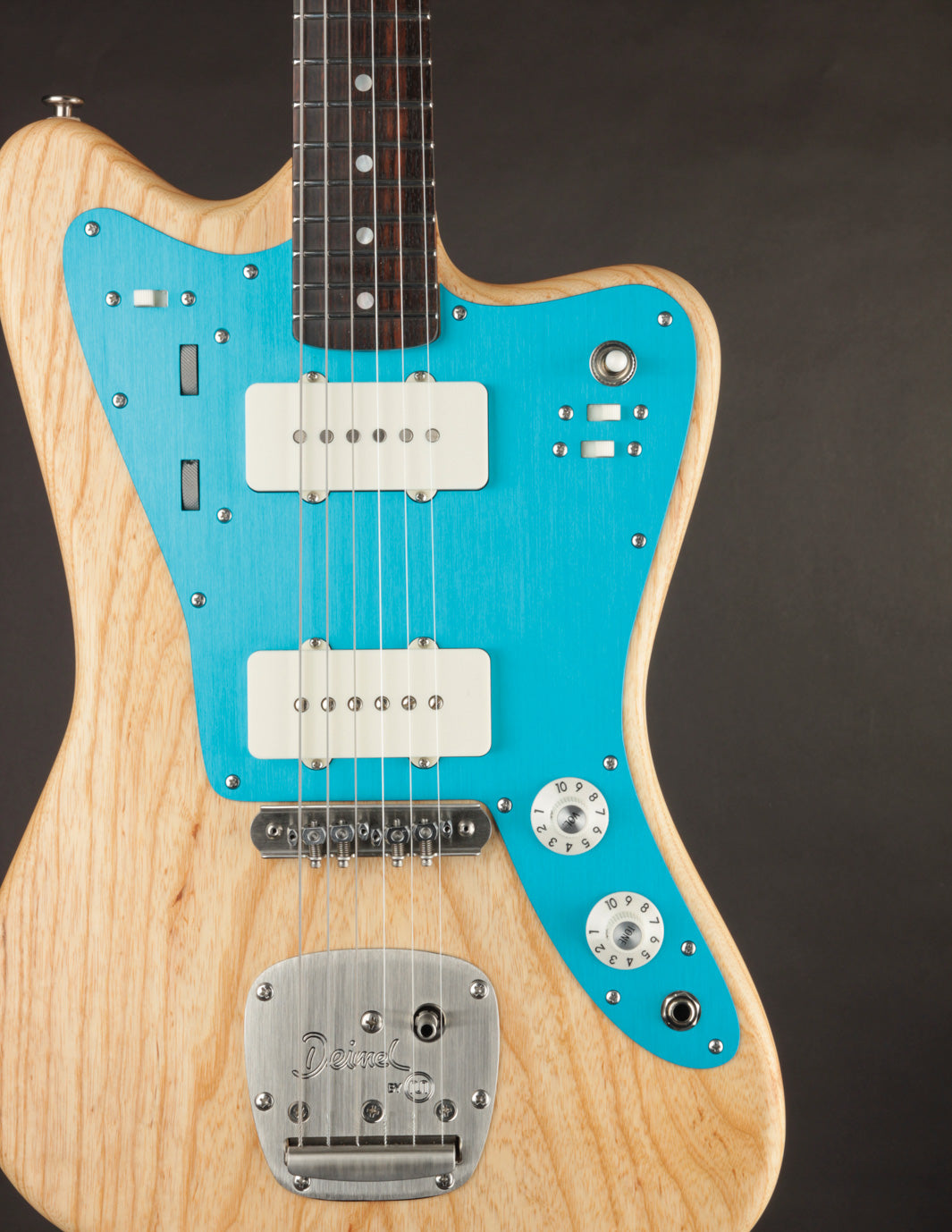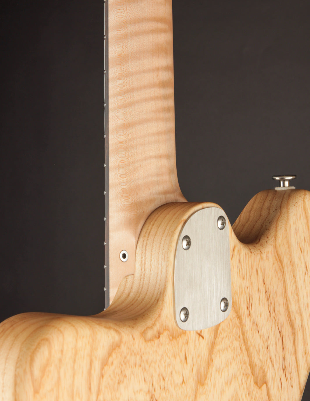 If you've handled the likes of a Huber, Ronin, or Koll, the playability will feel right at home. These guitars are incredibly well dialed-in, with expert fretwork and neck shaping along with a truly remarkable level of fit and finish. The beautiful natural-finished one piece Swamp Ash body has some deep and dramatic grain - kind of seismographic in a way. It sets the table for a bright a vivid Turquoise anodized aluminum guard that pops when combined with the white plastics. Top shelf hardware (Mastery, Gotoh) and high quality electronics (CTS, Bourns) also help maintain that high level of playing experience and function. No stone is left unturned with these guitars.