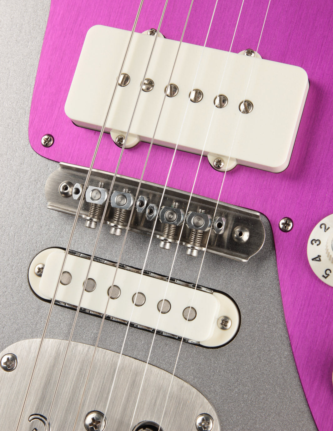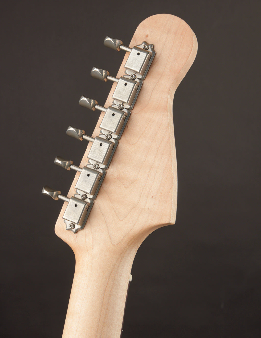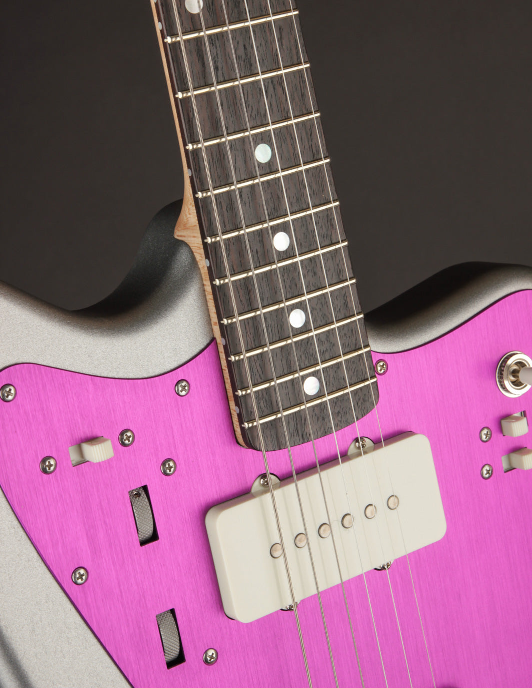 If you've handled the likes of a Huber, Ronin, or Koll, the playability will feel right at home. These guitars are incredibly well dialed-in, with expert fretwork and neck shaping along with a truly remarkable level of fit and finish. The Platinum Silver Metallic and Magenta anodized guard are incredible in person - nothing else really presents like this. Top shelf hardware (Mastery, Gotoh) and high quality electronics (CTS, Bourns) also help maintain that high level of playing experience and function. No stone is left unturned with these guitars.