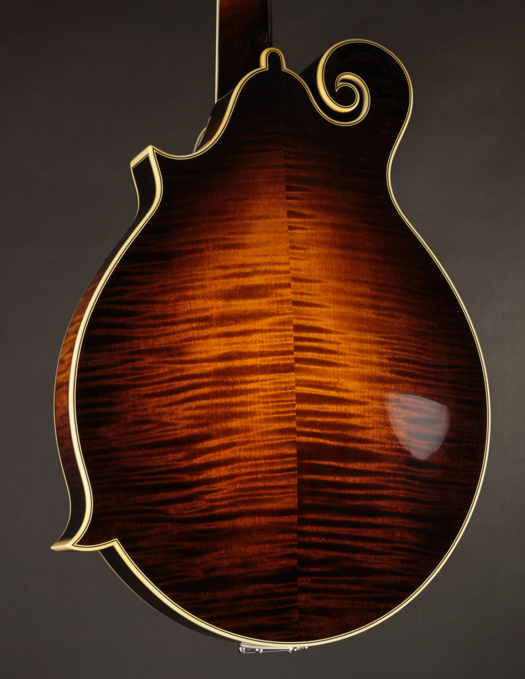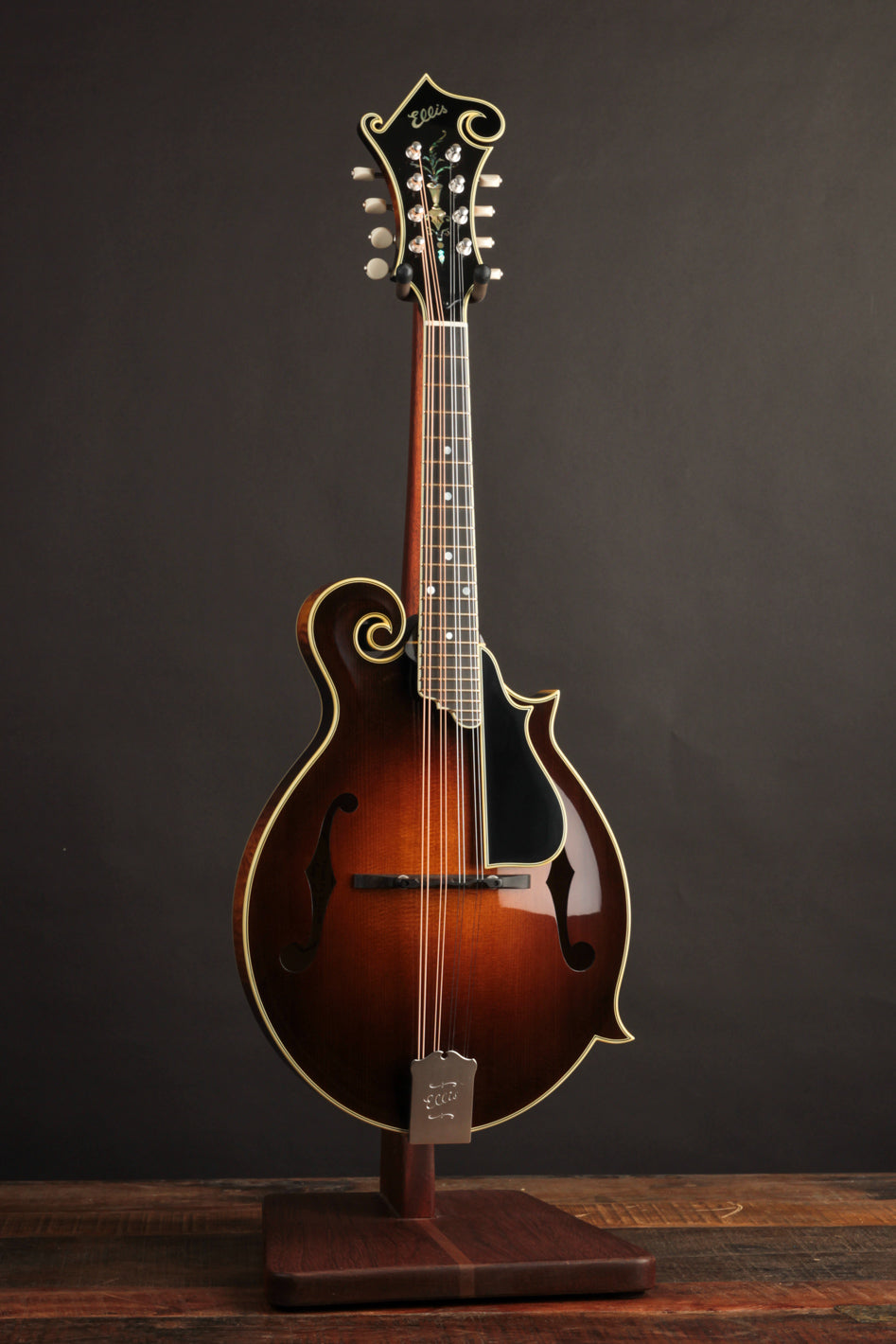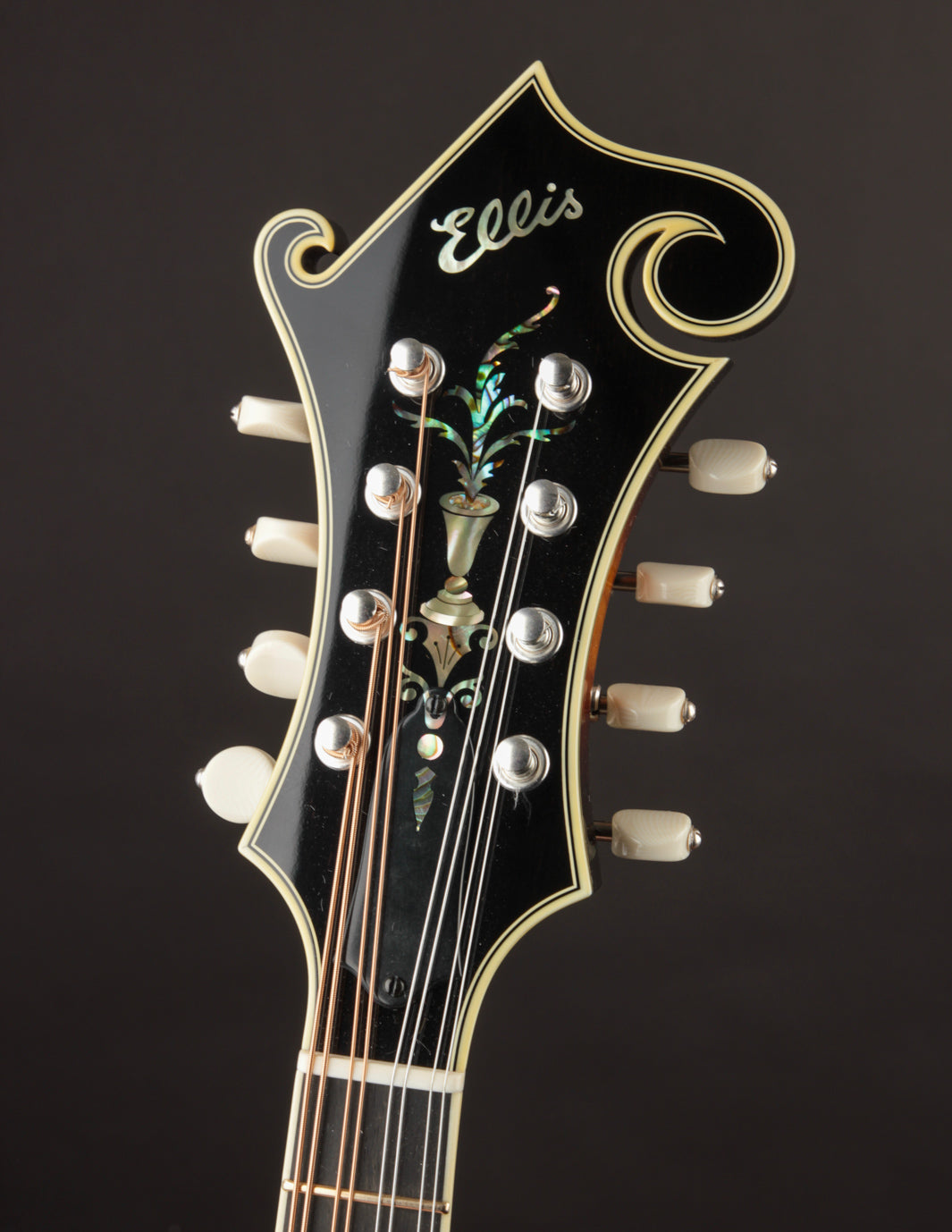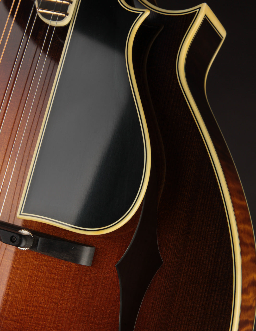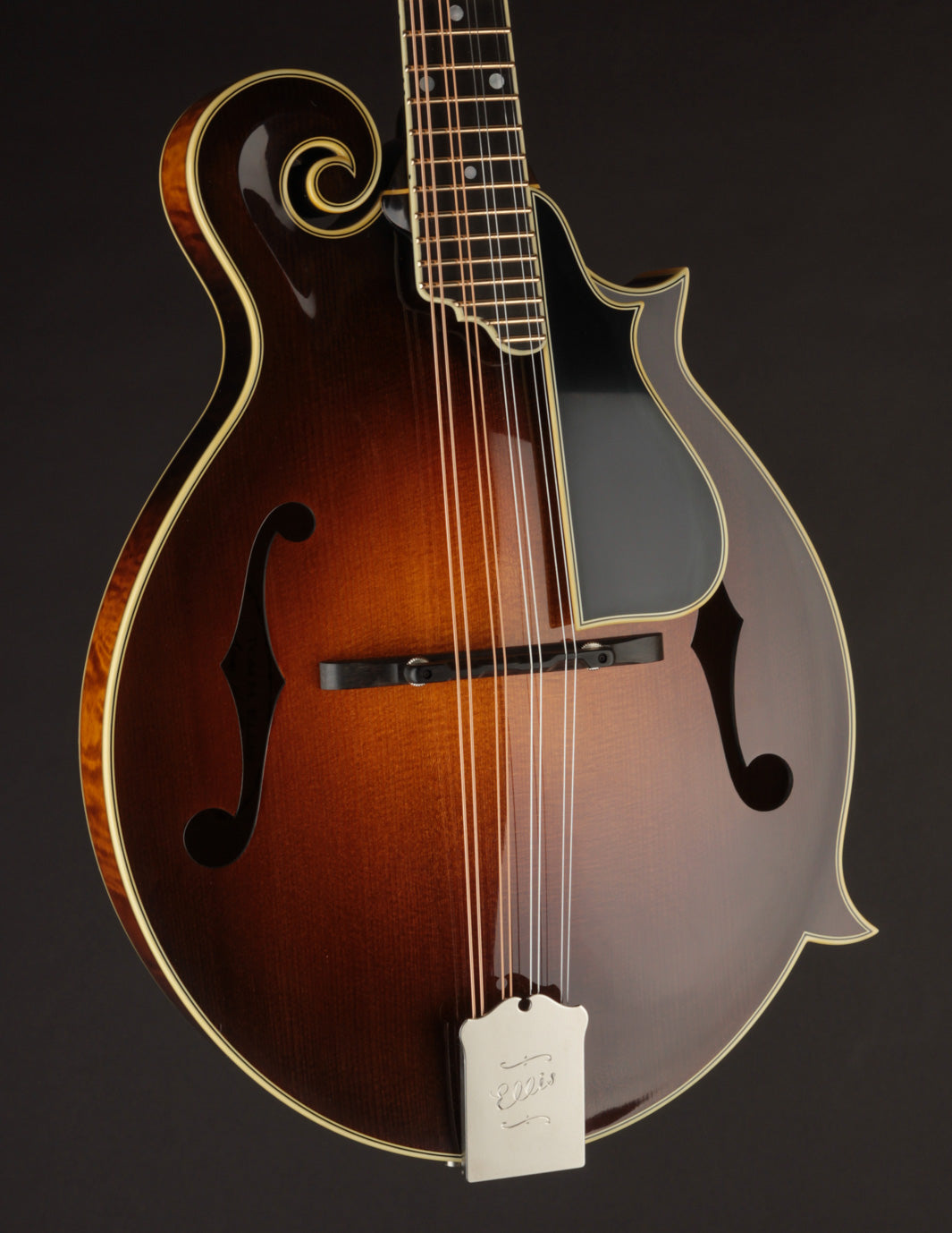 For this particular Ellis F5, we diverted a little bit from our typical path. Although we've been known to gush over beautiful quilted wood and gorgeous inlay, with this mandolin the only directive was, "Pick the wood that's going to make the best sounding bluegrass mandolin available." And is this instrument ever a testament to Tom's ability to voice a mandolin! The hand-picked Sugar Maple back and torrefied Red Spruce top combine to produce the kind of sound we haven't heard from our other Ellis instruments. While they're always beautiful and rich-sounding, this one has an openness and degree of power that make it the perfect choice for a bluegrass player interested in a world-class mandolin. An absolute knockout. Priced with a Calton case made specially for Ellis.