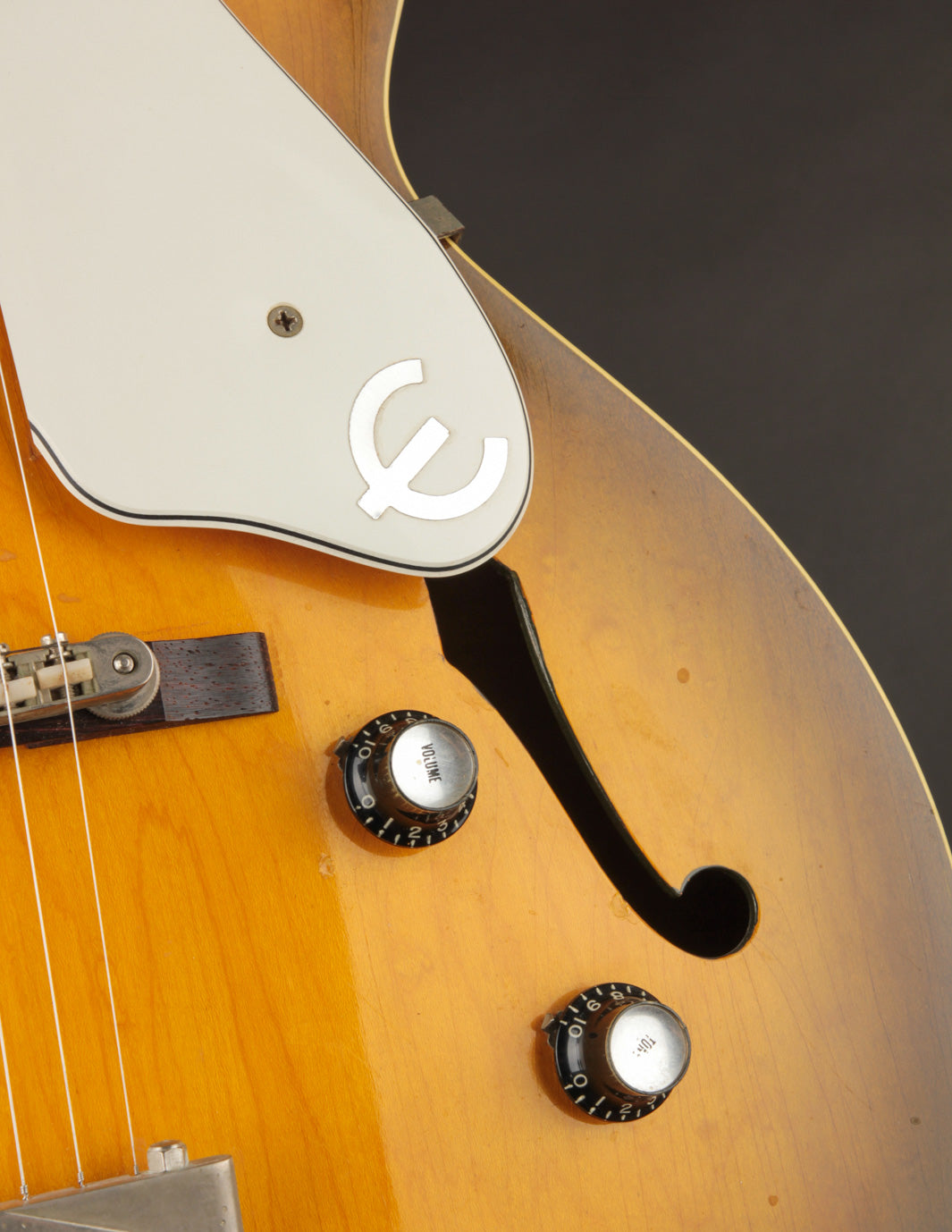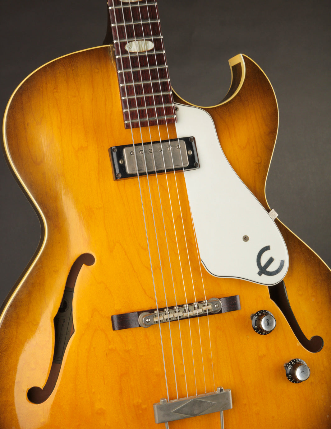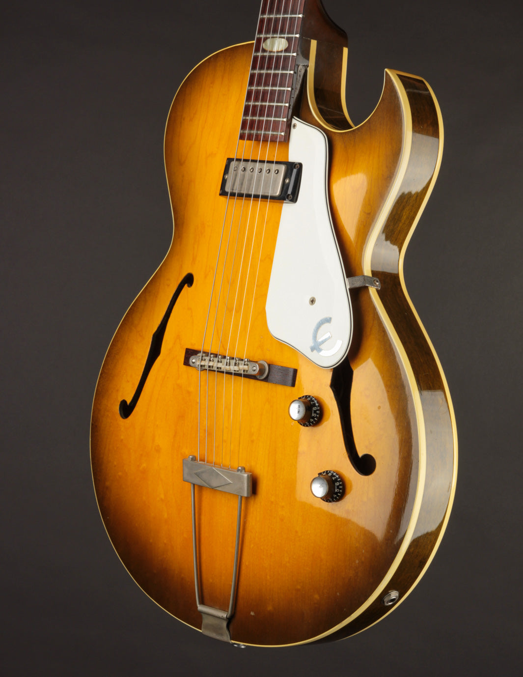 The cooler younger brother to Gibson's ES-125T, this 1964 Epiphone Sorrento offers great playability and comfort with that bouncy acoustic thinline hollowbody tonality that makes it a hard guitar to put down.