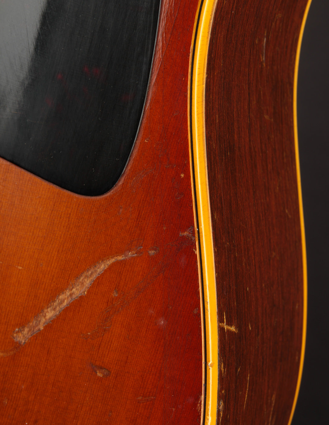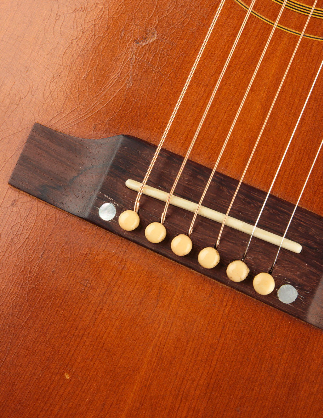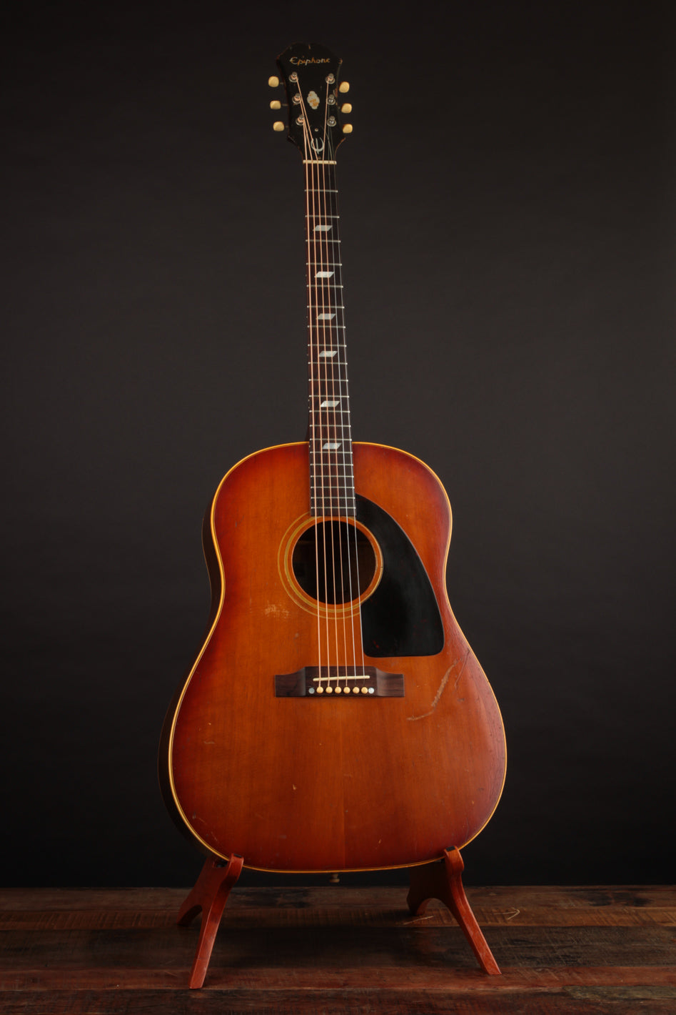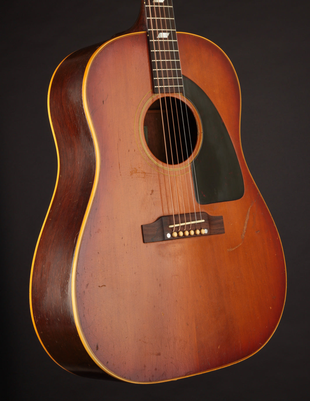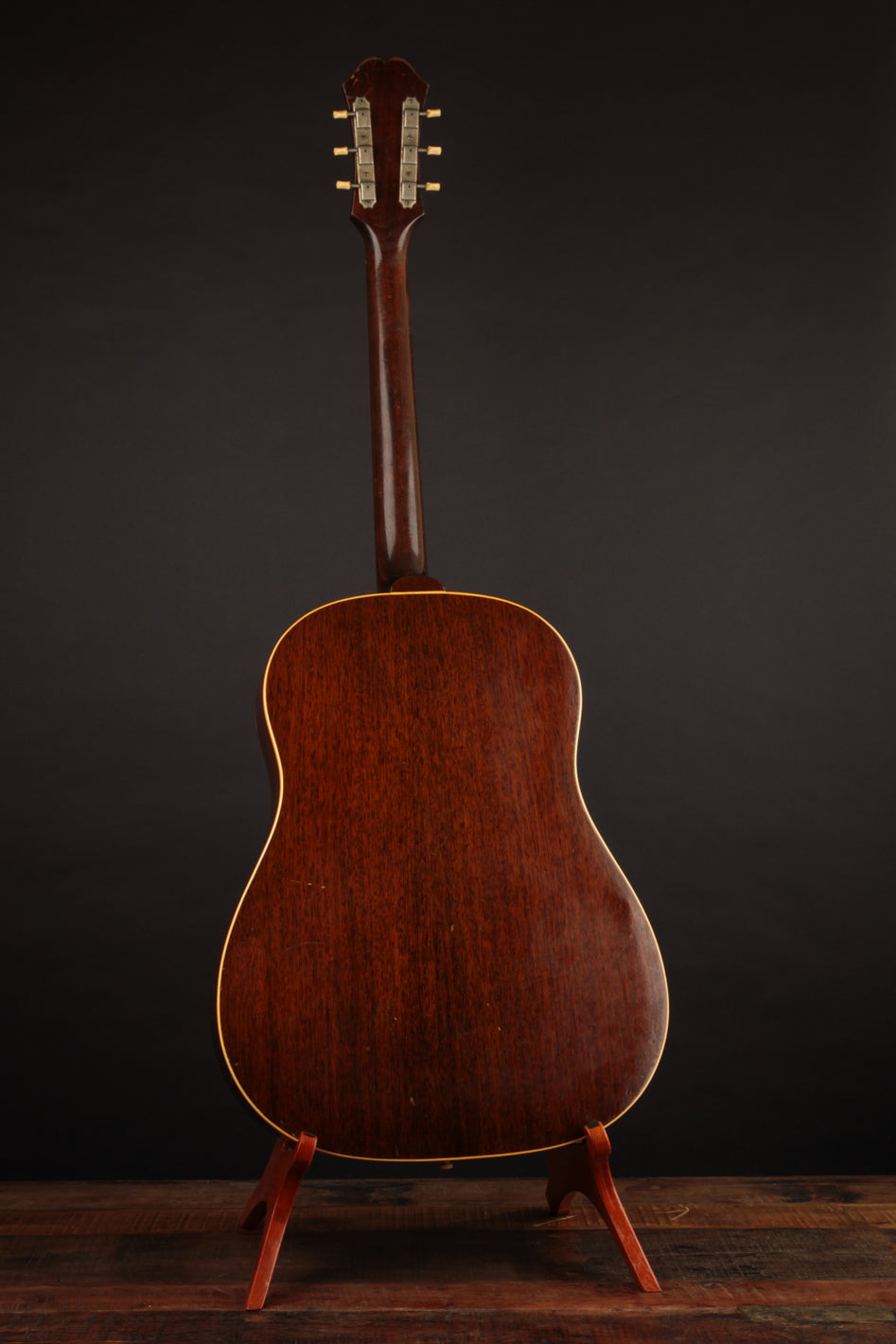 This particular Texan has weathered the years very well. And although it's been played, its structure is still in great condition. The original adjustable saddles have been replaced with a modern, bone counterpart (many of us would consider this swap an improvement). Aside from that modification, it remains as it was made in 1965 (battle scars from lots of gigs notwithstanding). No cracks, and overall very good vintage condition. We think this is a particularly good sounding Texan; and if you're looking for a vintage dreadnought it's well worth consideration. Priced with non-original hard case.