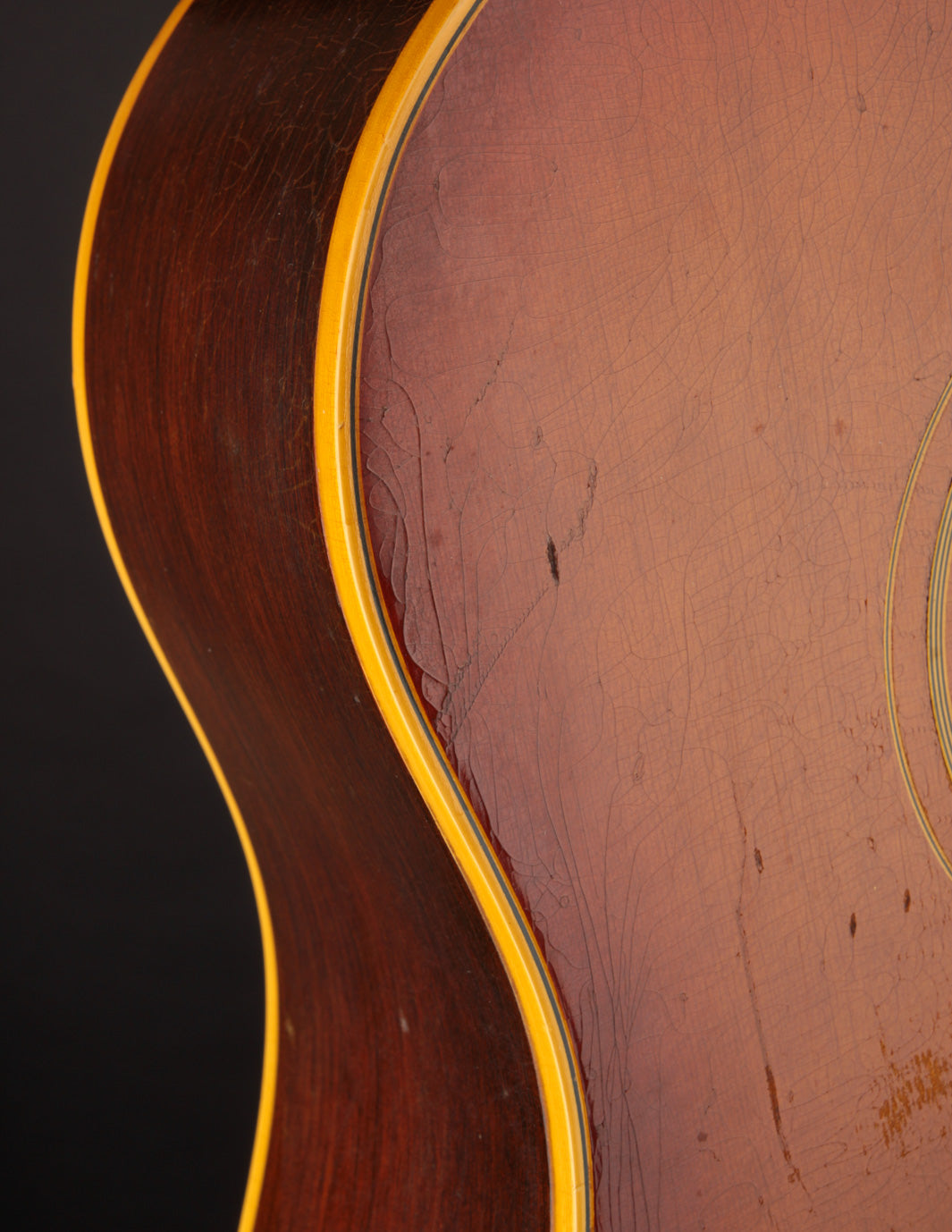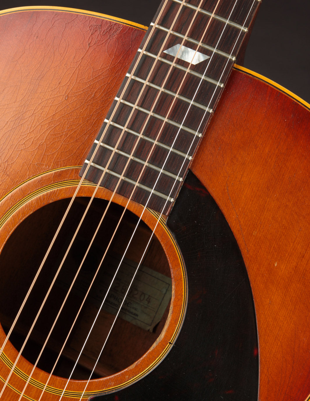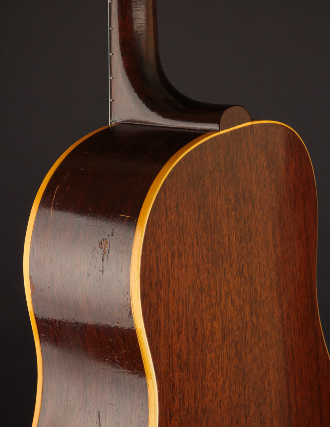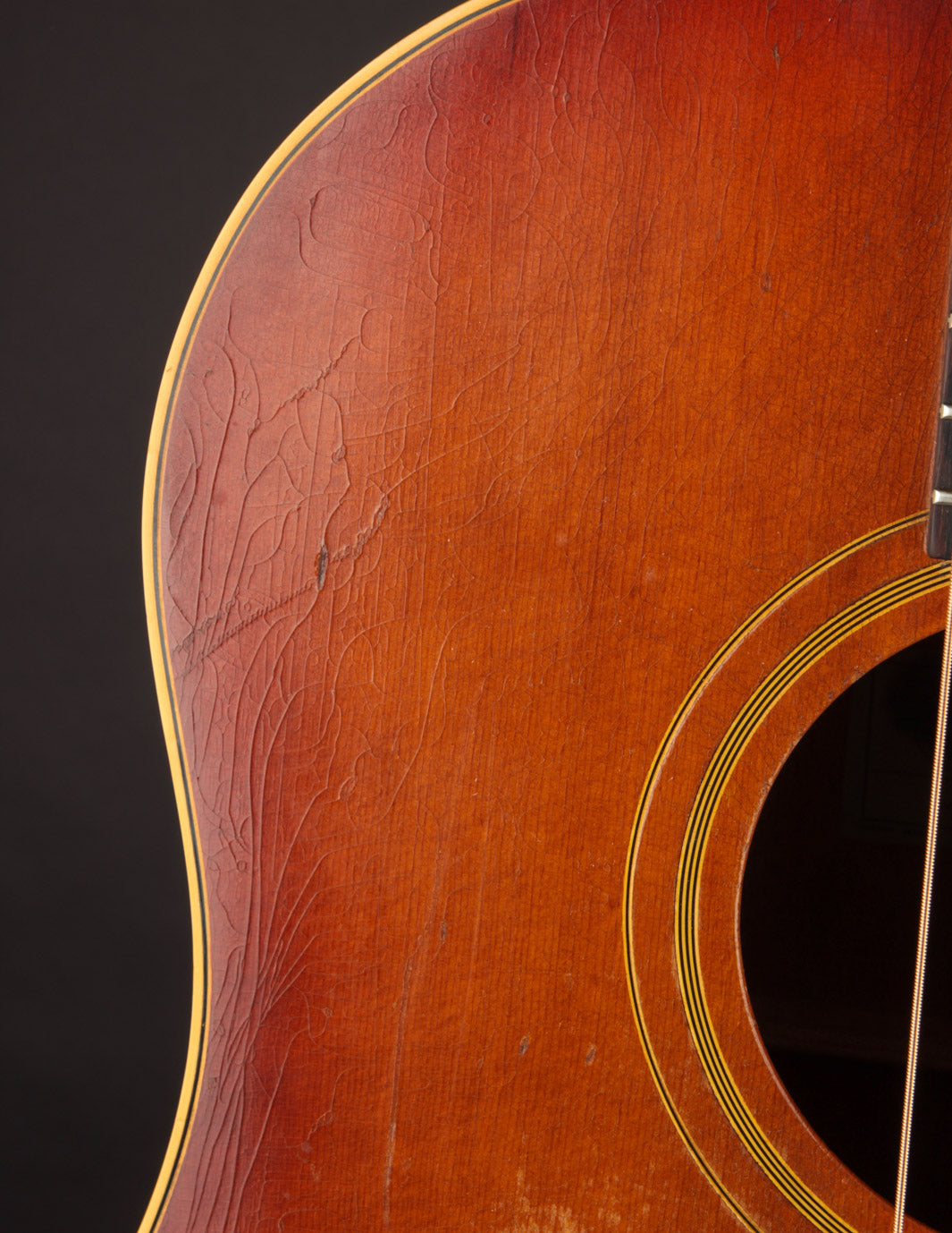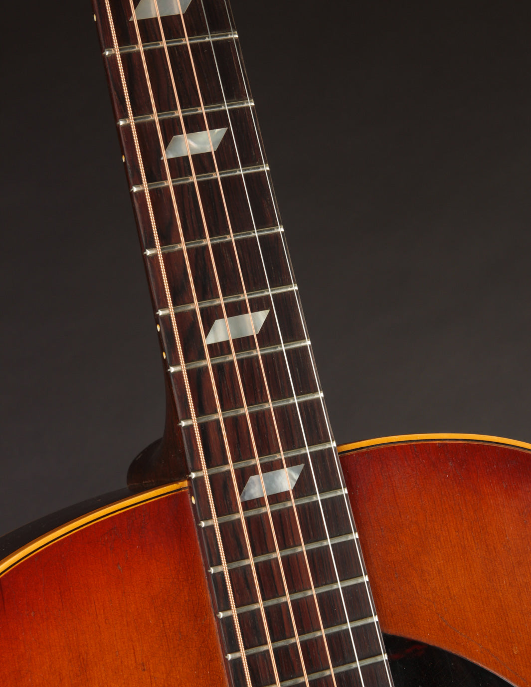 This particular Texan has weathered the years very well. And although it's been played, its structure is still in great condition. The original adjustable saddles have been replaced with a modern, bone counterpart (many of us would consider this swap an improvement). Aside from that modification, it remains as it was made in 1965 (battle scars from lots of gigs notwithstanding). No cracks, and overall very good vintage condition. We think this is a particularly good sounding Texan; and if you're looking for a vintage dreadnought it's well worth consideration. Priced with non-original hard case.