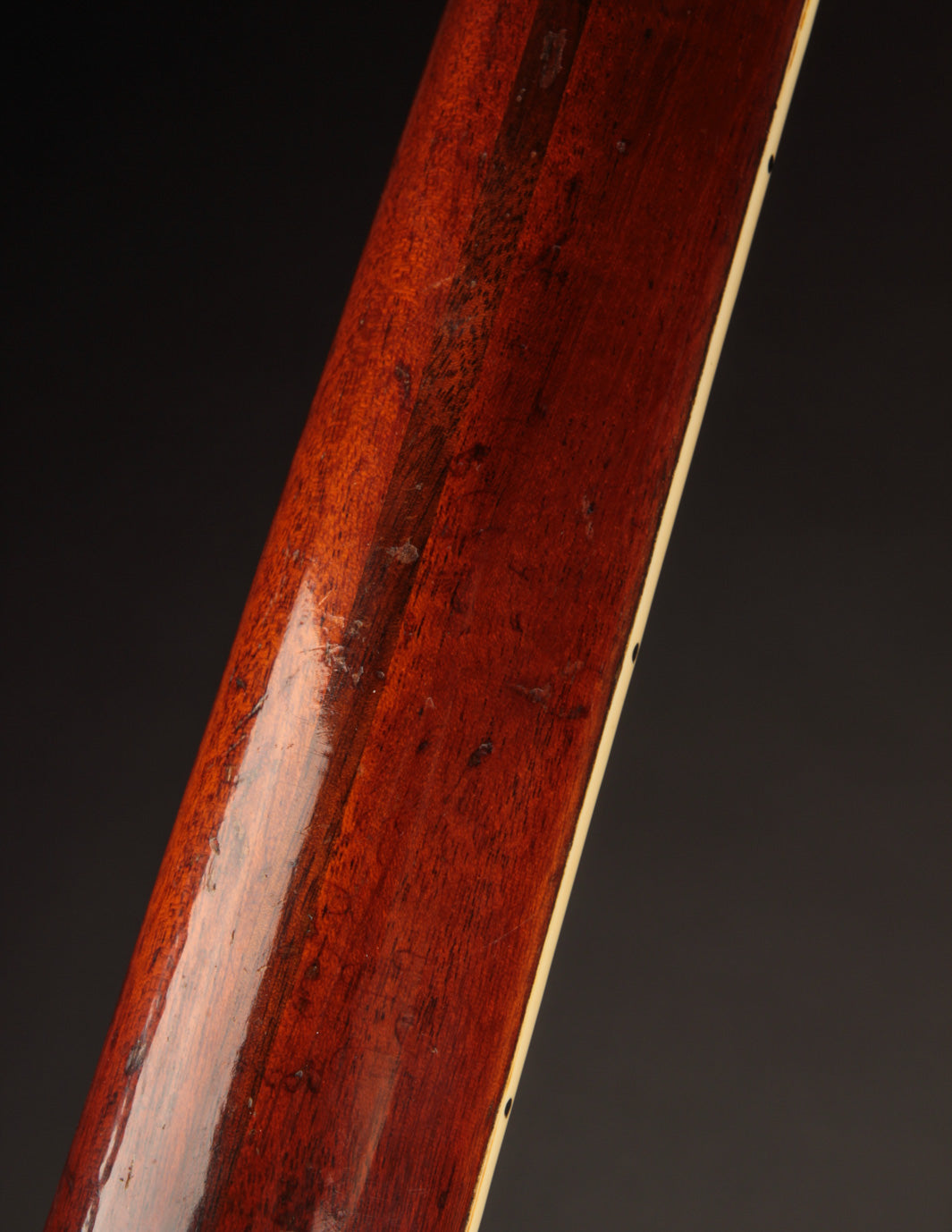 The Sunburst top finish has aged beautifully, with a nice ambered center that blends into the darker brown edges with great vintage luster. The binding has yellowed throughout, and with only a few small repairs to show, it's held onto the guitar quite well.