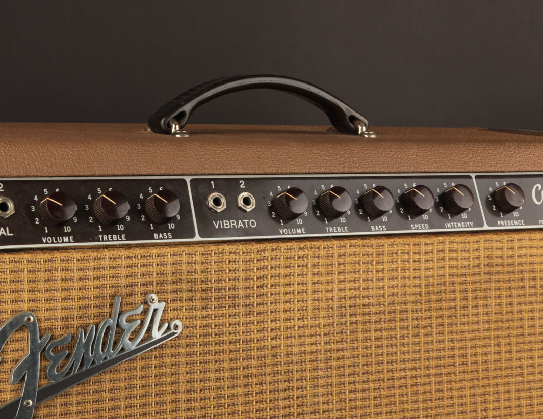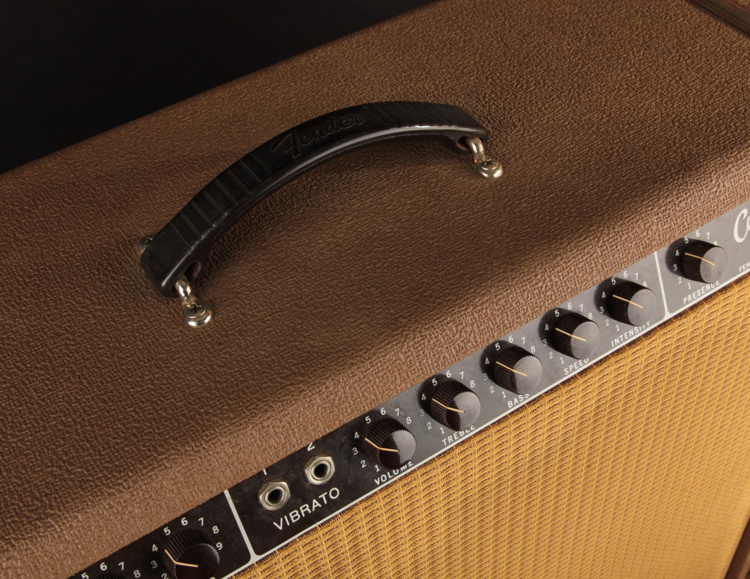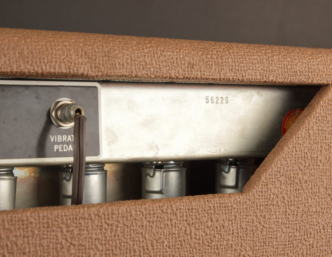 A small but not insignificant detail? The original brown single-button footswitch is not only included, but works as well! It's responsible for remote actuation of the famed harmonic vibrato, a shining star of early 60s Fender amp circuitry and tone.