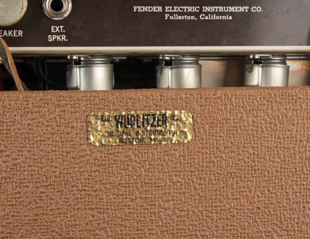 This particular amp found its way to us via the son of its original owner, who purchased the amp new from EU Wurlitzer in Boston, MA. It appears that it had been both lightly used and exceptionally well-preserved, showing very little in the way of true handling wear. You can thank the original Victoria slipcover to some degree, keeping dust and dirt from impregnating the tolex and grill cloth.