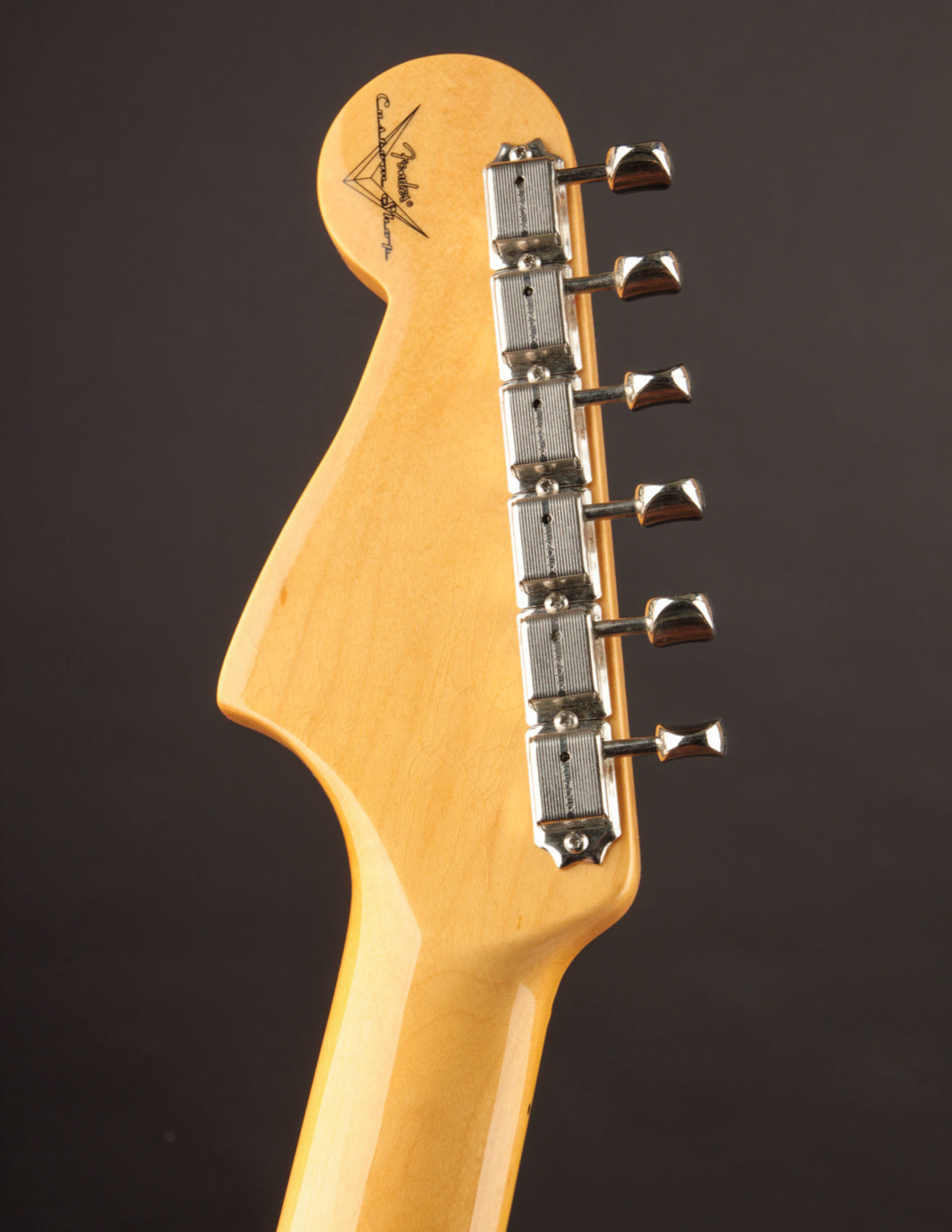 Loaded with a pair of Custom Shop hand-wound Vintage Jazzmaster pickups and vintage wiring, the ’67 Jazzmaster delivers perfect crystalline, well-balanced tone with delicate highs, sweet mids and warm lows. The vintage-style “floating” tremolo and RSD Jazzmaster bridge provides players with all the expressive control of vintage offsets, but with increased tuning stability and robust tone.
