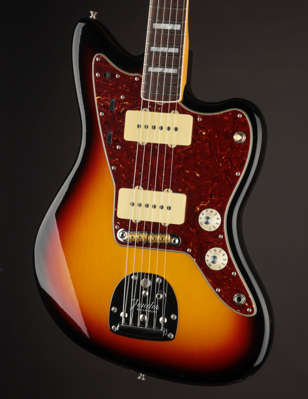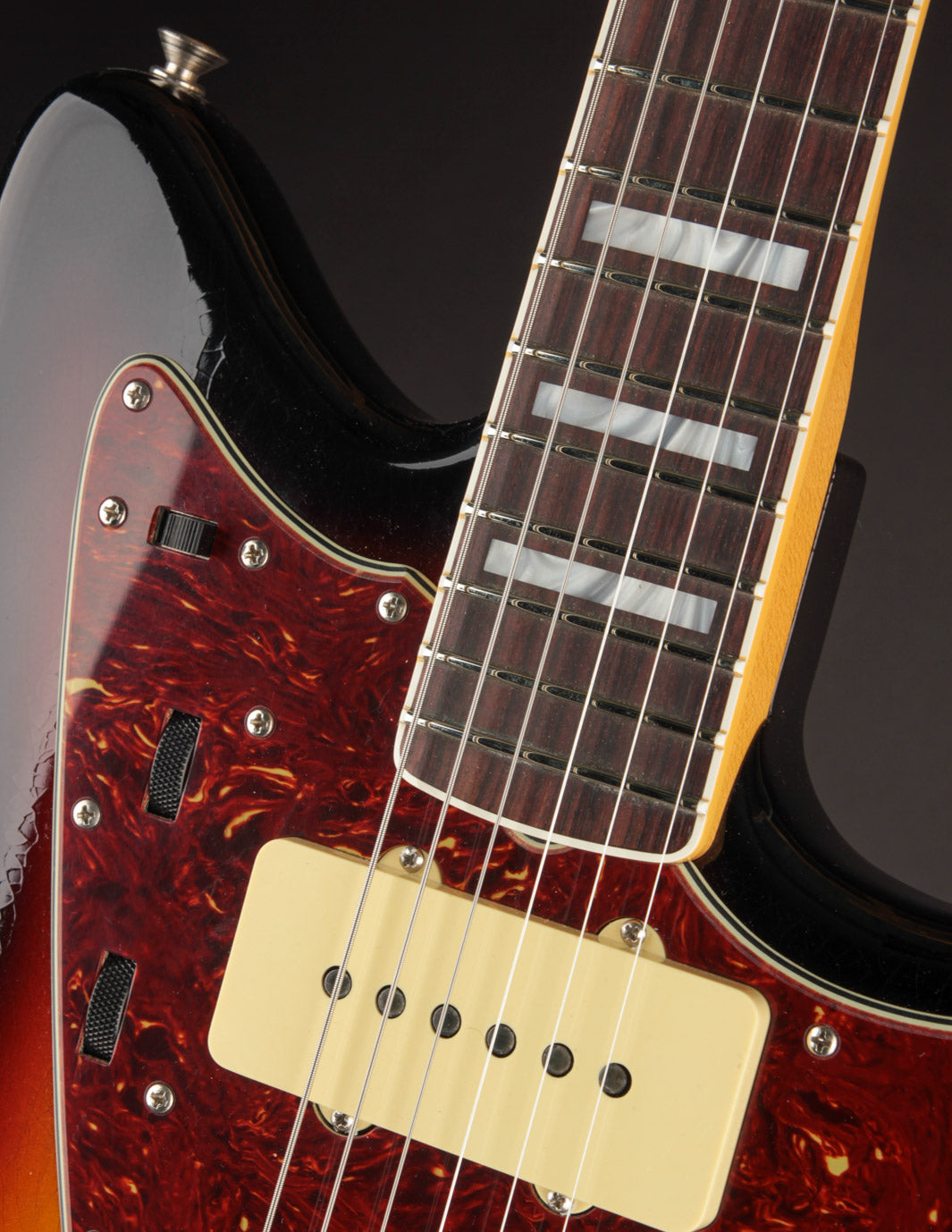 Featuring an artfully aged DLX Closet Classic lacquer in Three-Color Sunburst over a two-piece select alder body, with a rift sawn maple neck and round-laminated rosewood fingerboard and poly pearloid block inlays, bring this iconic offset to life.