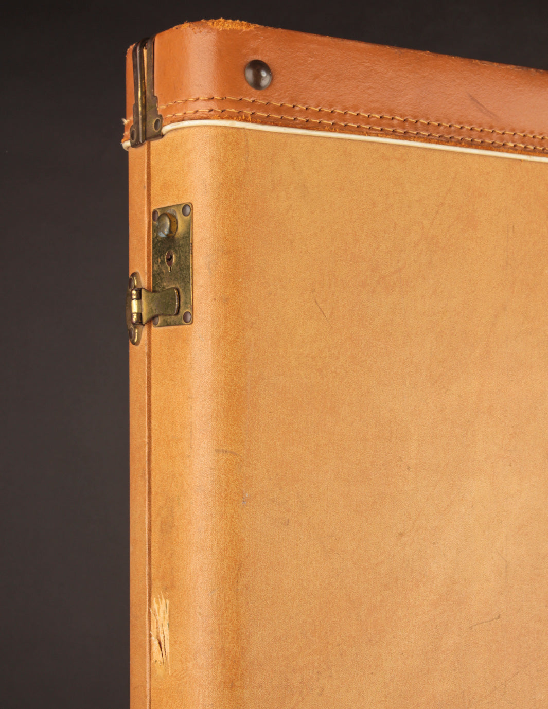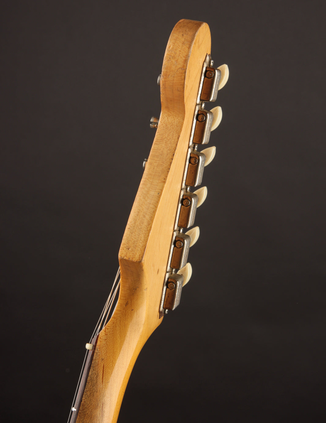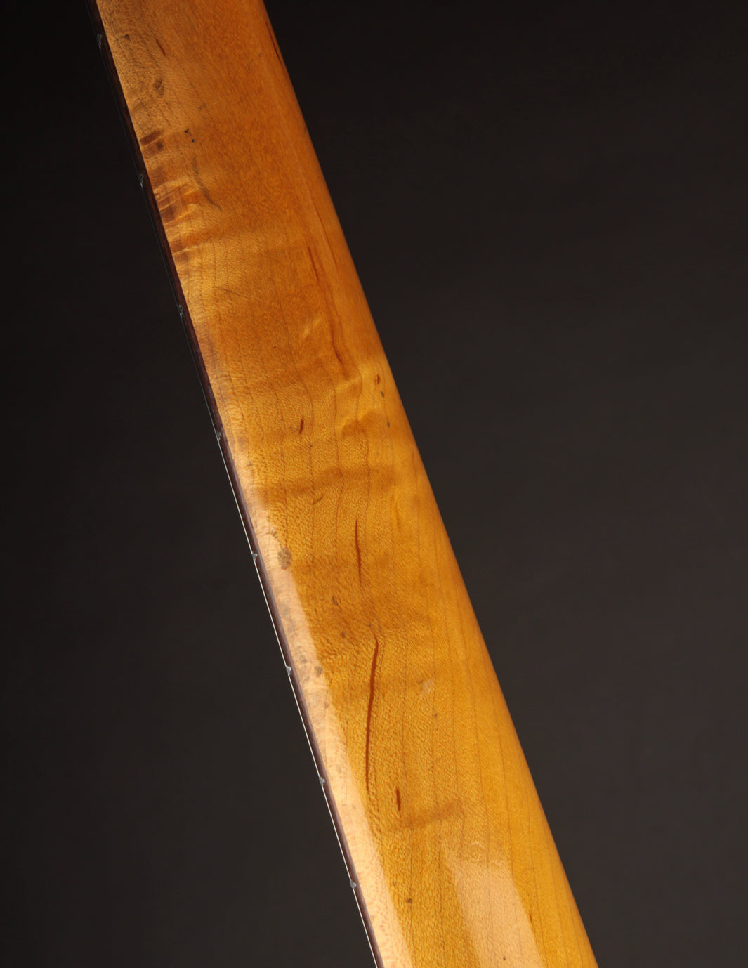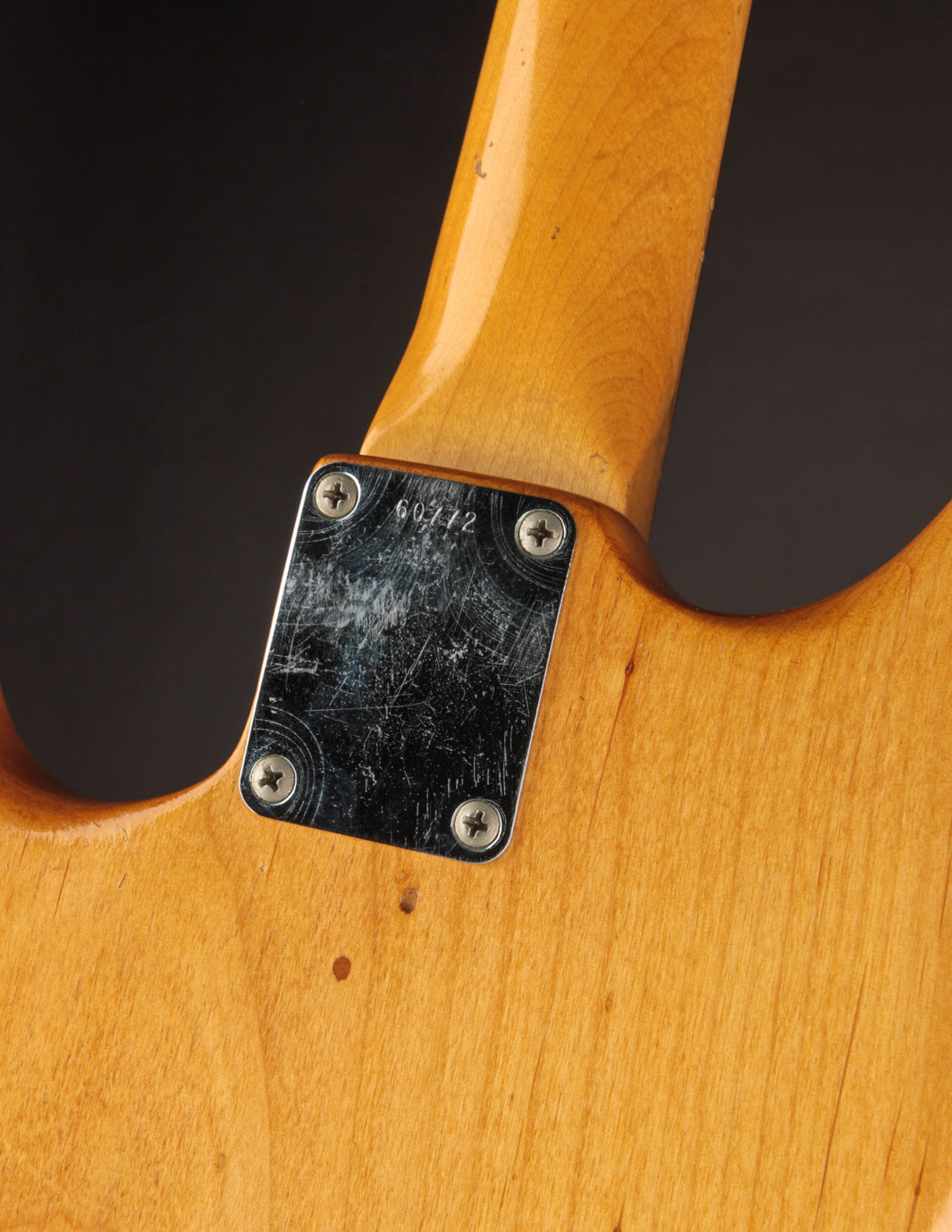 We acquired this guitar from its original owner, who'd received the guitar as a young man in its original Desert Sand finish. He later took to removing the Desert Sand and finishing it over in clear lacquer as you see it now, but the original finish remains in some of the cavities.