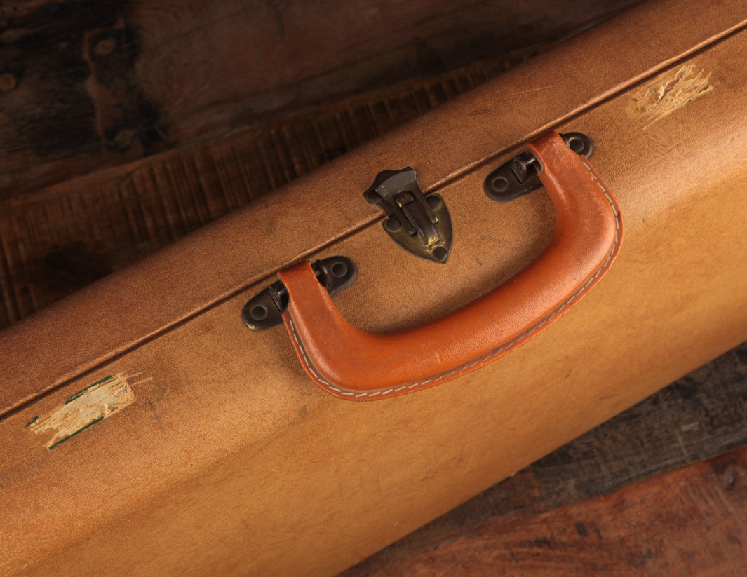 It comes in its original brown hardshell case and includes the bridge cover (as pictured).