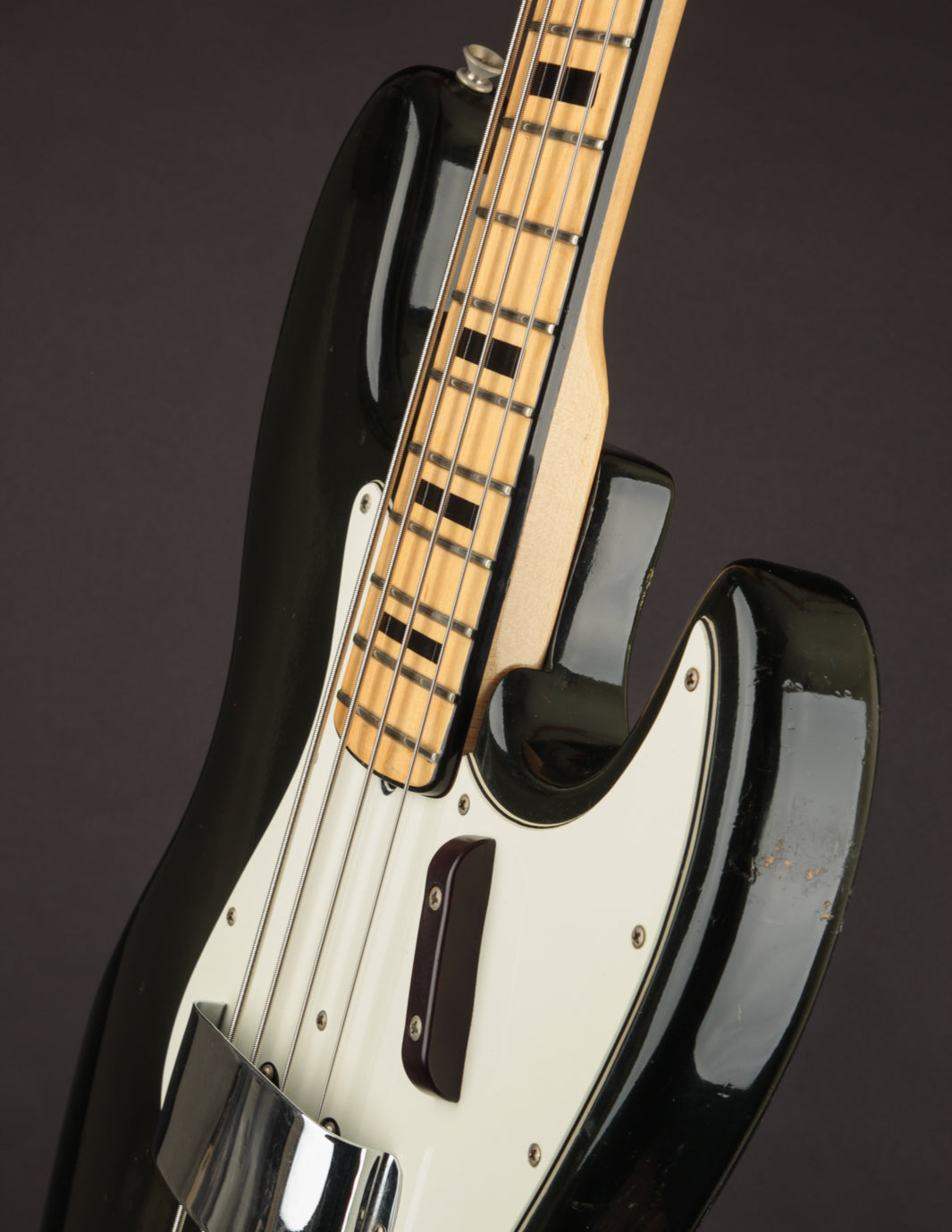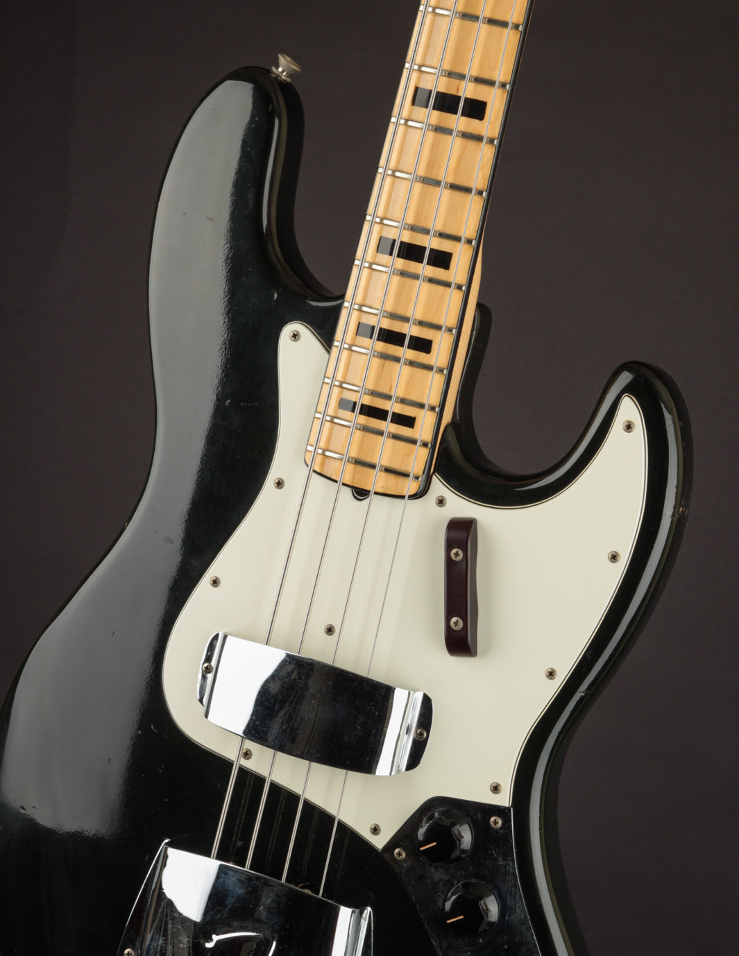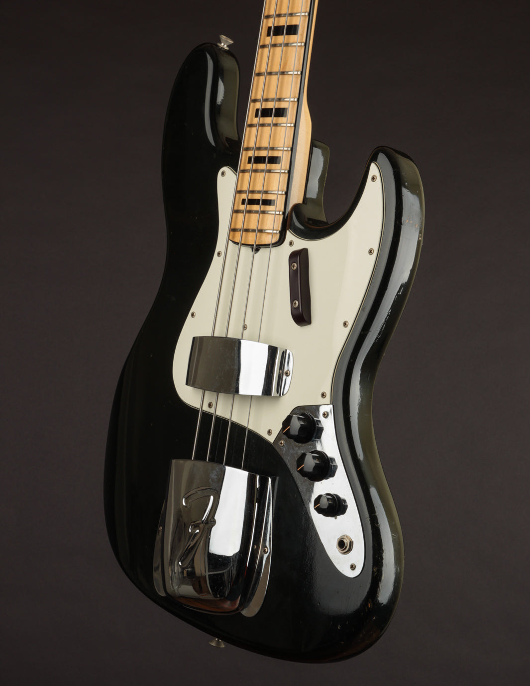 This 1973 Fender Jazz Bass in its original custom color Black finish recently came into the shop in the hands of its original owner, who'd custom-ordered it in 1972. The owner played professionally in local bands for years, and clearly took favor in this bass. It's got the right amount of honest wear that lets you know its 50 years old, but with a pride of ownership that helped maintain an impressive level of originality to this day.