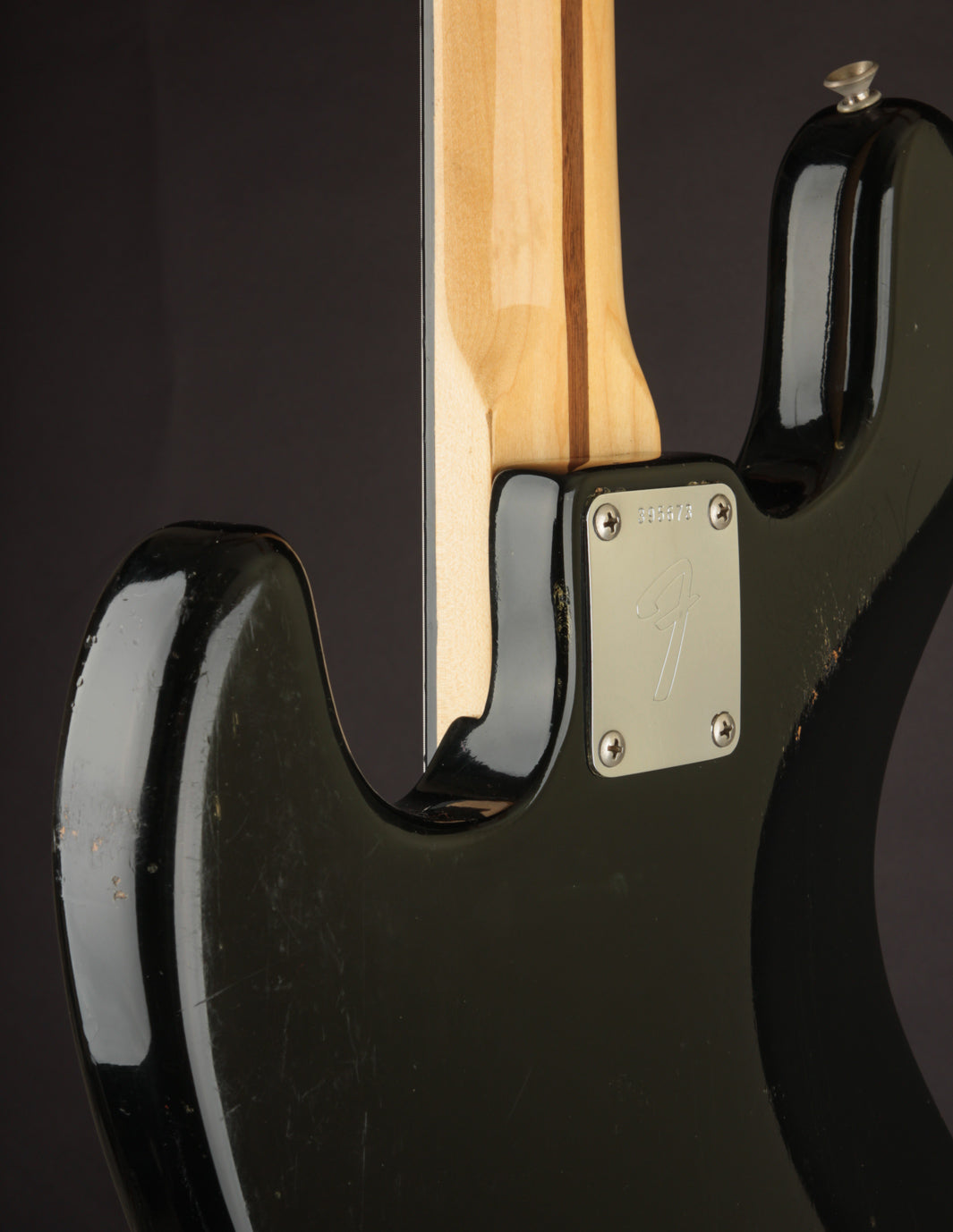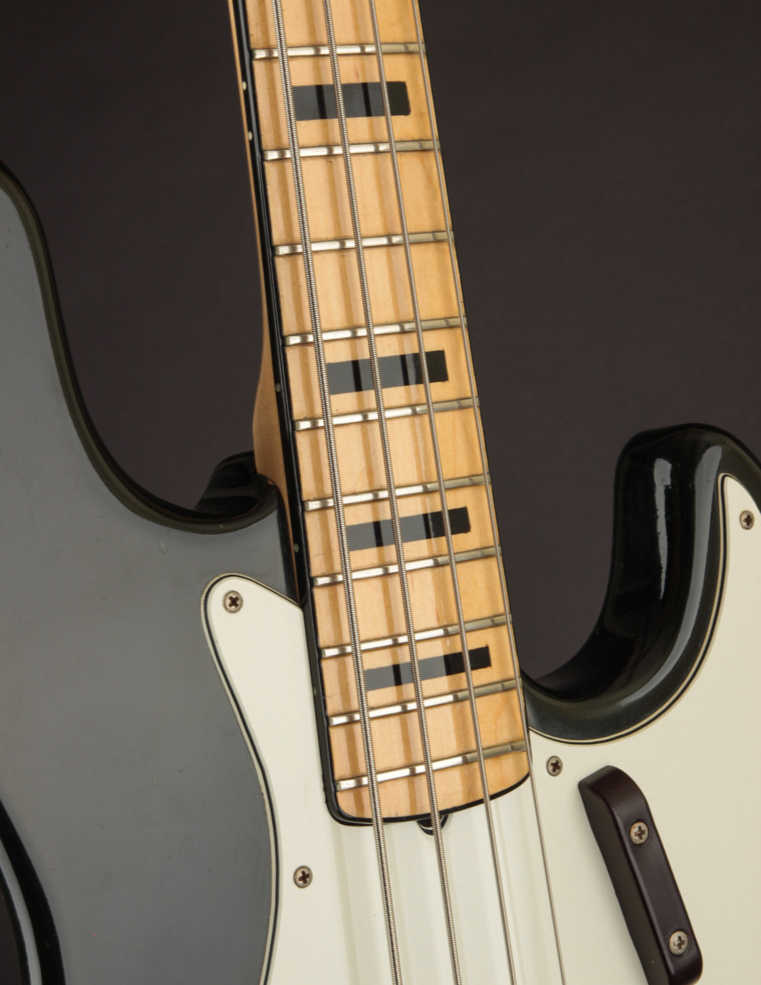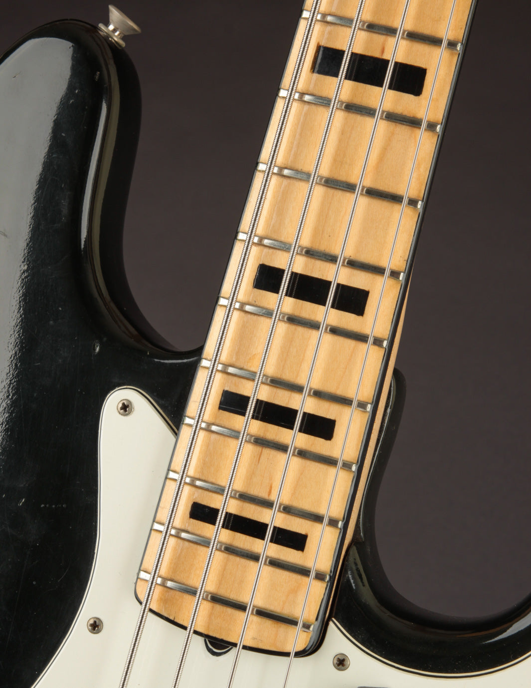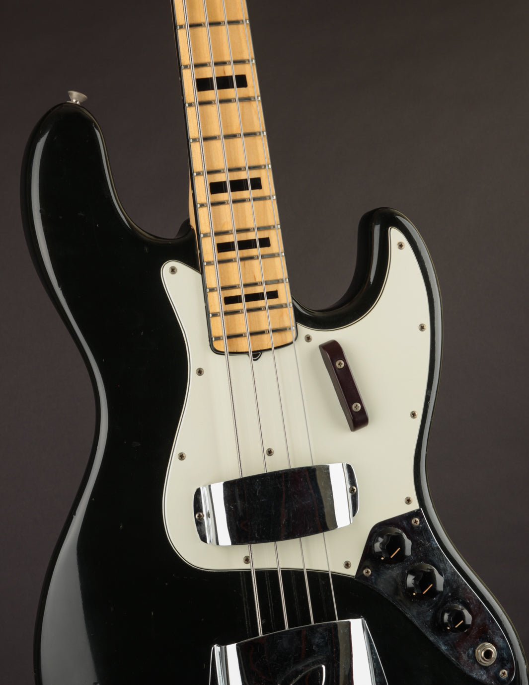 This 1973 Fender Jazz Bass in its original custom color Black finish recently came into the shop in the hands of its original owner, who'd custom-ordered it in 1972. The owner played professionally in local bands for years, and clearly took favor in this bass. It's got the right amount of honest wear that lets you know its 50 years old, but with a pride of ownership that helped maintain an impressive level of originality to this day.