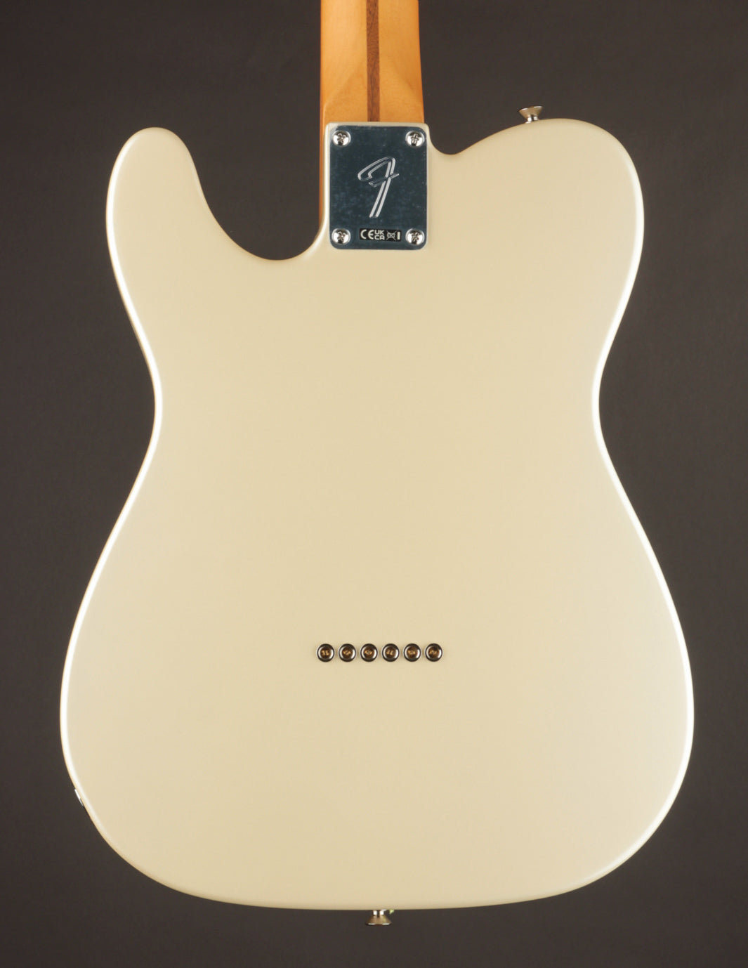 This Olympic Pearl Tele features a classic alder body and a 1-piece maple neck - a time-tested tonewood combo. Loaded with Player II Noiseless pickups, it delivers everything you'd expect from a great Tele: