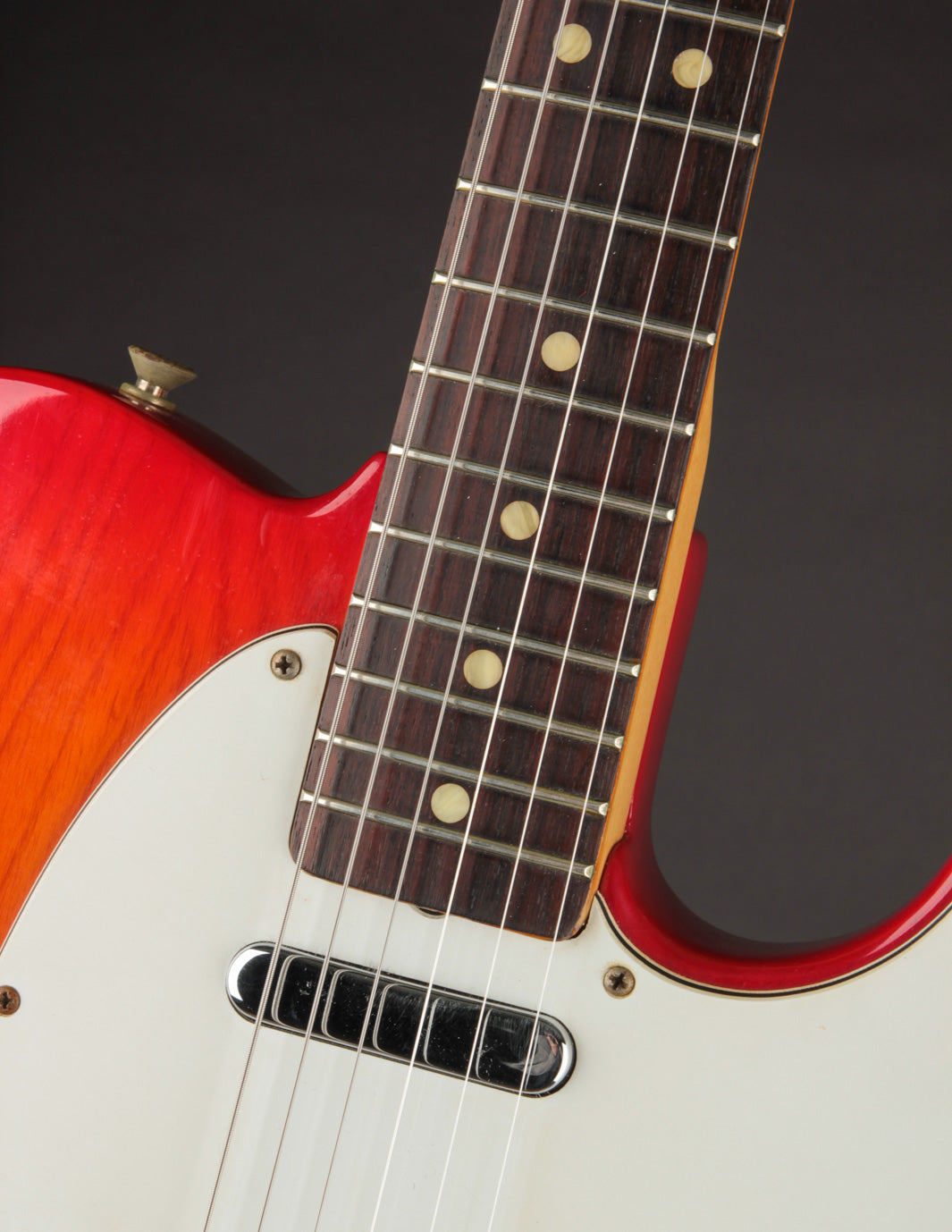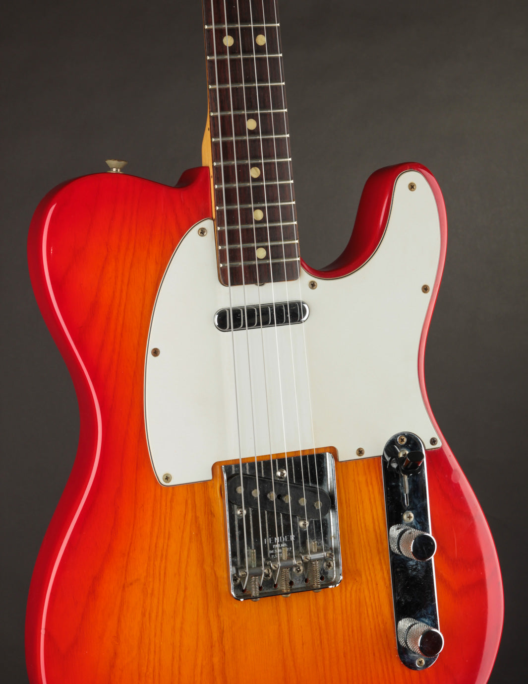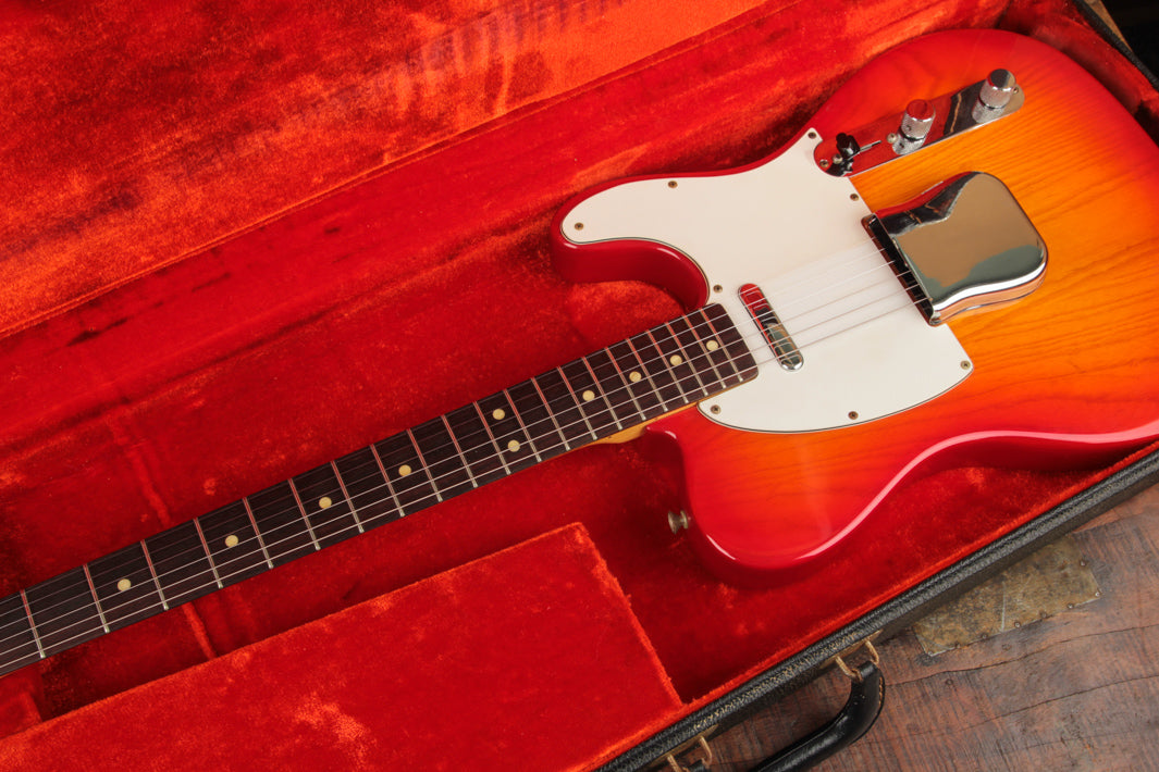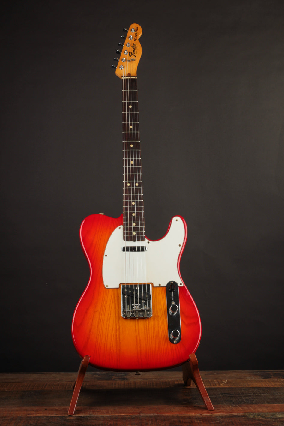 This Telecaster is an excellent condition example of what became the end of the original Fullerton run for the iconic model. With the exception of the lesser common Cherry Sunburst finish, this Ash-bodied Telecaster carries much of the CBS-Era spec with it, like the veneer Rosewood fingerboard with pearl dots, large 70s decal, F Stamp tuners, and 3-ply pickguard along with a polyurethane finish.