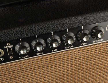 When it comes to 'Blackface' Fender amps, the Vibrolux Reverb might be the most versatile of them all. With its twin 10" speaker configuration and pushing 40 watts via a pair of 6L6s, it delivers the right amount of volume for a stage, with the low volume sweetness often found in lower powered amps like the Deluxe Reverb and Princeton Reverb.
