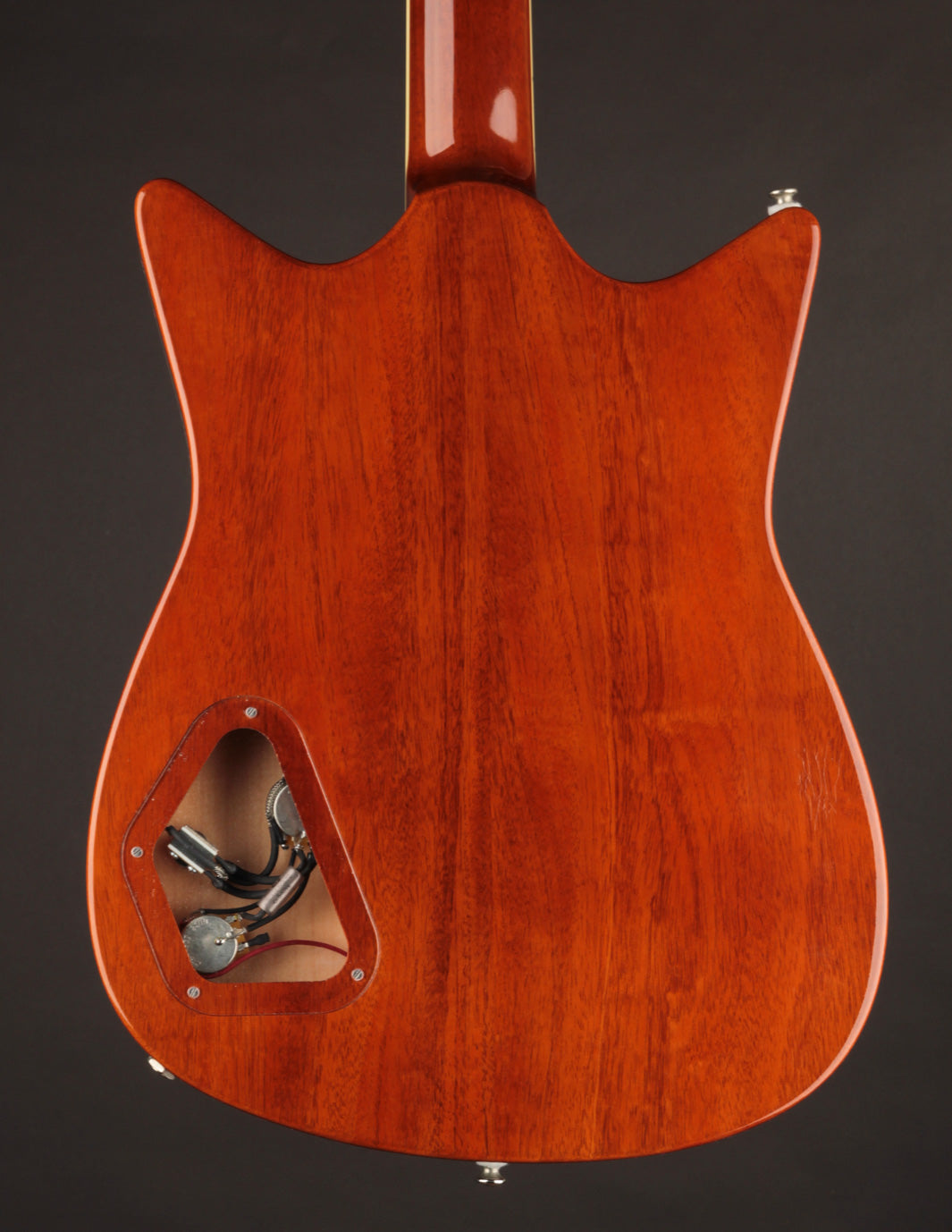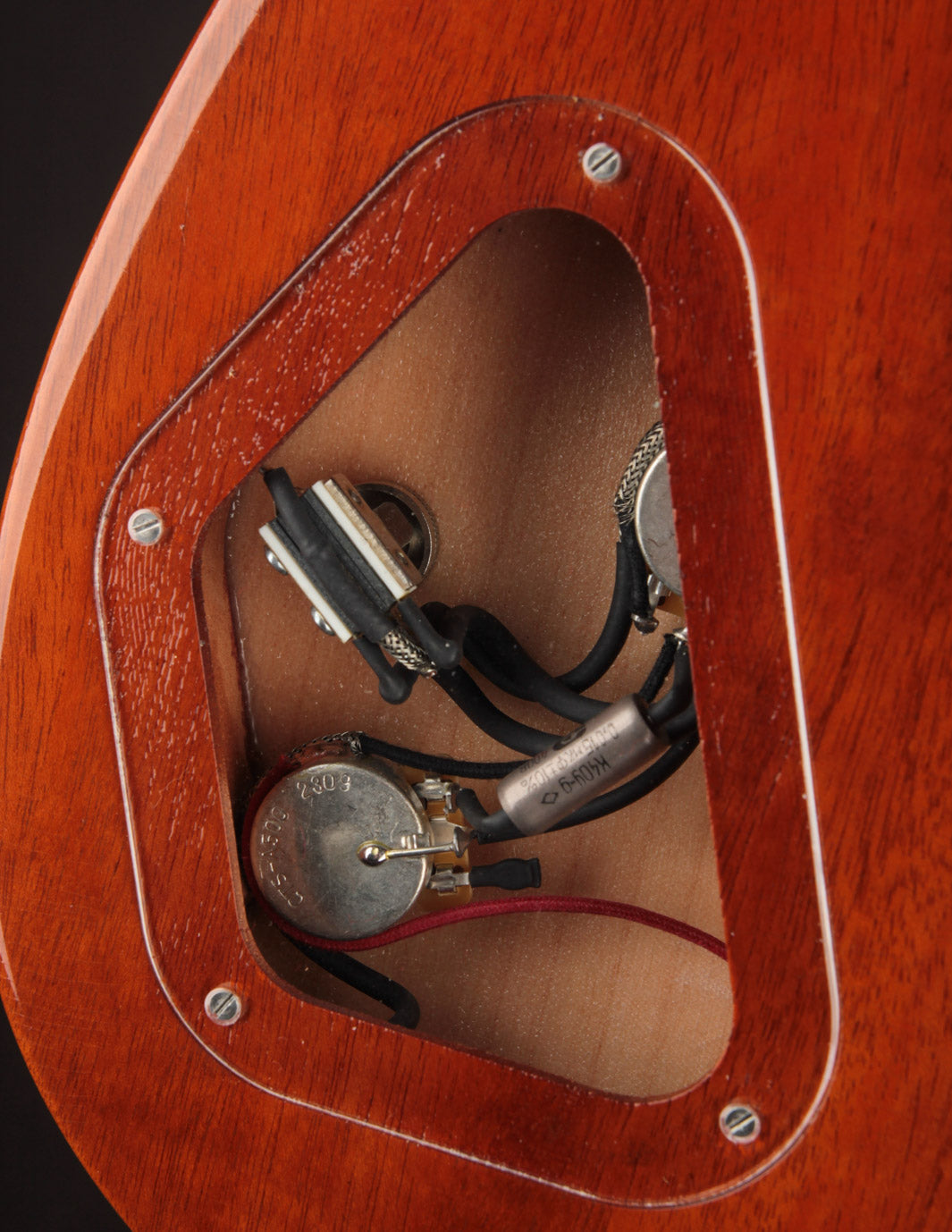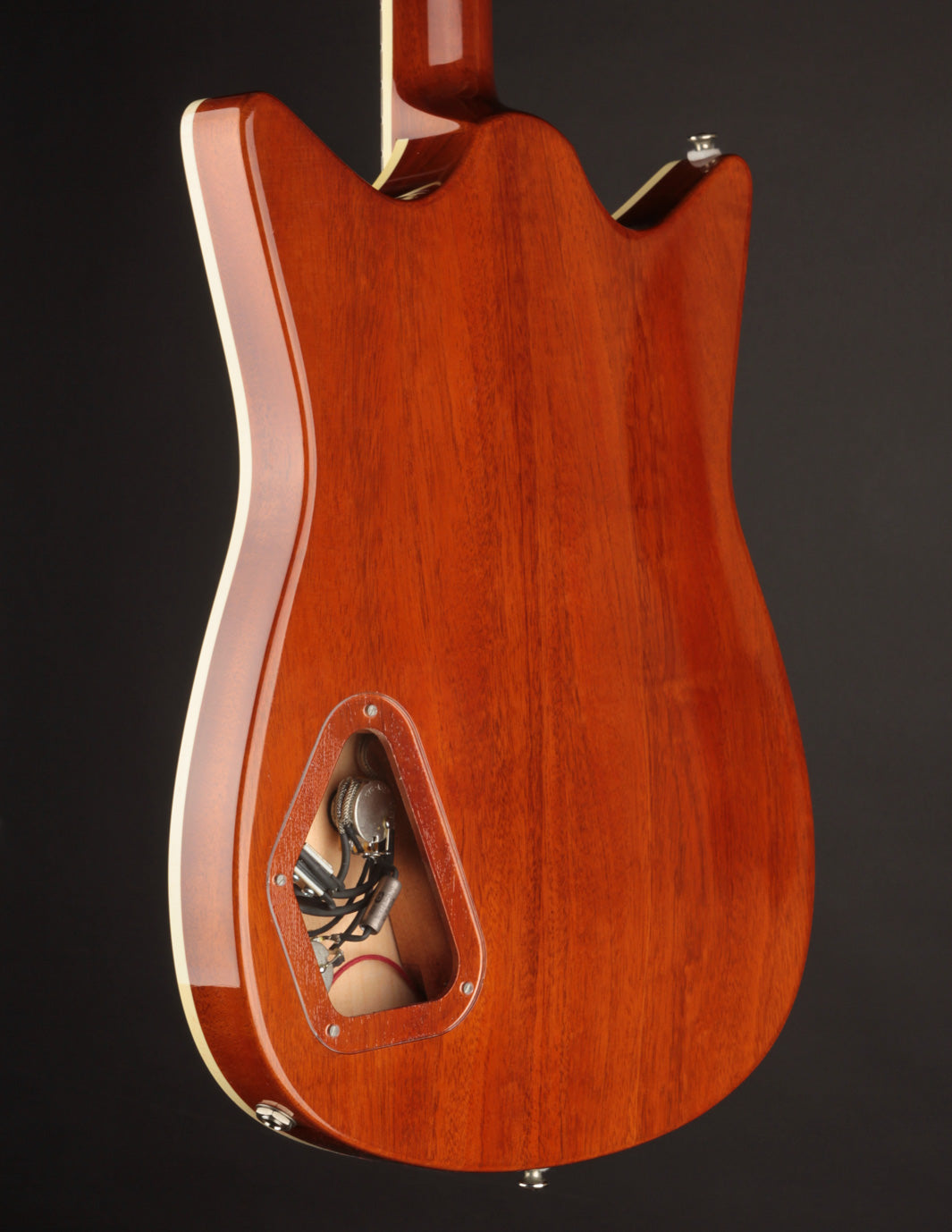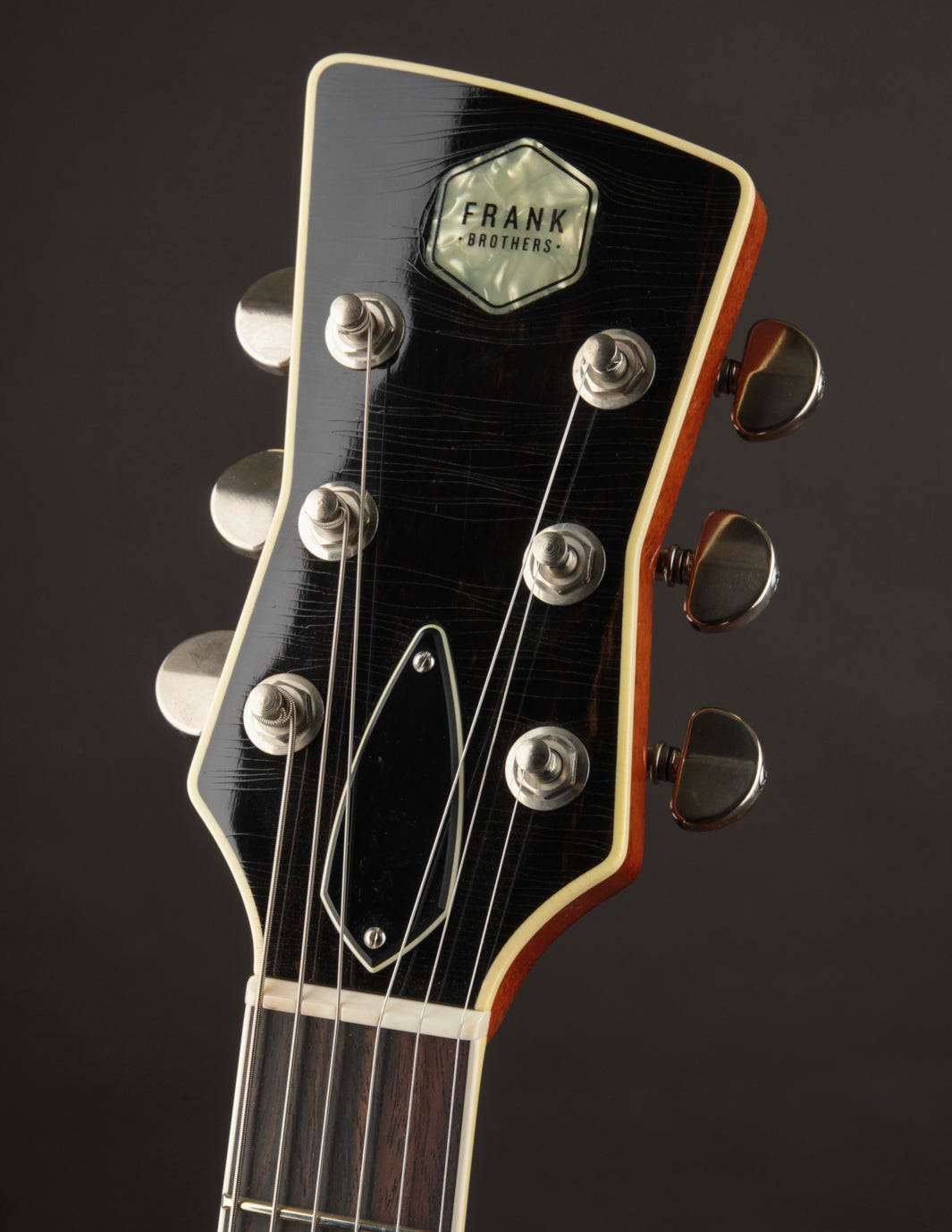 The Frank Brothers Arcade Thinline blends their signature silhouette with a large cavity on the bass side, reducing weight while enhancing acoustic projection, clarity, and responsiveness.