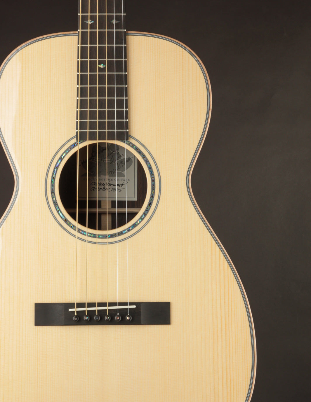 This Froggy Bottom P-12 Deluxe will easily scratch the "big sound in a small guitar" itch for anyone interested in adding a more diminutive guitar to their collection. No tonal compromise to be found here, even when flatpicked. This is a full-sounding, powerful guitar that projects easily and responds to a variety of attacks with ease. Tastefully appointed with Quilted Maple bindings and a rectangular ebony bridge, this guitar is a current staff favorite -- it'll make you forget all about the notion of sacrificing sound for playability's sake. With TKL's American Vintage Series hard case.