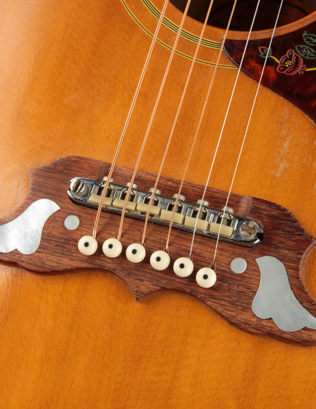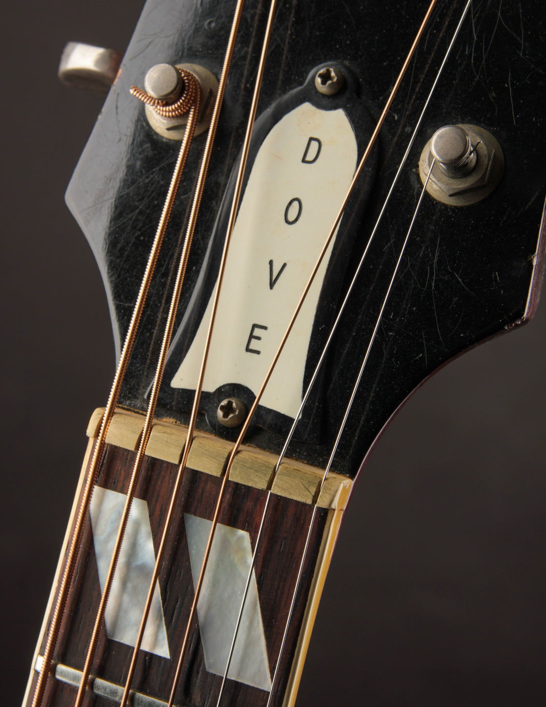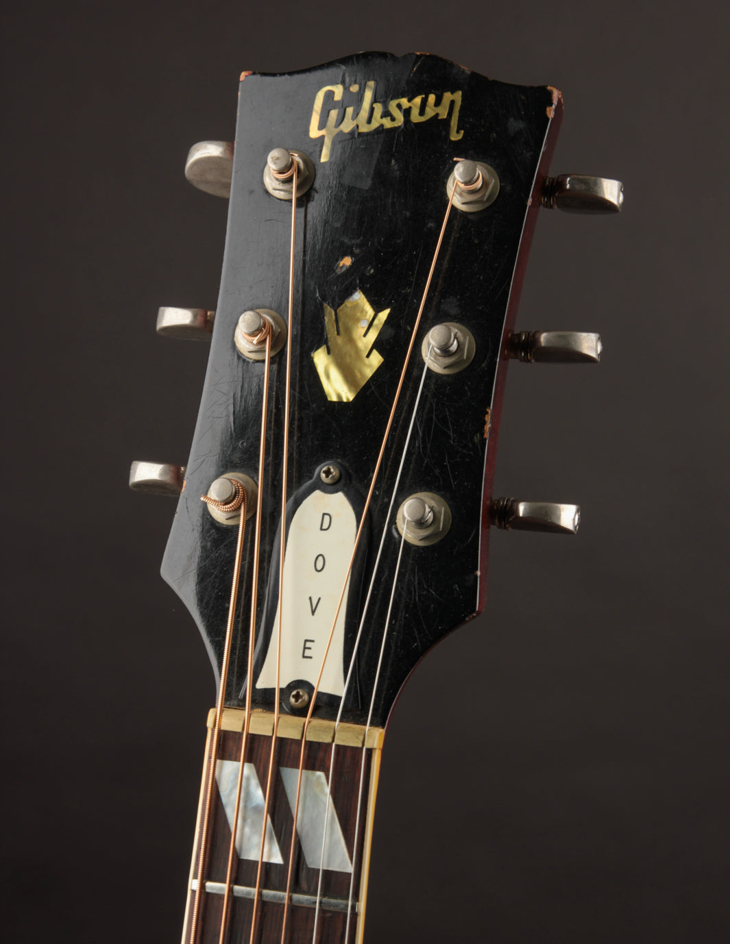 The Dove model entered Gibson's famed acoustic guitar lineup in 1962, following the Hummingbird's debut in 1960. It brought forth a second "square shoulder" dreadnought into the fold, with an equally sophisticated and ornate style that made them incredibly popular guitars throughout the 1960s.