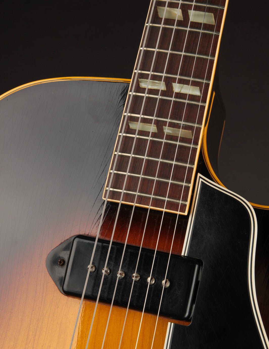 It's definitely one of the most well-preserved examples you're likely to come by, and yet plays and sounds like a top performer that has done anything but hang out in its case. A fantastic playing mid 50s carve neck with the original frets plays wonderfully, and the original dogear P90 pickup has a strong yet sweet tonality perfect for jazz and blues.