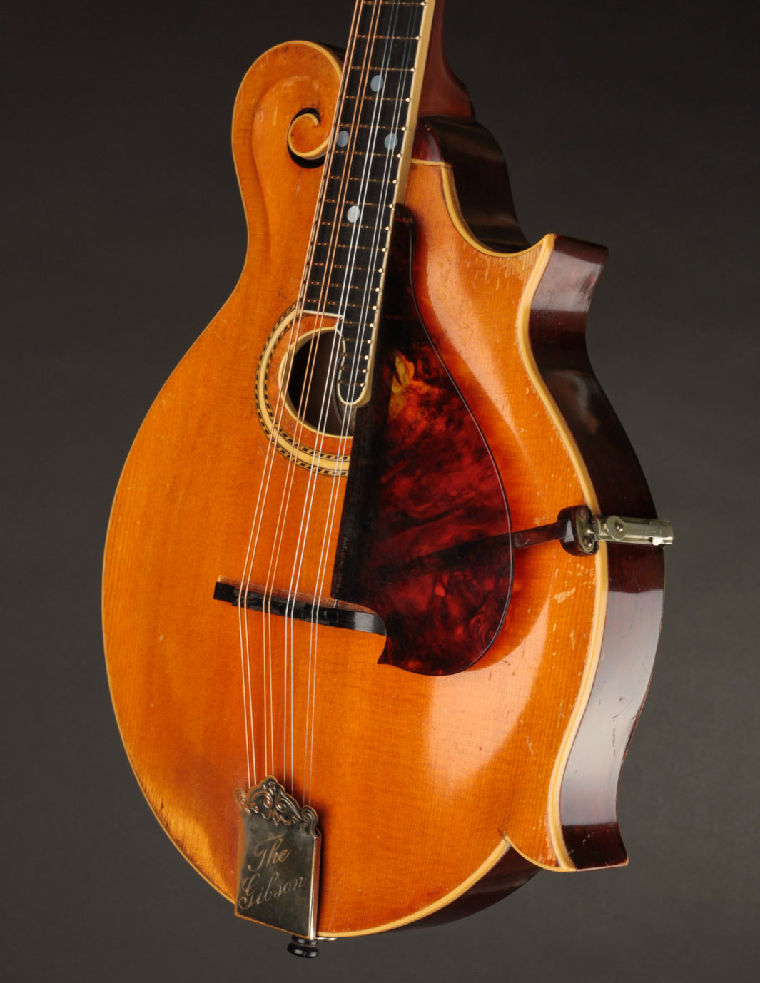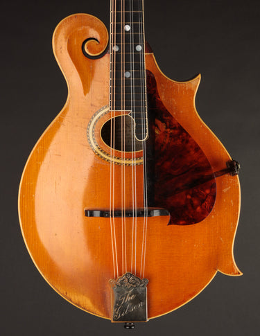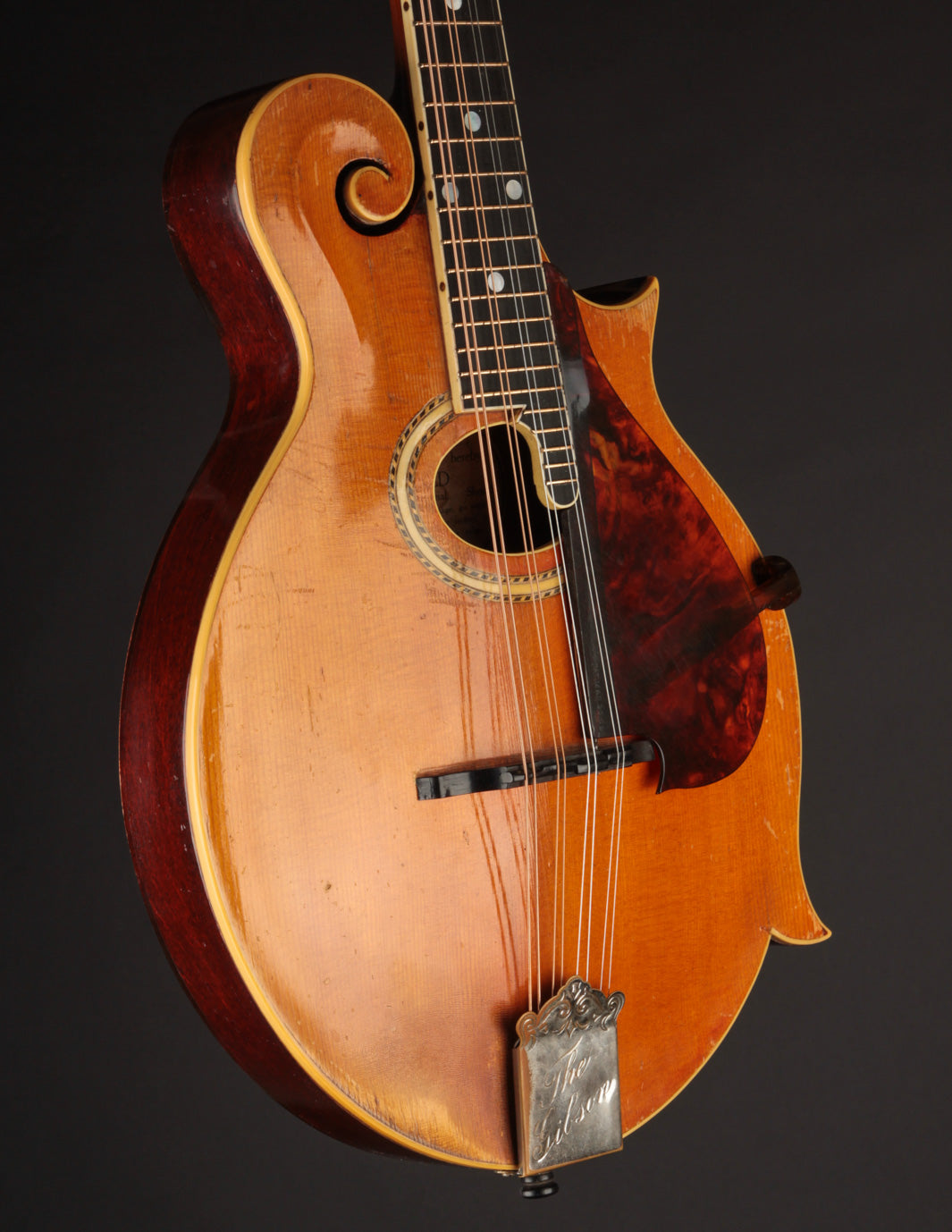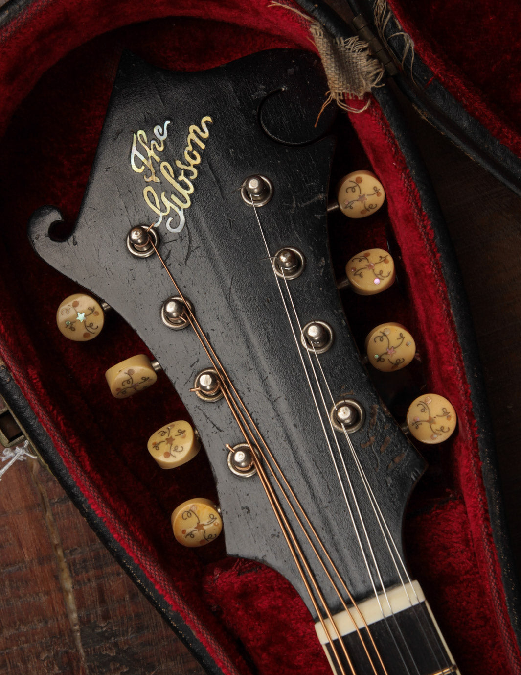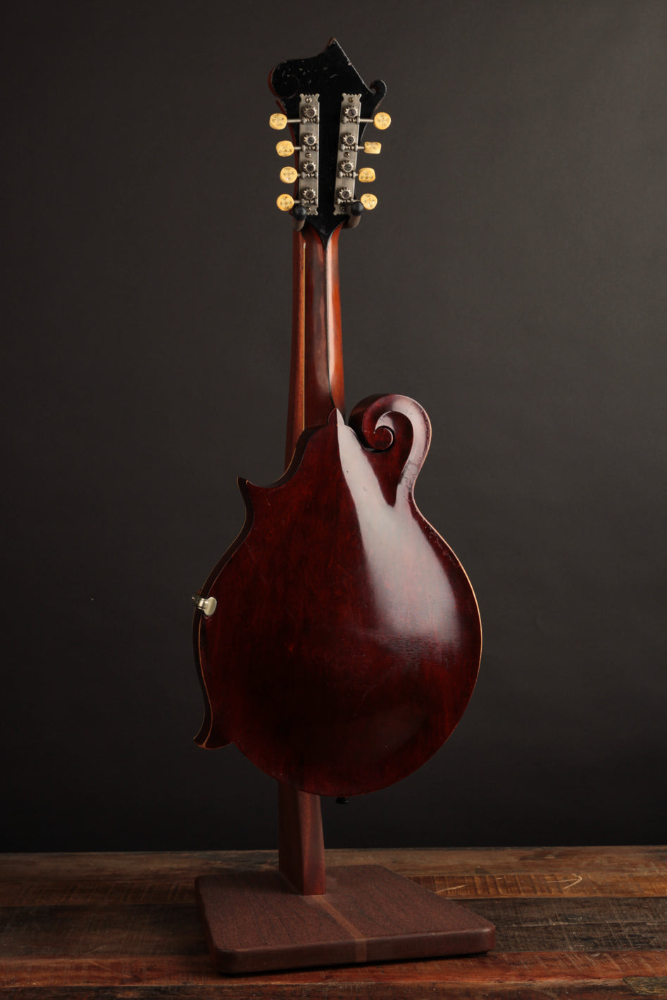 This great sounding, vintage F-2 just got a new lease on life, thanks to a pro, EVO-wire refret and setup. Strange as it may seem, the refret seems to have enhanced the lively voice of the mandolin. Playability is, of course, outstanding. We are suckers for the older, bulb-post Handel engraved tuners, still functioning well at well over 100 years old. Plenty of typical playwear, and stable surface cracks (below scroll and at lower-bount point), but otherwise in very good overall condition.