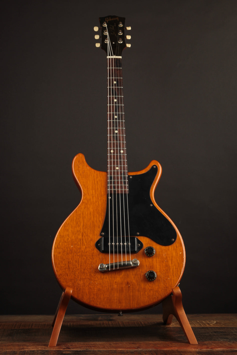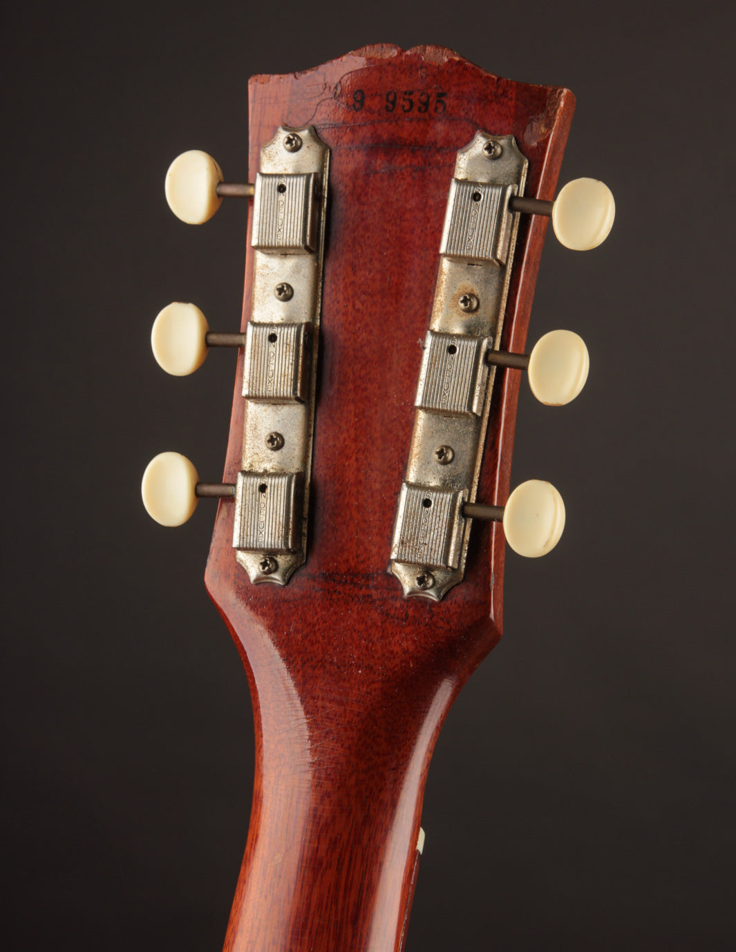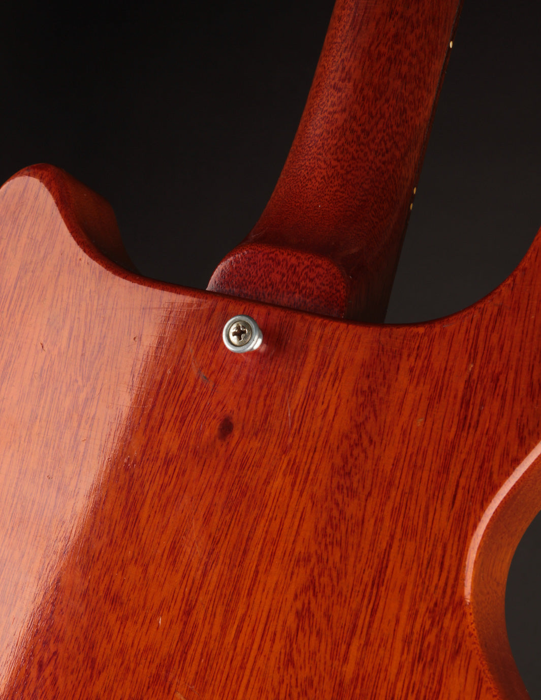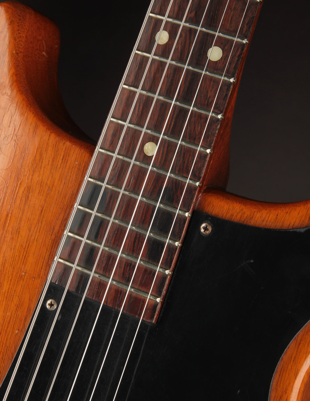 No surprise here, but the original P90 in this guitar absolutely rips! It's got great output and combination of chime and grunt that have made many a Junior-style guitar a go-to option for rock tones, slide work, and beyond. The original small fretwire remains in great shape and feels great in hand, and the narrow nut combined with the full C profile makes for a super fun playing experience. The volume pot was replaced prior to our acquisition, and it received a new nut, but remains otherwise original.