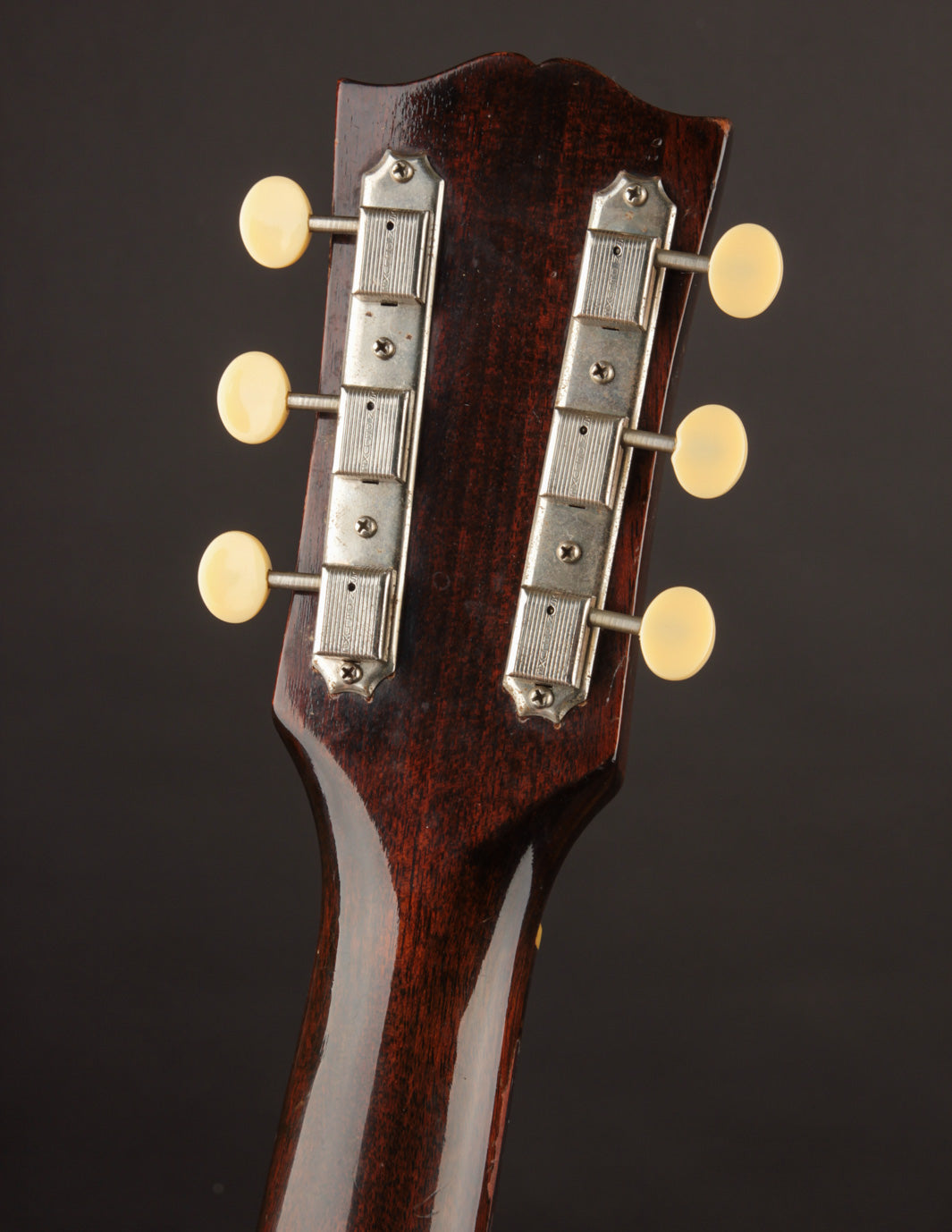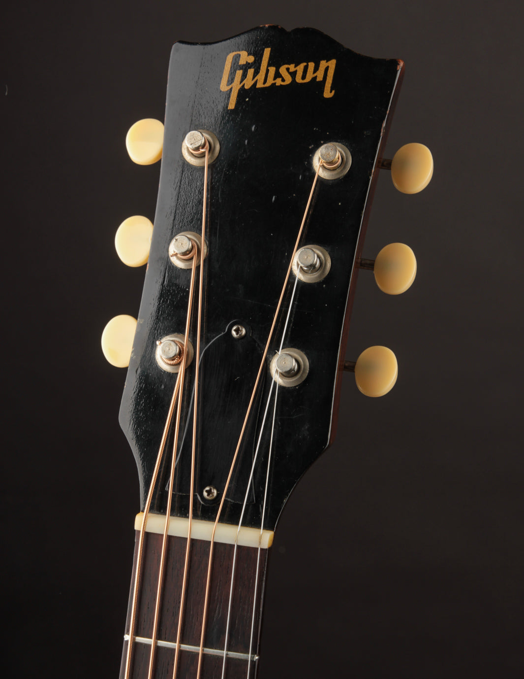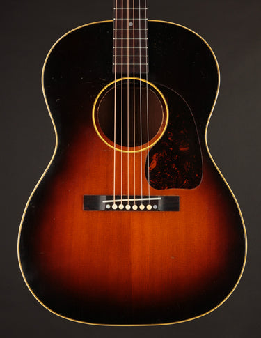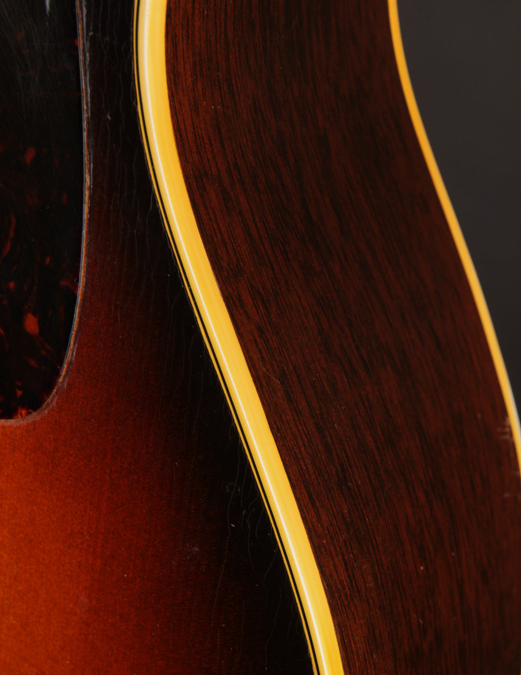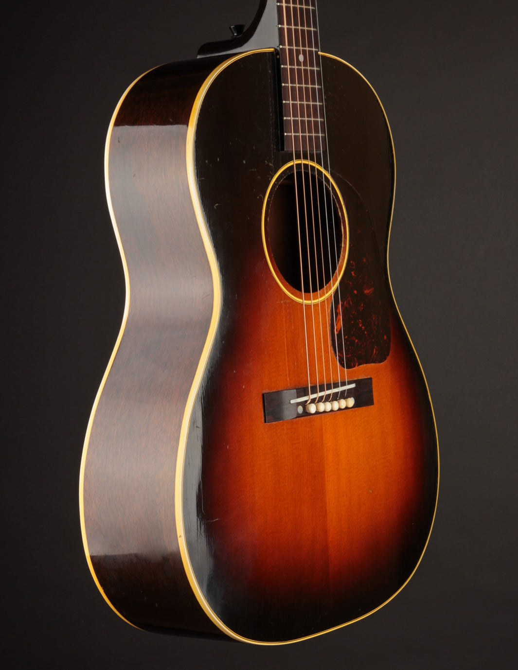 Condition: this guitar presents beautifully, with clean, mostly original parts, and a wonderfully unfaded sunburst which retains its amber-red hues. The original lacquer finish displays the expected checking, and exhibits the expected dings and scratches associated with regular use. Small areas of the finish on the bass side of the fingerboard have chipped away (see photos); and the back's center seam shows absorption of the finish consistent with age. A new saddle, new bridge pins, and new tuner buttons have been installed. Action measures a spot-on 3/32" (bass side) and 2/32" (treble side) under tension of light-gauge strings; and the saddle measures just a hair over 3/32" at its center. Priced with non-original hard case. Interested parties are welcome to contact us for an in-hand description! Shipping calculated at checkout.