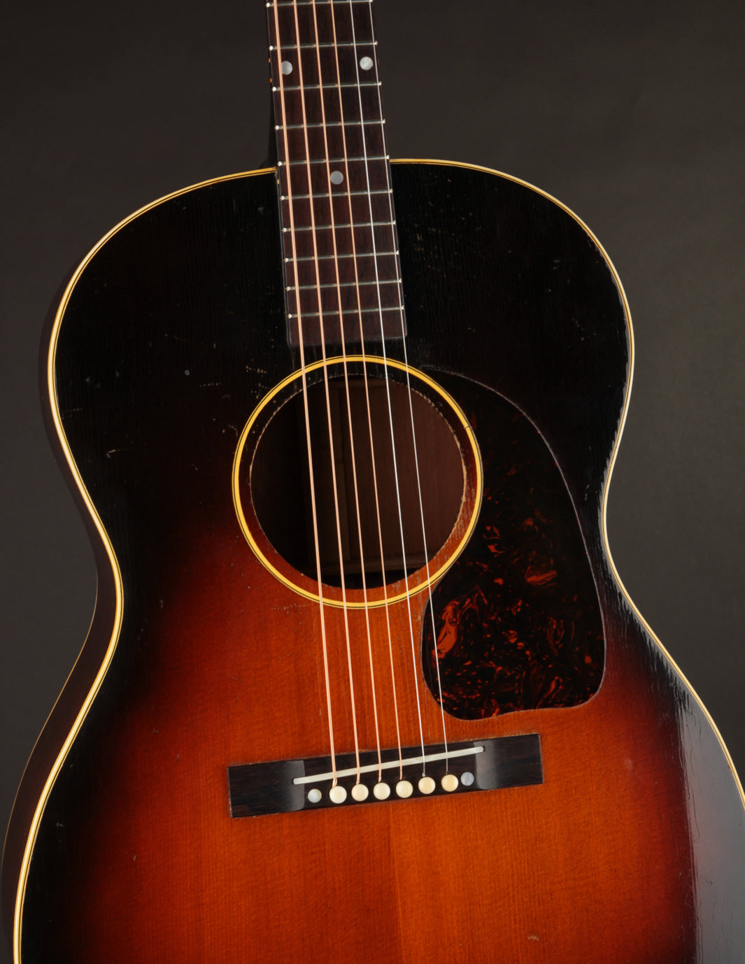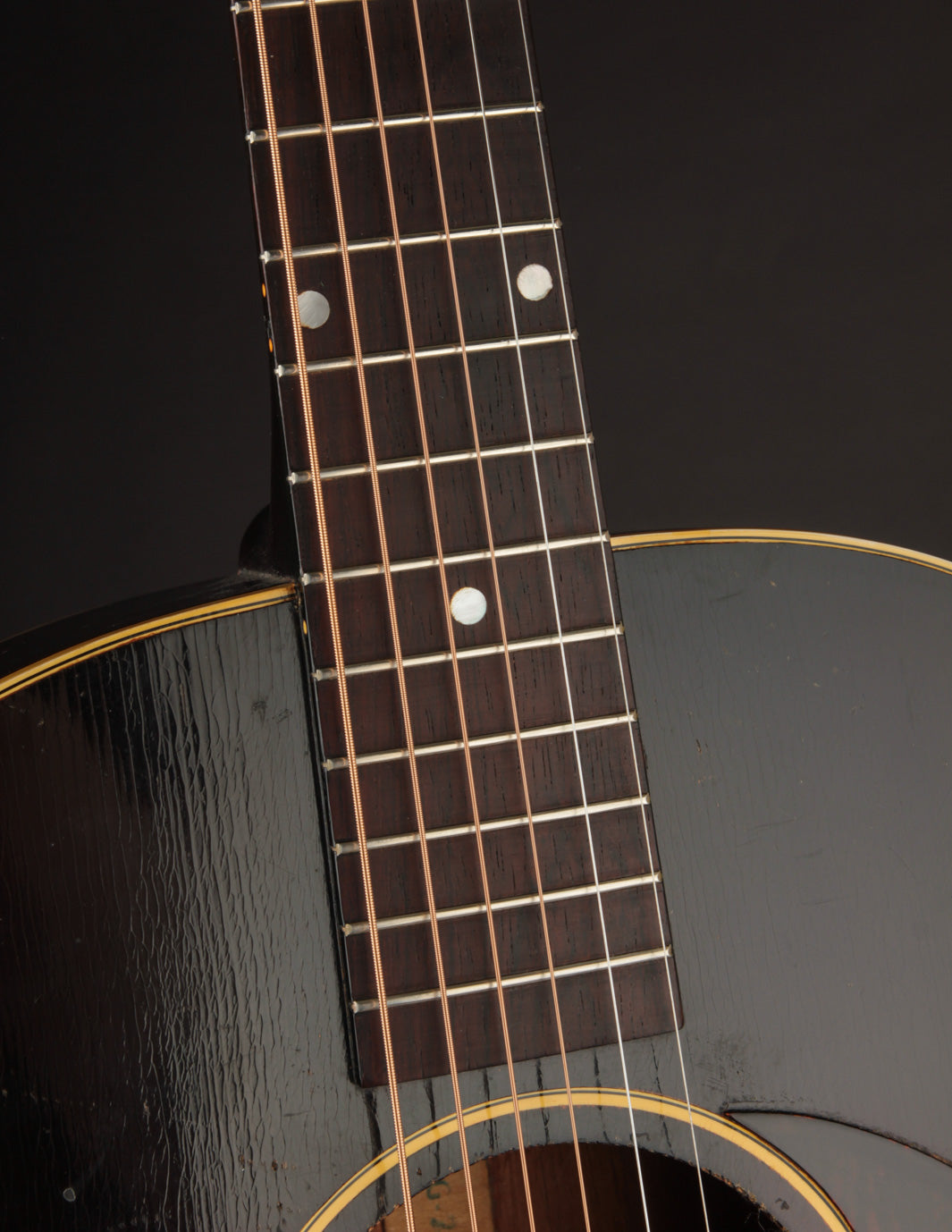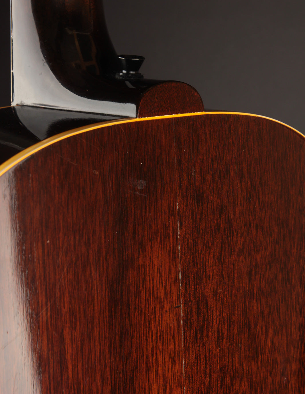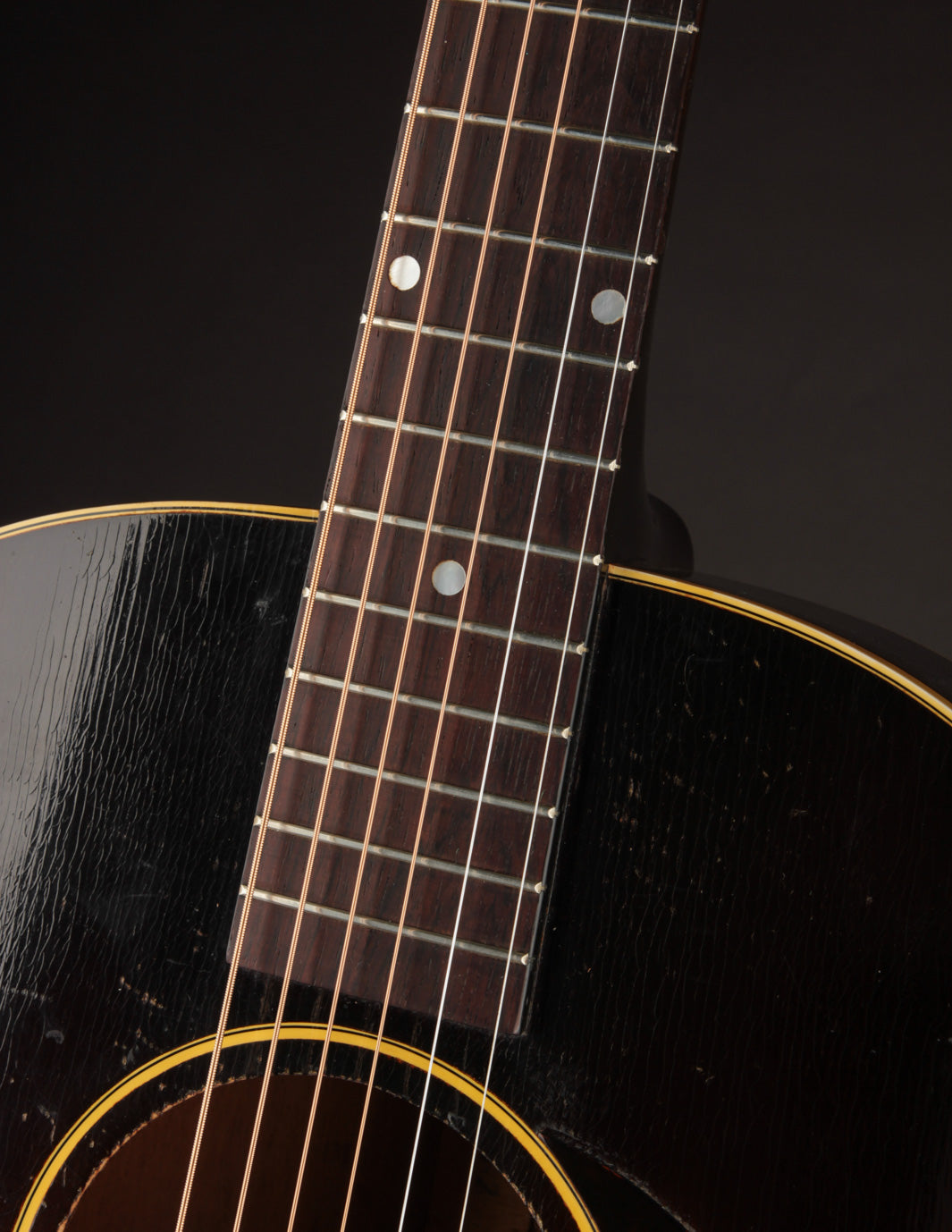 As post-Banner LG2 variants go, this guitar is an exceptional one. The neck carve is on the fatter side; and while it's nowhere near the baseball bats seen on LG2s six or seven years older, we appreciate its fullness as it relates to playability and tone. This LG2 is very open-sounding, with a surprising amount of rumble in the low midrange for a late-40's guitar. The high end is round and singing, making this an excellent fingerpicking guitar -- though to be honest, this guitar's voice is so warm and sweet there's little you can't ask of it. This one gets our highest marks!