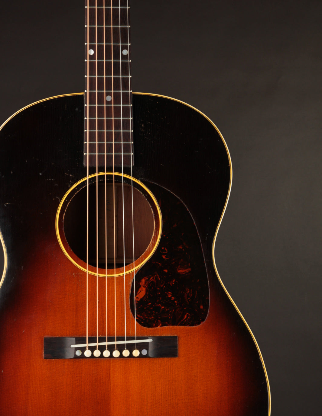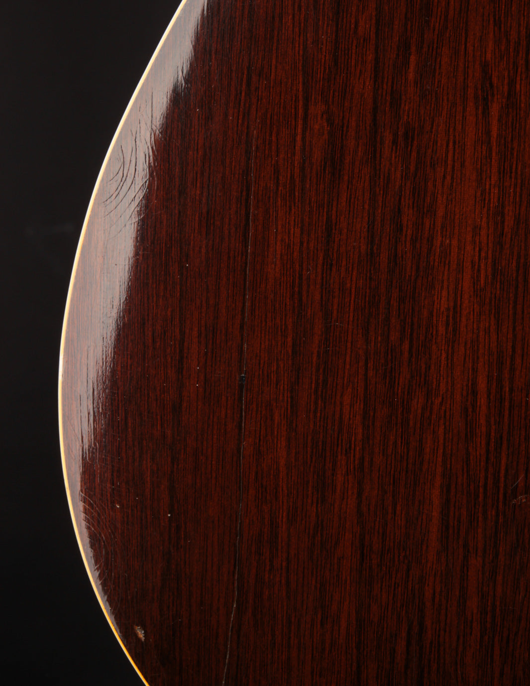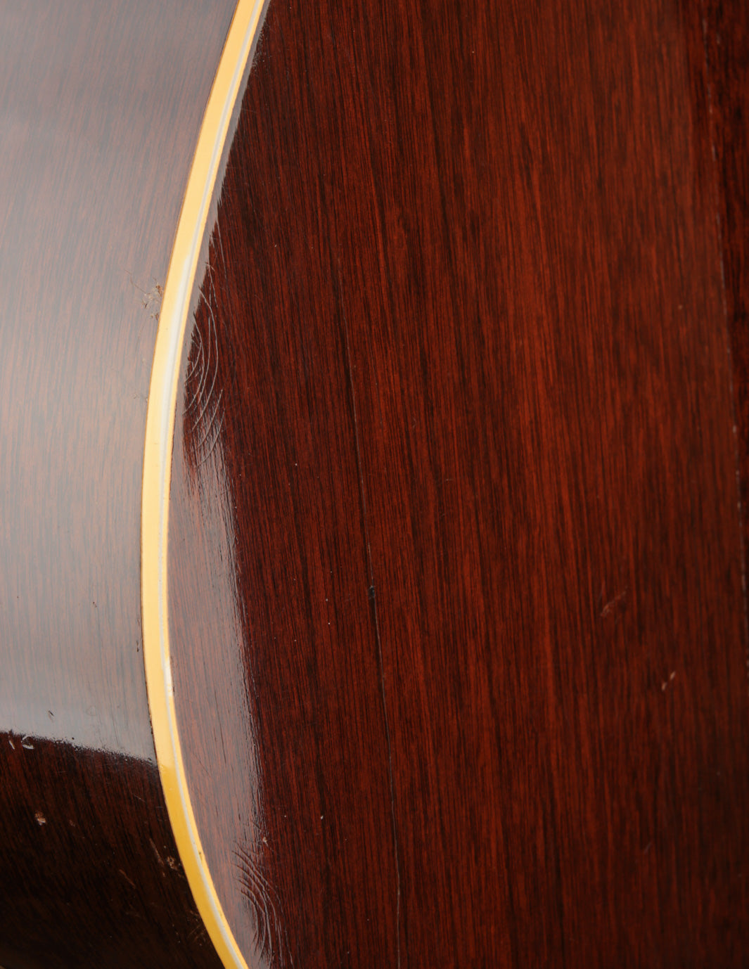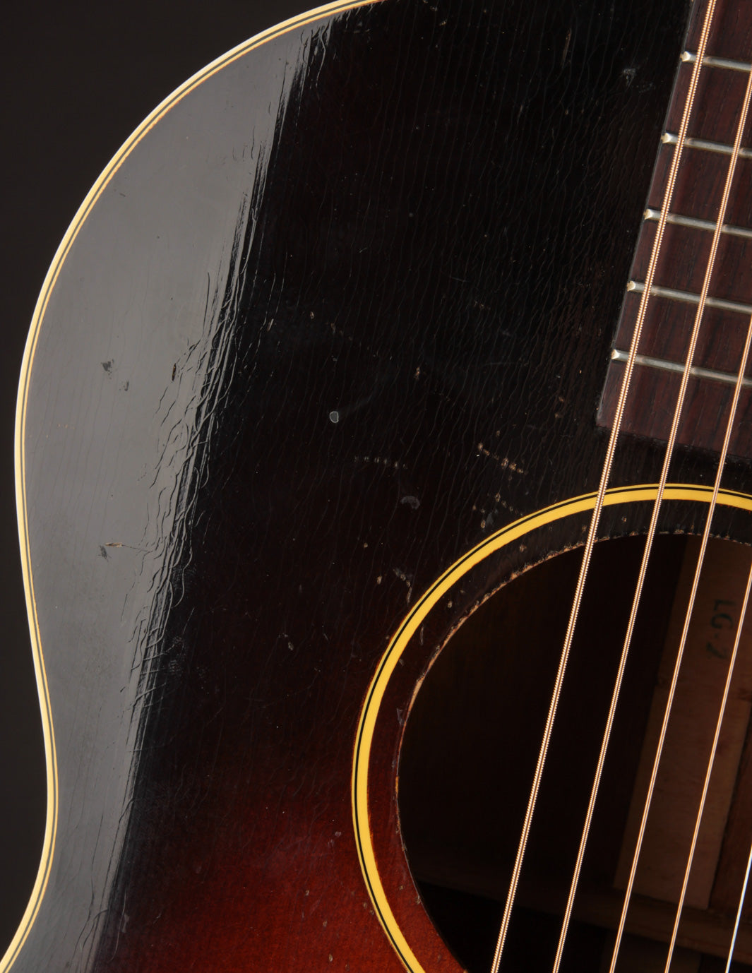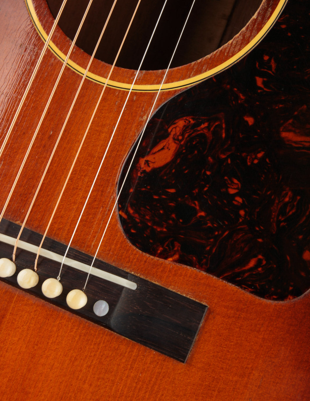 As post-Banner LG2 variants go, this guitar is an exceptional one. The neck carve is on the fatter side; and while it's nowhere near the baseball bats seen on LG2s six or seven years older, we appreciate its fullness as it relates to playability and tone. This LG2 is very open-sounding, with a surprising amount of rumble in the low midrange for a late-40's guitar. The high end is round and singing, making this an excellent fingerpicking guitar -- though to be honest, this guitar's voice is so warm and sweet there's little you can't ask of it. This one gets our highest marks!