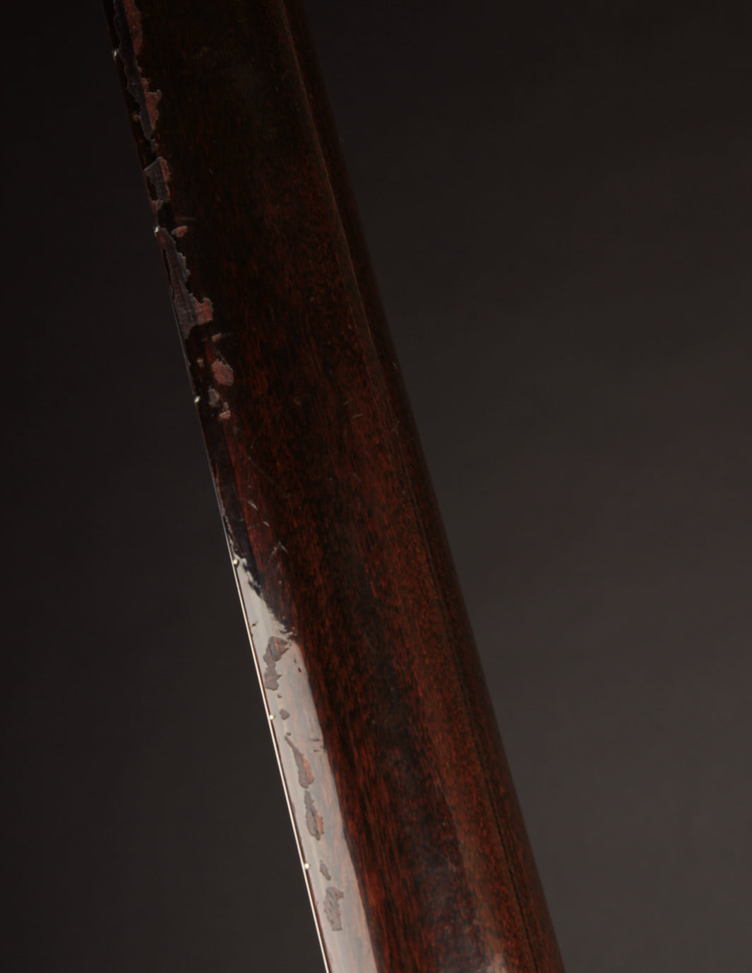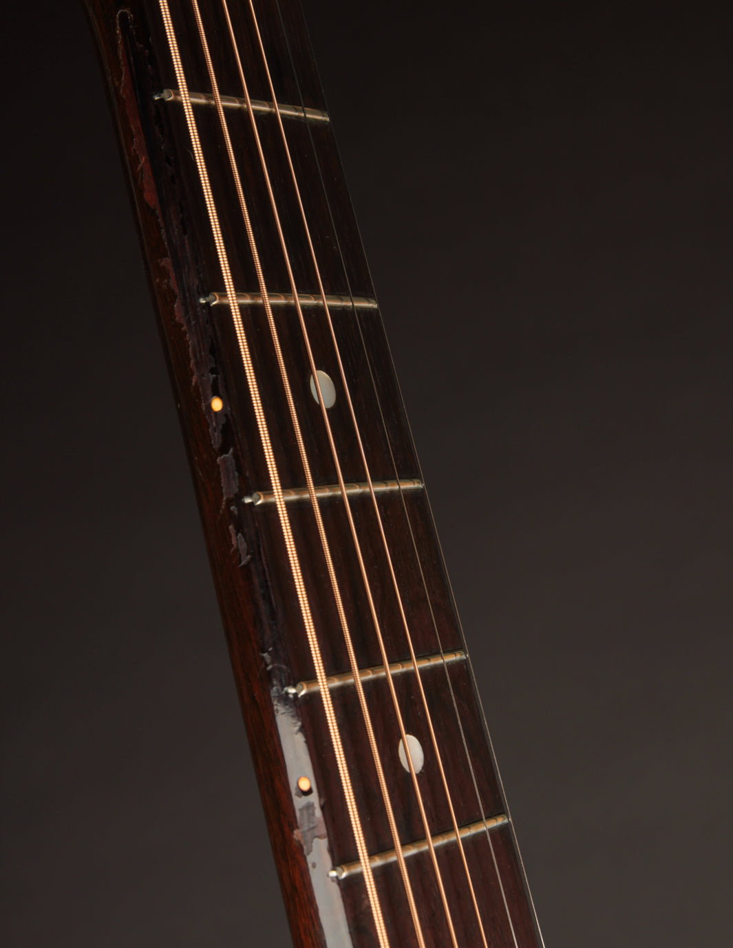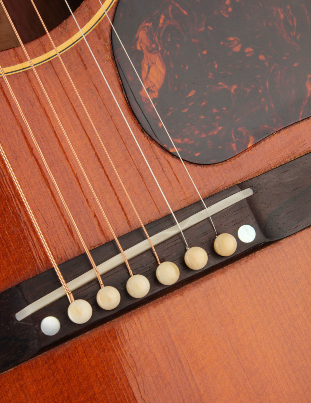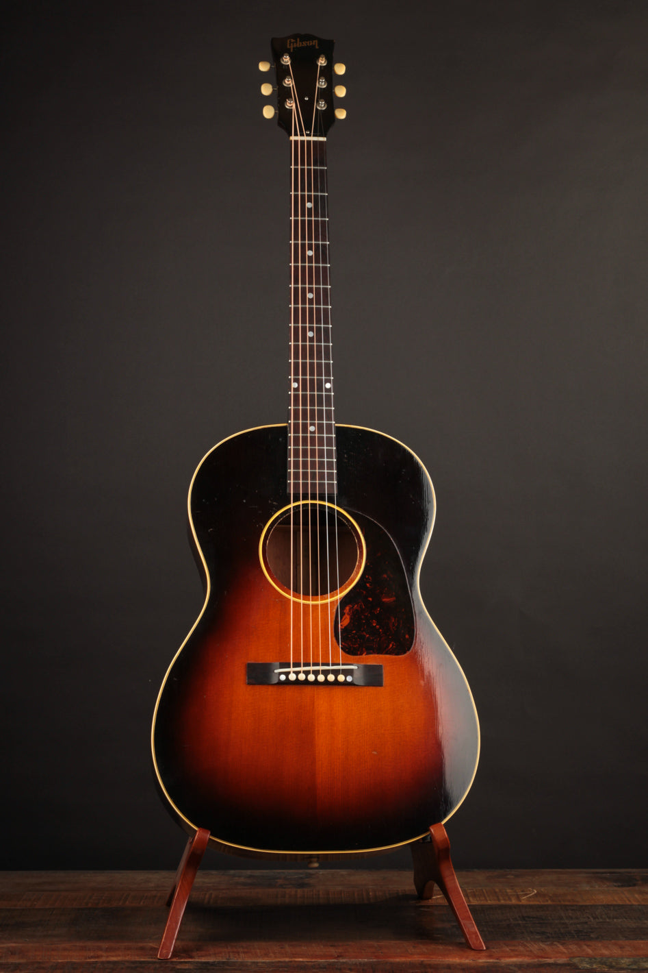 As post-Banner LG2 variants go, this guitar is an exceptional one. The neck carve is on the fatter side; and while it's nowhere near the baseball bats seen on LG2s six or seven years older, we appreciate its fullness as it relates to playability and tone. This LG2 is very open-sounding, with a surprising amount of rumble in the low midrange for a late-40's guitar. The high end is round and singing, making this an excellent fingerpicking guitar -- though to be honest, this guitar's voice is so warm and sweet there's little you can't ask of it. This one gets our highest marks!