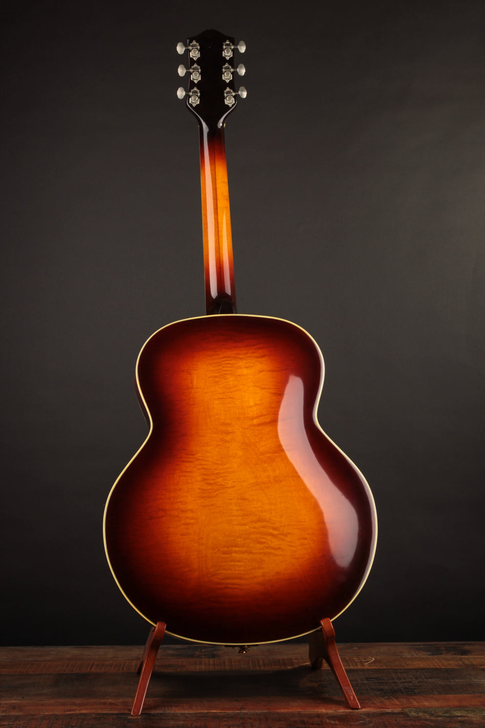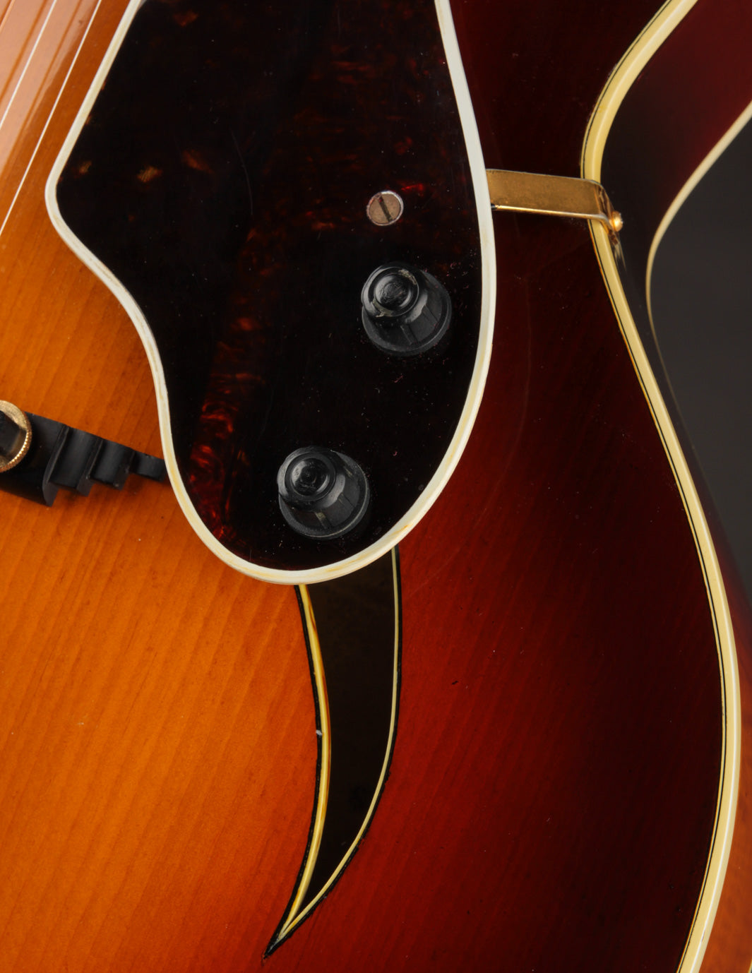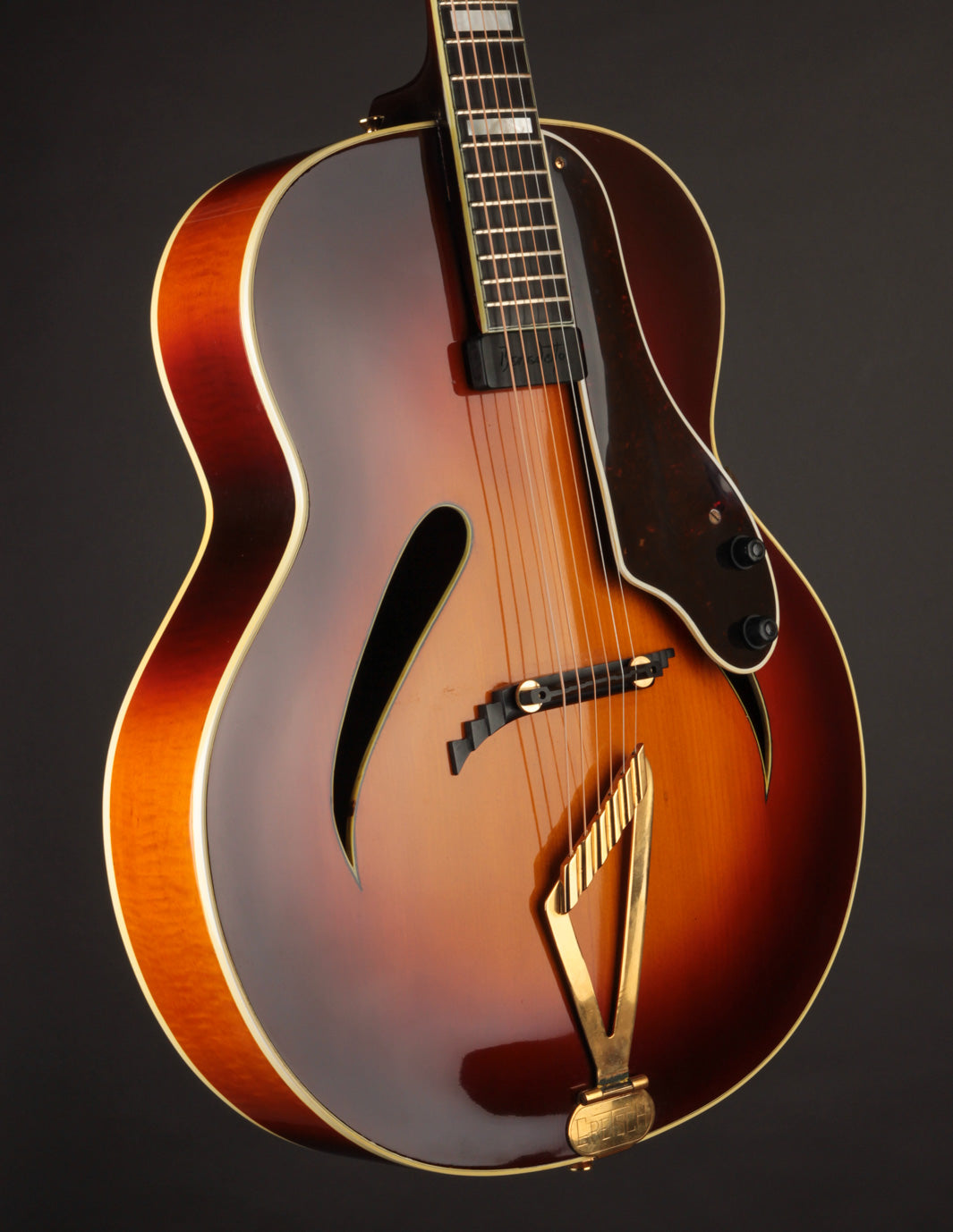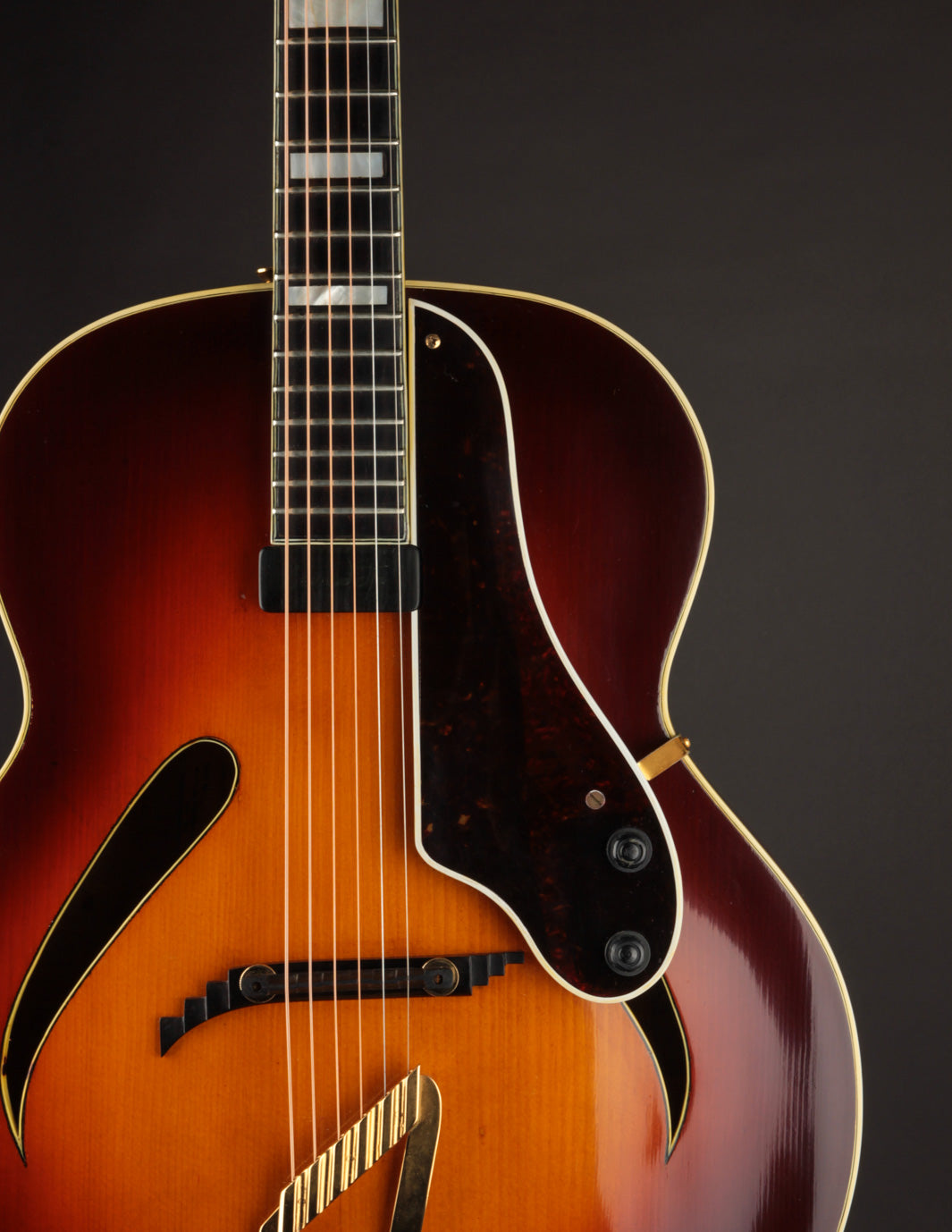The guitar has been lovingly restored to ensure decades of enjoyment, including a refinish, neck reset, and refret. The addition of the Benedetto floating pickup with pickguard-mounted volume and tone controls transforms the otherwise acoustic archtop into an excellent performing electric archtop.