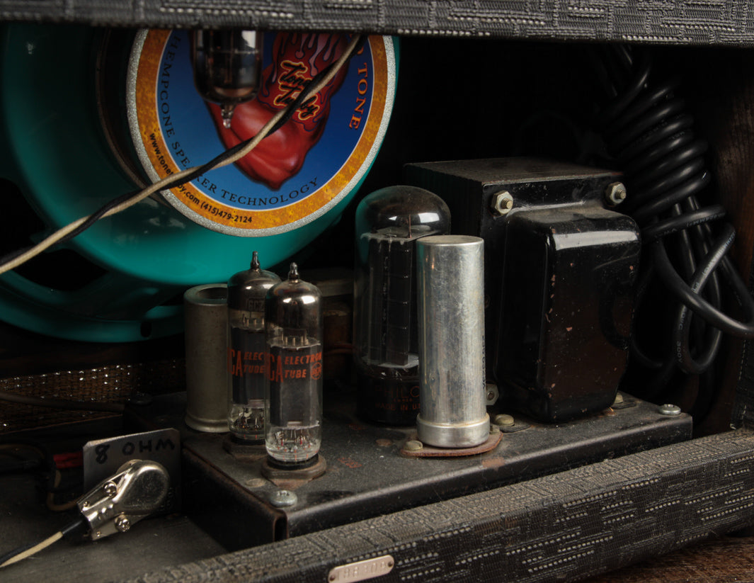 This particular amp is in great shape and has been very well maintained over the years. It was recently fully serviced, which included a recap, 3-prong power cord, installation of a modern speaker jack connection, and a Tone Tubby San Rafael 10" speaker. It sounds like nothing else in the shop - the breakup tones are rich and thick sounding with plenty of top end bite.