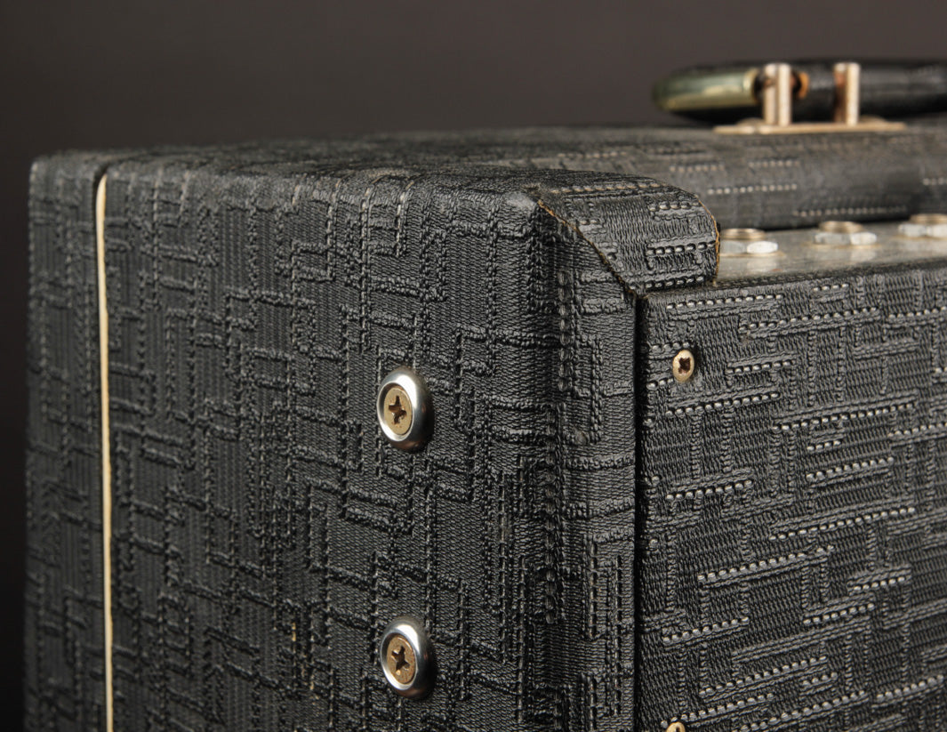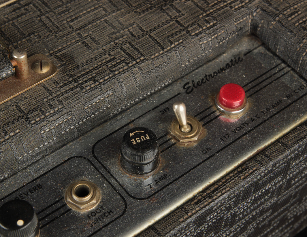 This 1963 Gretsch Electromatic 1657 is one of the rarest vintage production combos to date. Built by Valco and offered via Gretsch and Supro (1605R), this 1x10 combo packs some serious tone into a small package. Using the transformer pair found in the much larger Gretsch 6162 2x10 combo, the 6157 has a robust, punchy tone with fantastic breakup.