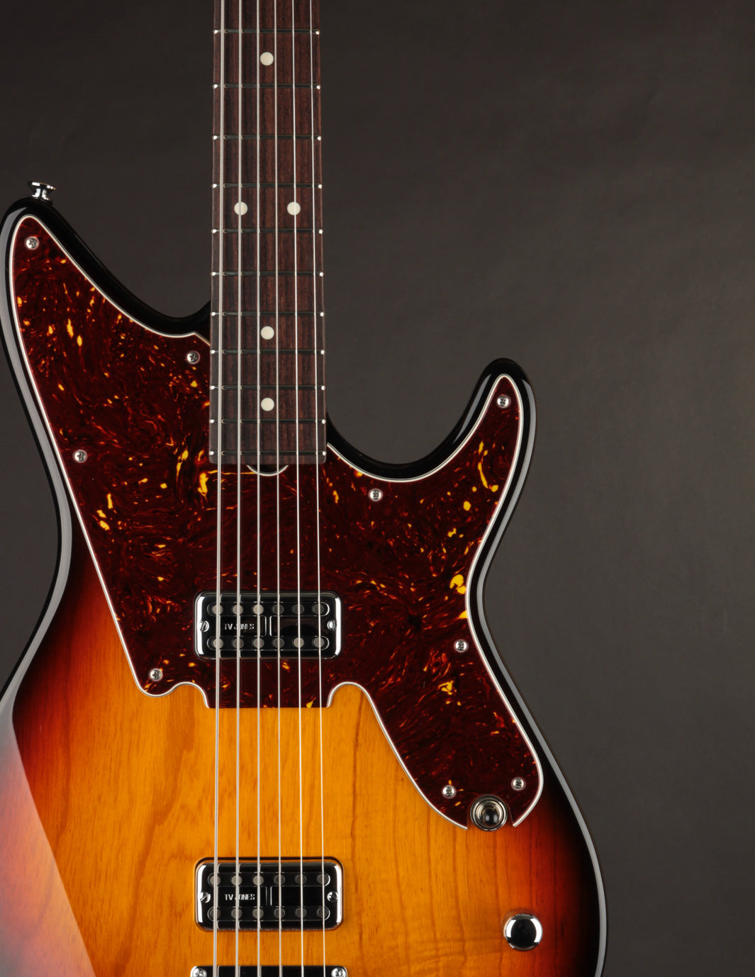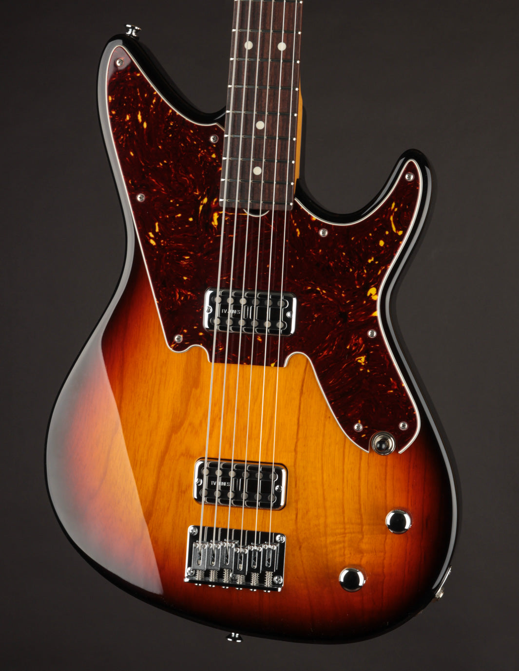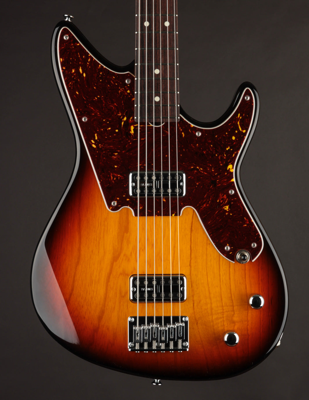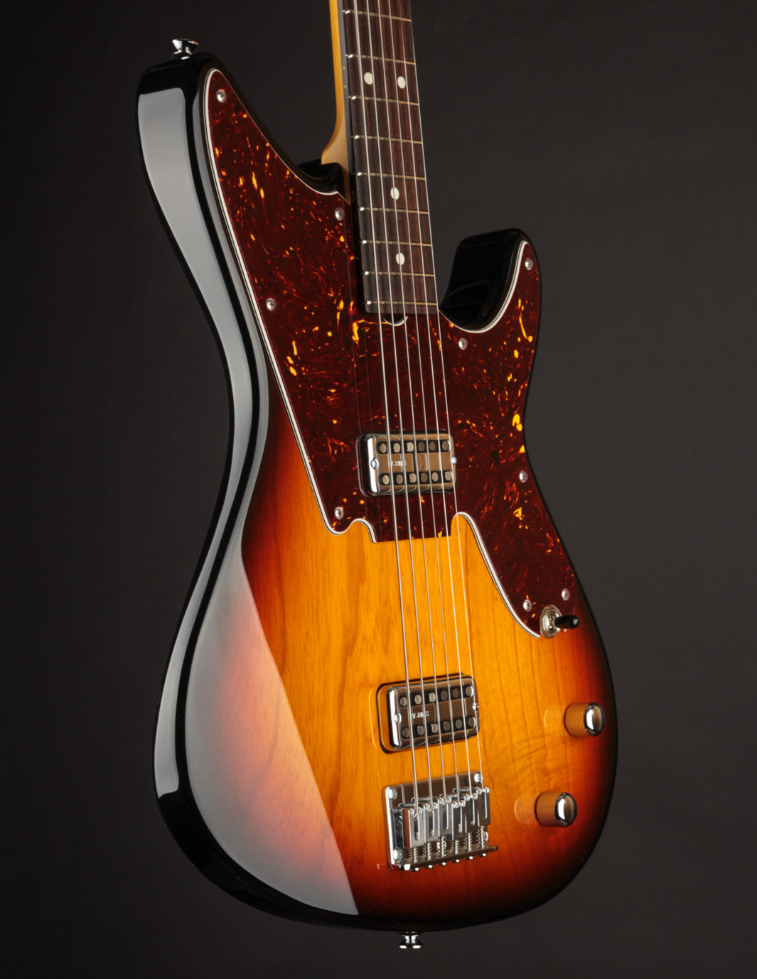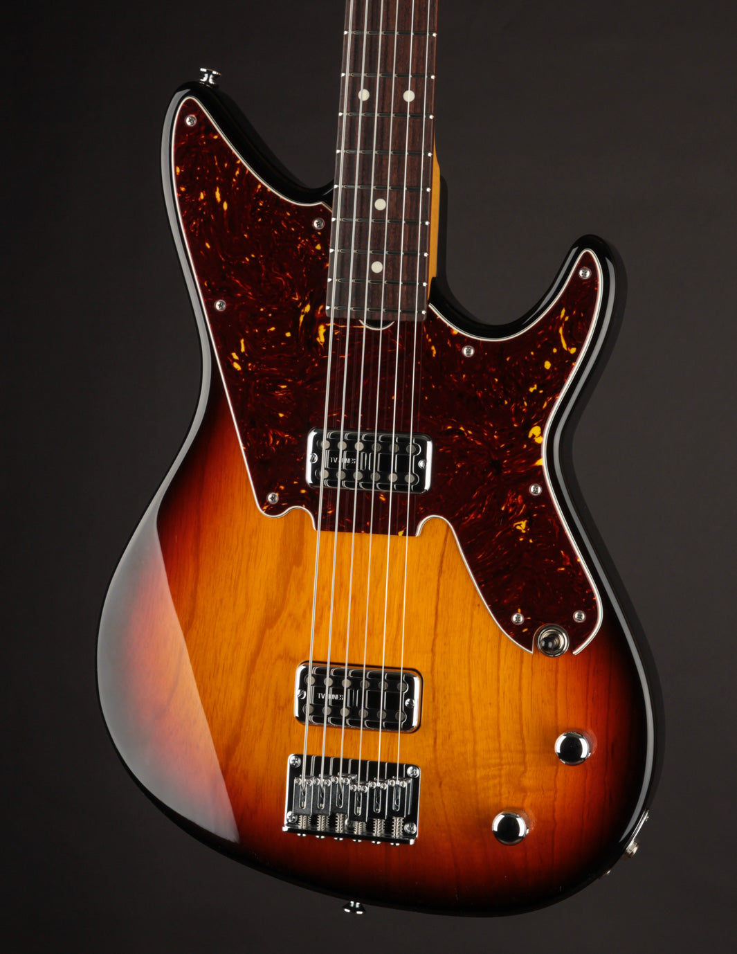 The first thing we noticed was just how lightweight this sunburst beauty is, though it somehow feels lighter than that in-hand (it also balances perfectly). The next thing we noticed was how there's zero reaching with regards to the lower frets. Baritones introduce a little bit of a reach for folks used to playing standard electric guitars - not bad, mind you, but those cowboy chords feel a touch further away. Not so with this baritone...it quite literally feels and plays like a standard electric guitar (albeit with wider fret spacing).