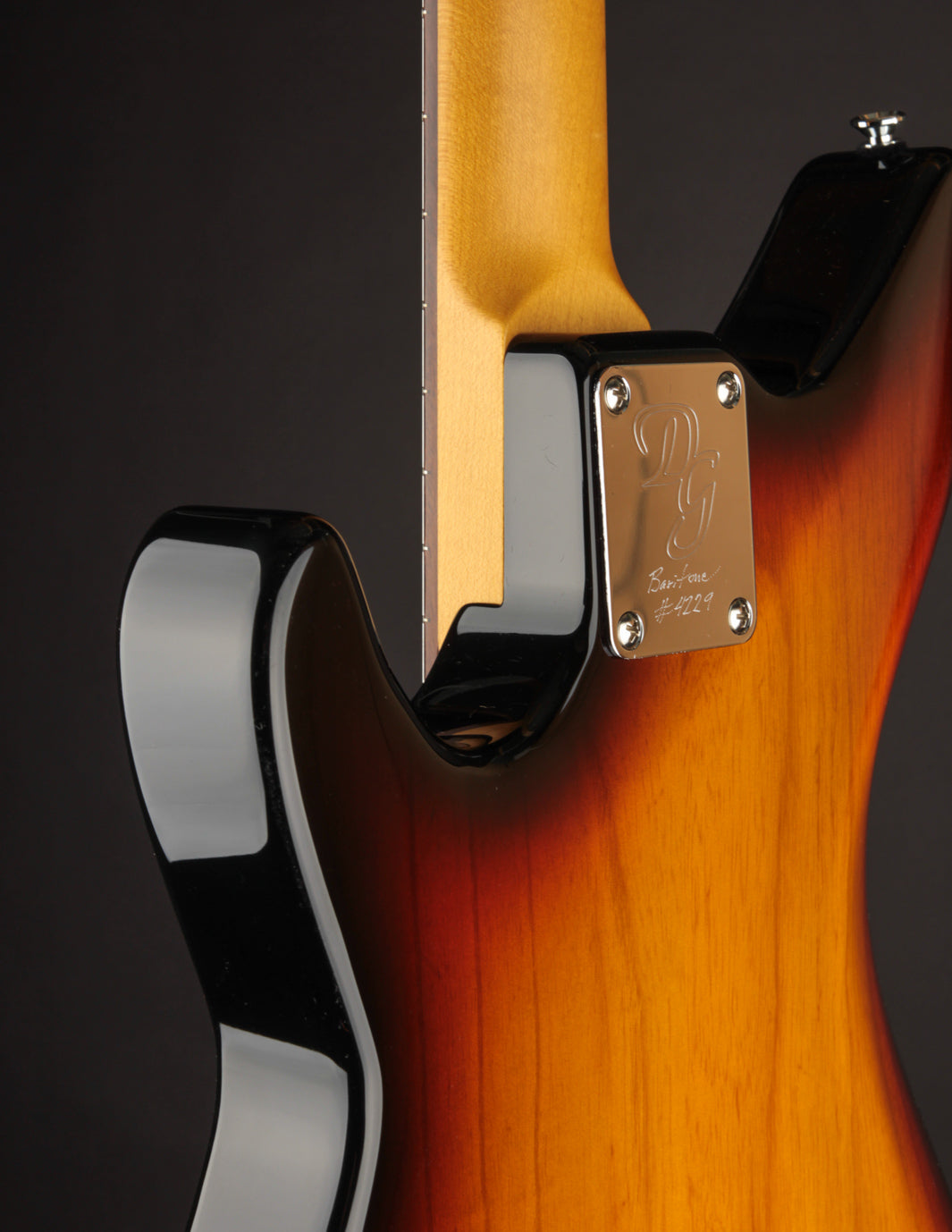 Ahh...18 frets. By relocating the bridge and using an 18 fret neck, Don has created a 28 1/2" scale baritone that is unbelievably easy to play. If you're into baritones as much as we are, we're confident this thing is going to blow you away too.