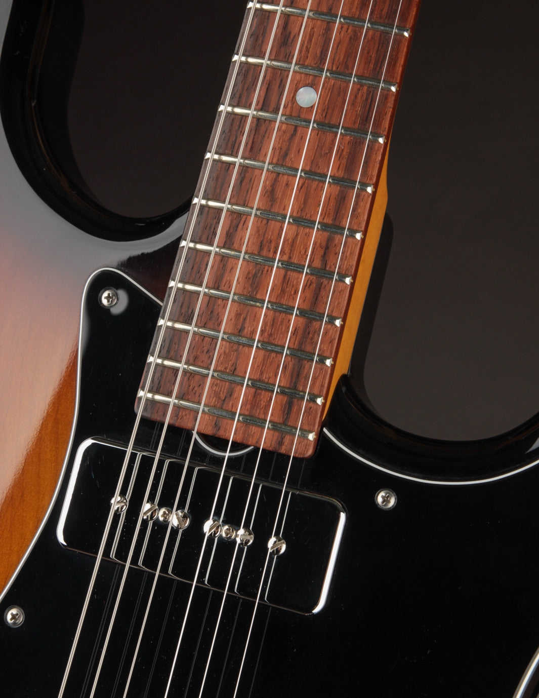 This NOS Retro sounds incredible and can cover such a huge range given the twin Grosh-wound P90s, long scale, twin volumes, master tone, and 3-way switch set up. Rock, blues, jazz...you name it, if you're technique is dialed in and you've got the right pedals and gear you can do a ton with this one.