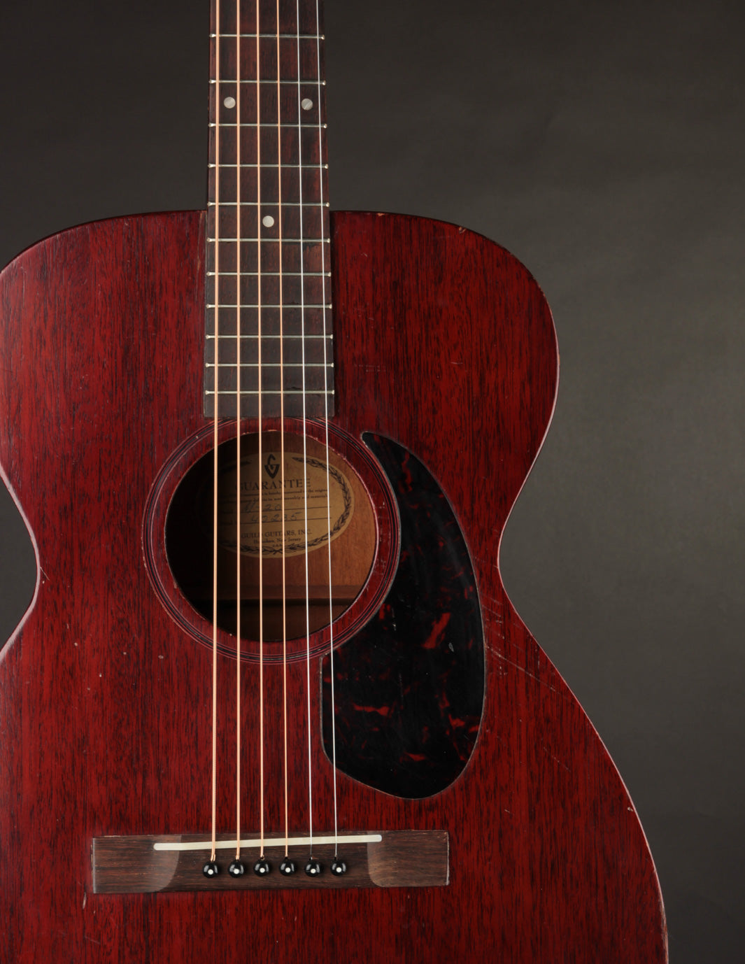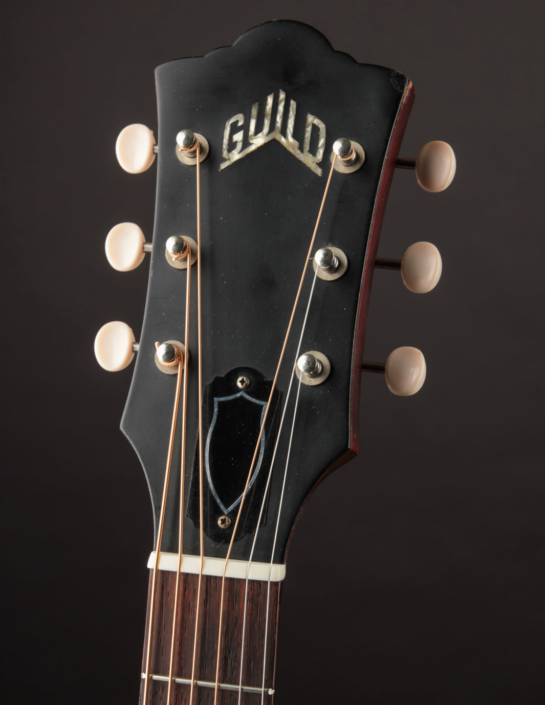 Very cool 1965 Guild M-20 just into the shop on trade! While the M-20 is famously associated with Nick Drake, who used one as a prop for a famous photo shoot, it has more in common (tonally) with the student model Martins of the 40's and 50's. The all-Mahogany construction gives it a dry, woody sound perfectly suited to fingerpicking; and it'd record like a dream.