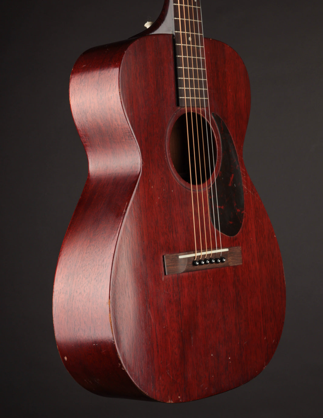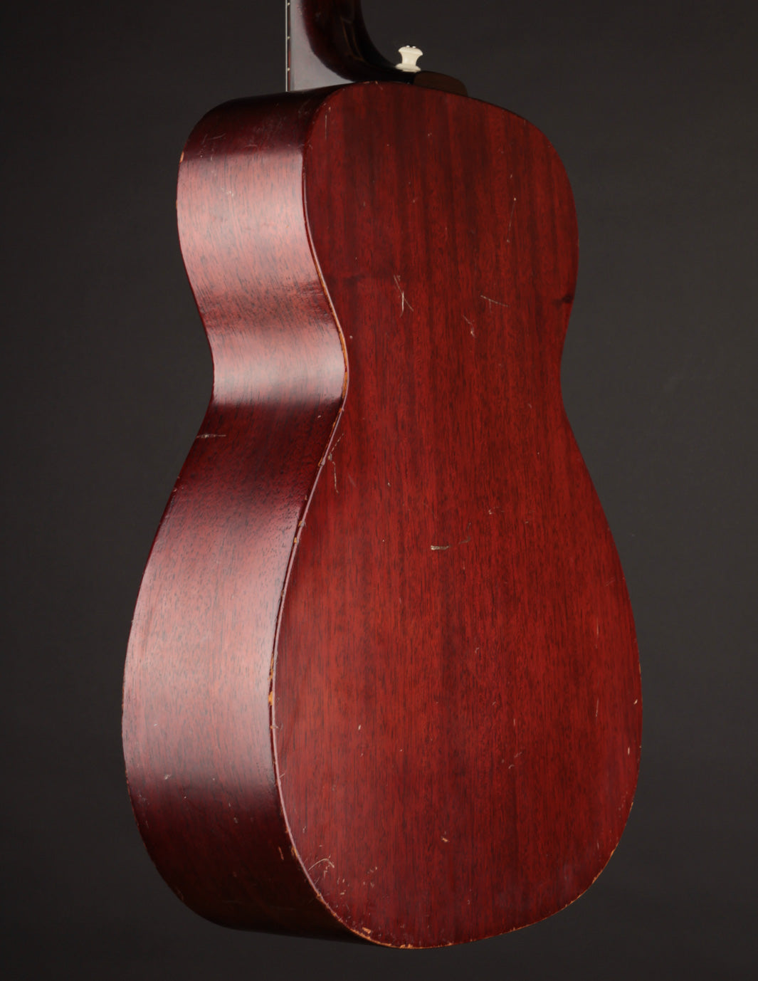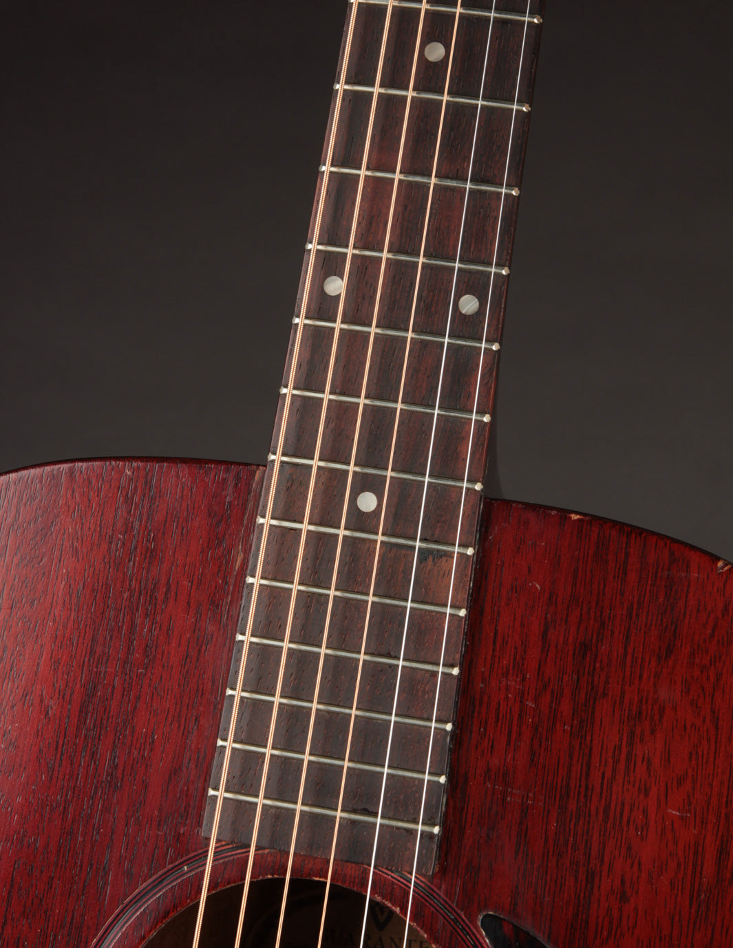 This guitar is in very nice condition for its age. It has been refretted; and a new bone nut & saddle have been installed. There are no cracks, though you'll find plenty of scratches and dings scattered across the top and back. Playability is excellent, with low action and healthy saddle height. Priced with hard case.