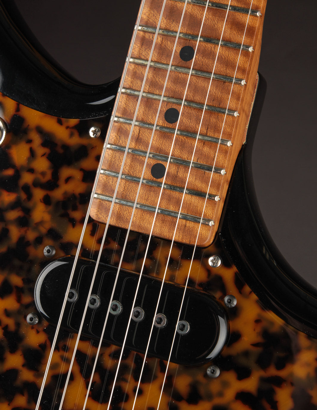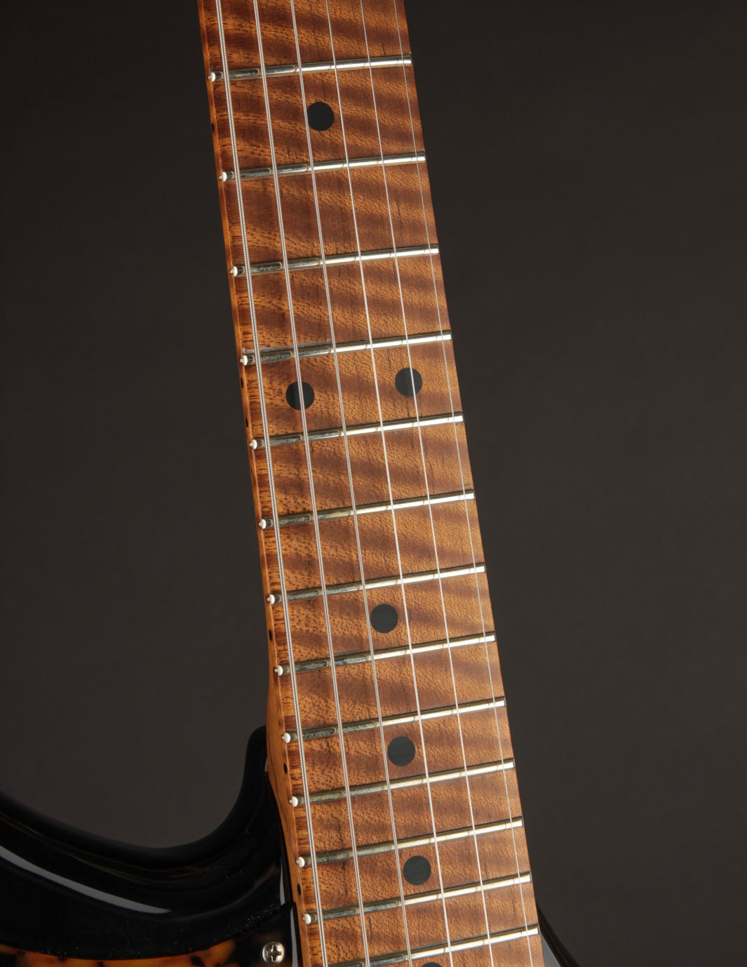 The Slim/Medium C carve is quite comfortable with a moderate taper - it reminds us a bit of some of the '62/'63 Gibson neck carves. Combined with the slightly narrower nut and 12" radius, it makes for a very fast-playing neck.
