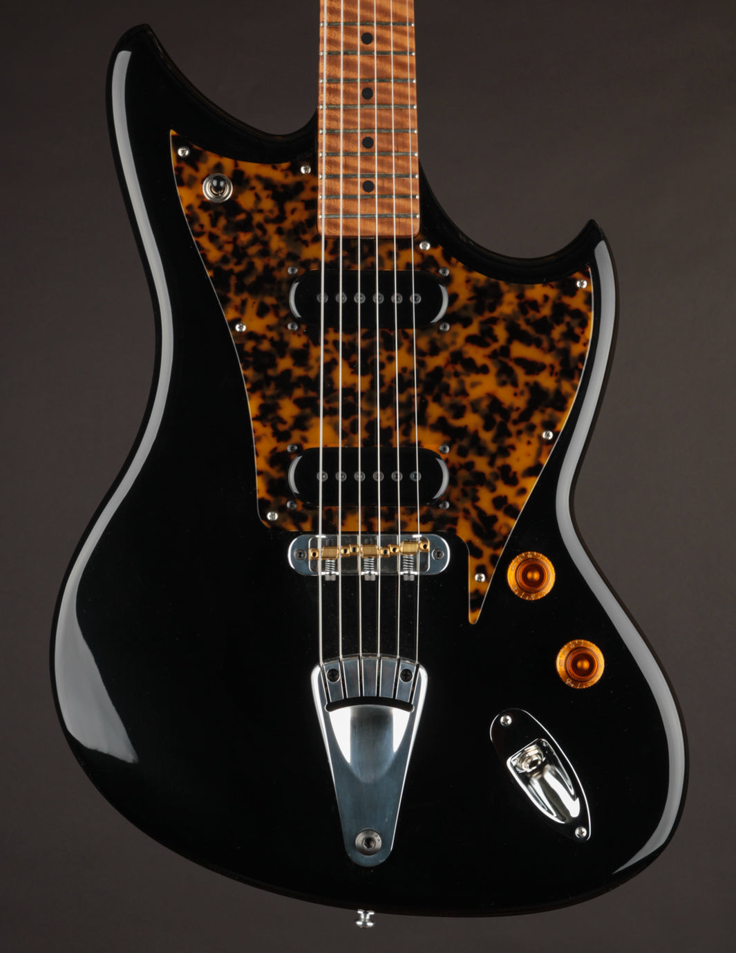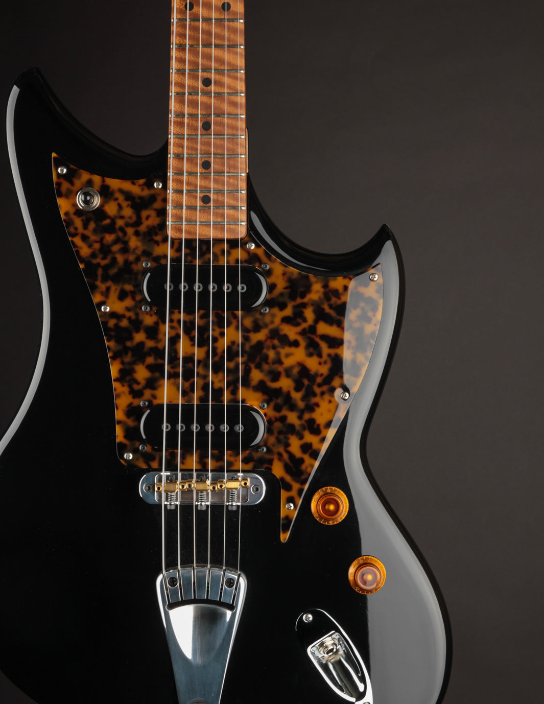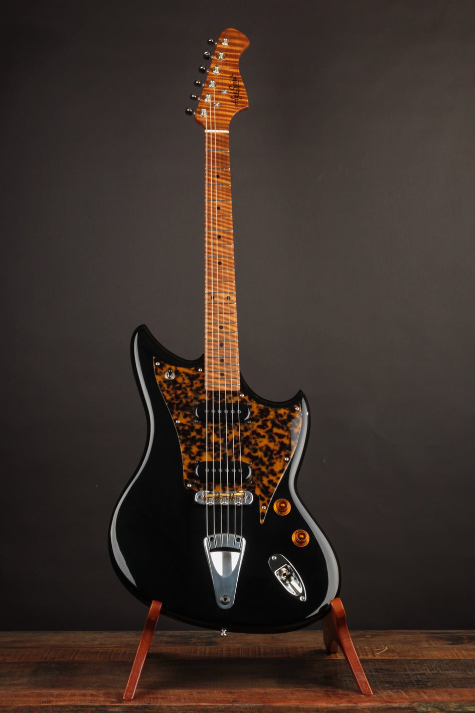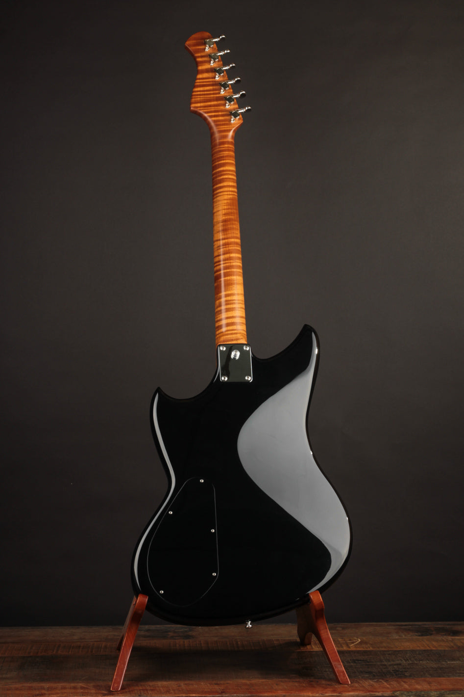 Our first Red Tail Hawk of 2024 comes in with a fantastic combination of specs that make this build one of our favorite High Spirits to date. Mahogany body finished in Black, highly figured Maple with a matching "cap" fingerboard, and a set of the great Hot Dog single coils make for one special piece!