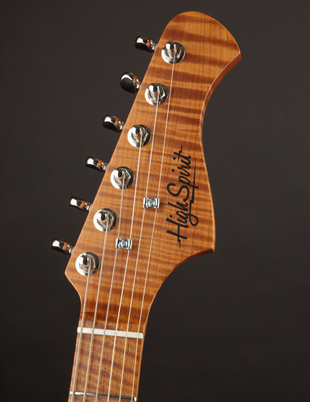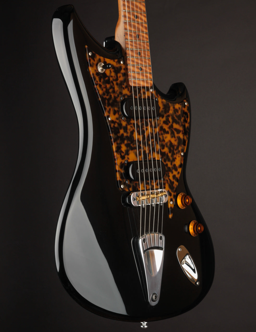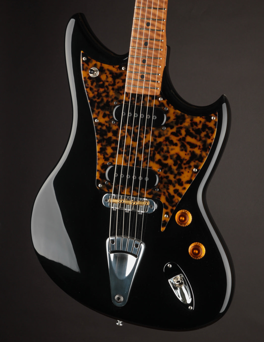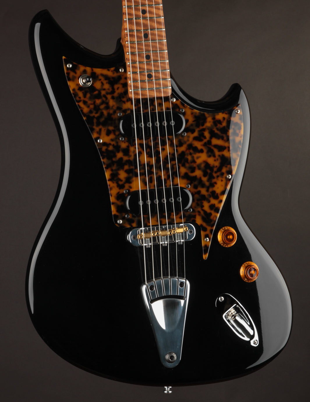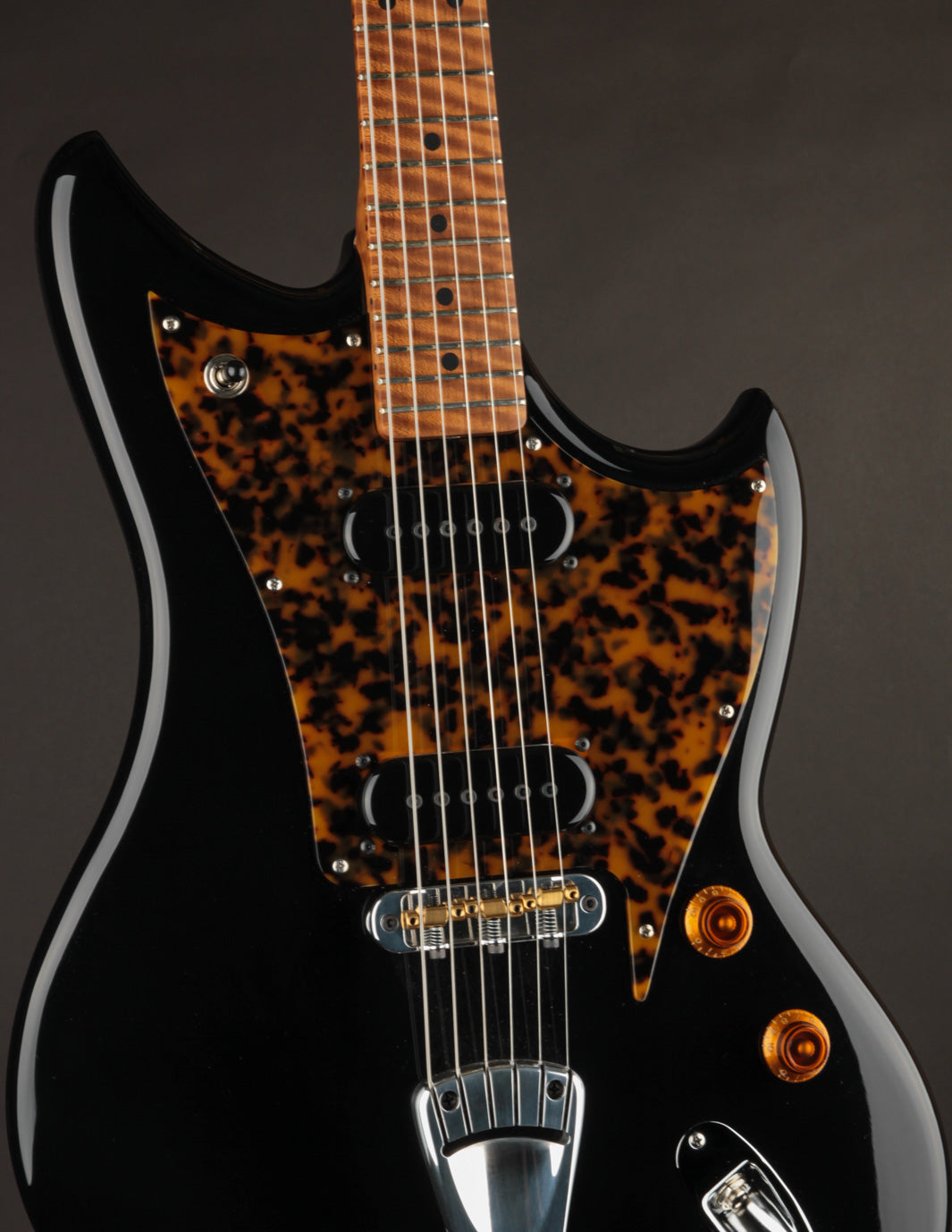 Our first Red Tail Hawk of 2024 comes in with a fantastic combination of specs that make this build one of our favorite High Spirits to date. Mahogany body finished in Black, highly figured Maple with a matching "cap" fingerboard, and a set of the great Hot Dog single coils make for one special piece!