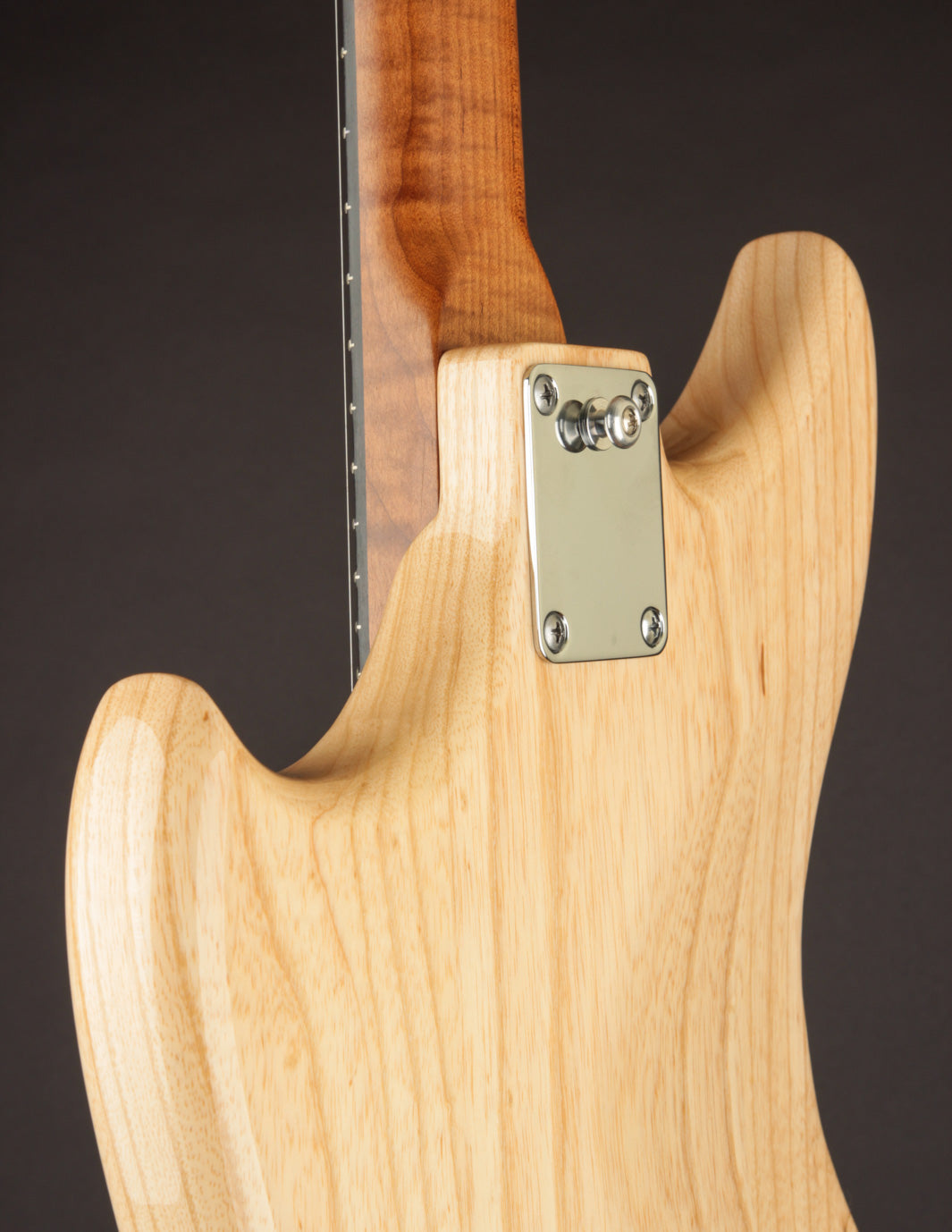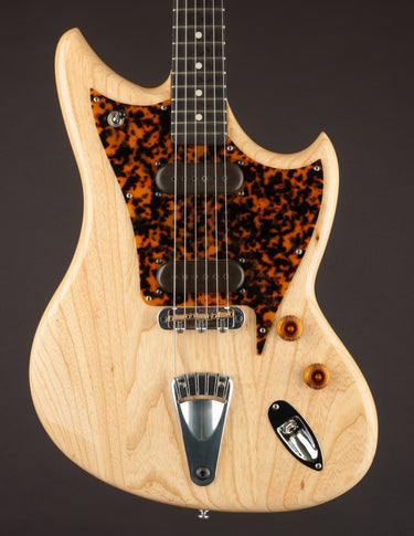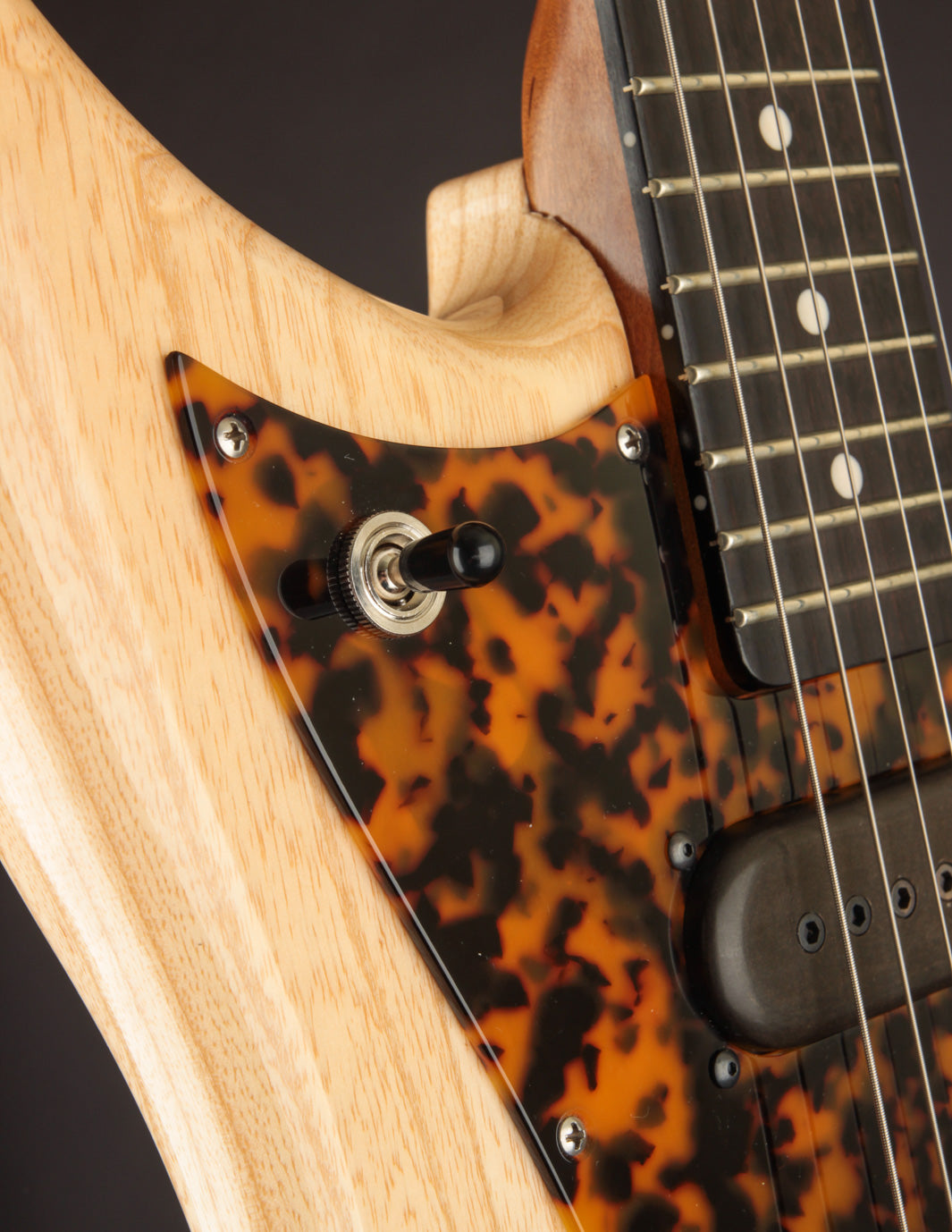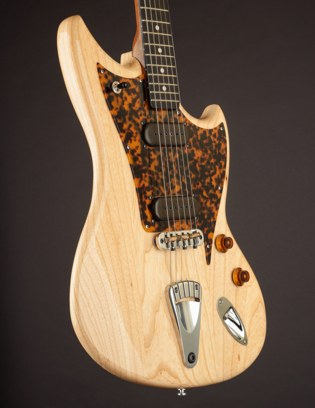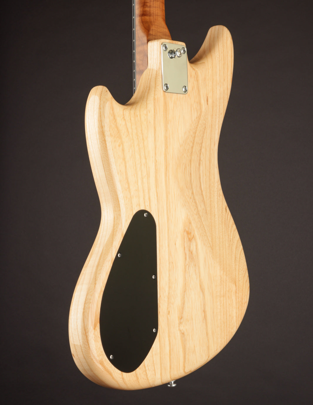 This Red Tail Hawk one's got some really cool specs that make it a truly killer example of the High Spirit offset. The natural Ash body sports a custom made acrylic dark tortoise pickguard, and is loaded with a hybrid set of Danger Dog (neck) and Hot Dog (bridge) pickups and of course, Connor's custom designed bridge a tailpiece.