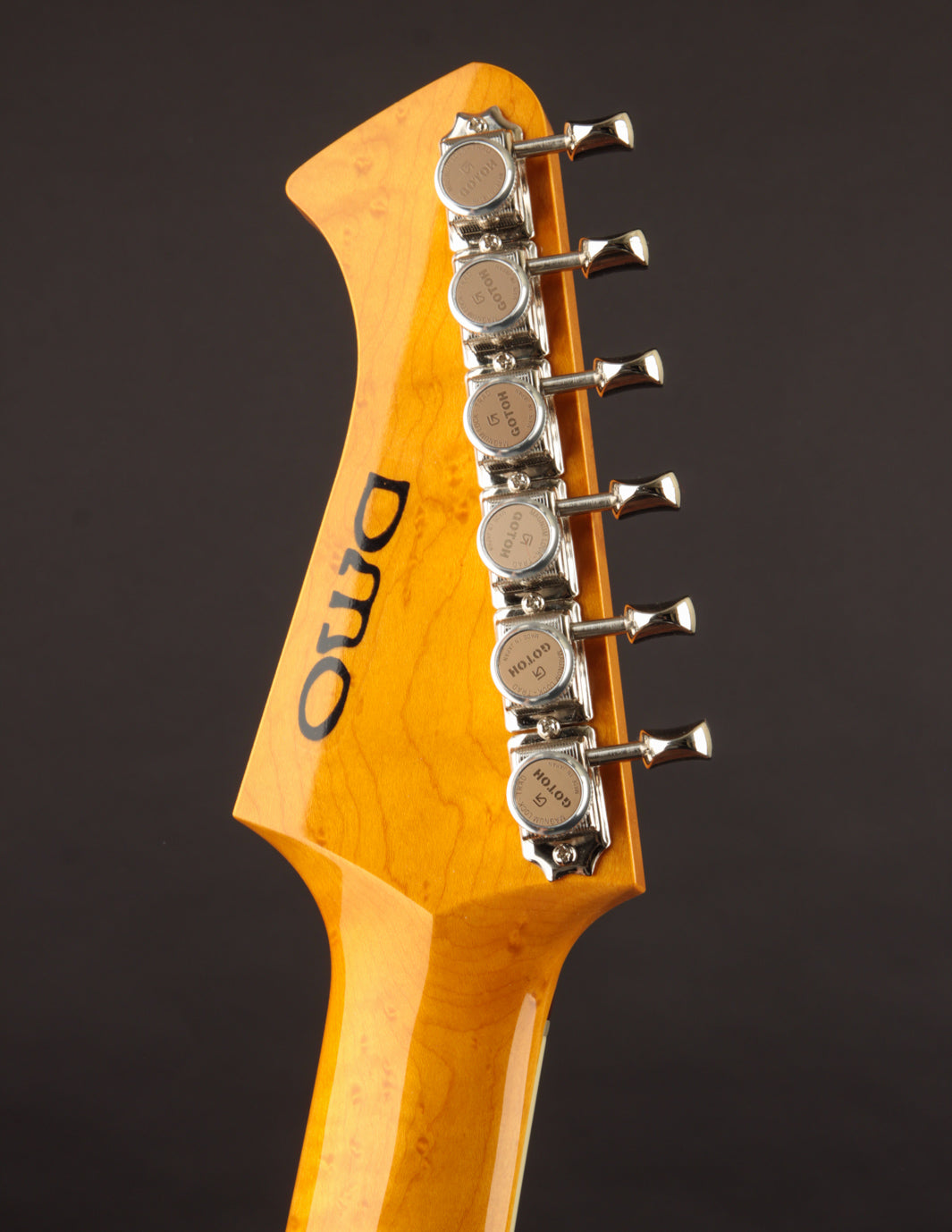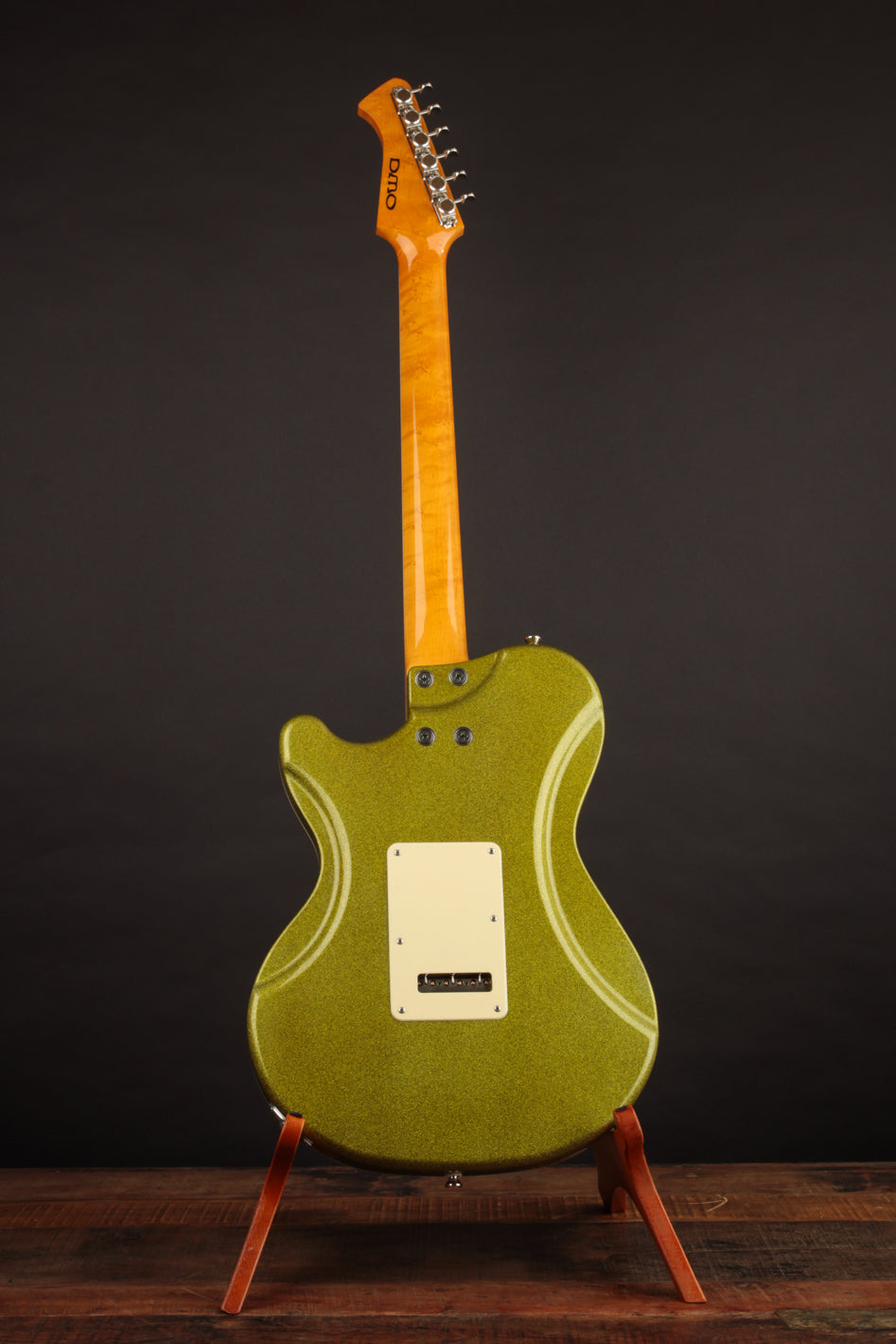 The visual language of the DMO, pictured here in a gorgeous Green Metal Flake, is extraordinary - attention to detail is the name of the game here. Deep German Carves on both the top and back of the solid, swamp ash body create a lot of movement and depth while also keeping the player’s comfort in mind.