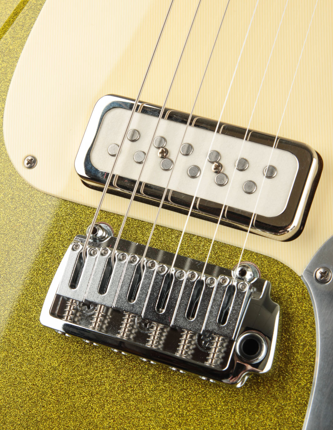 Loaded with Gemini Twin Mag Single Coil pickups, a very cool Series Toggle w/Capacitance Compensation switch (it’s like kicking on a great clean boost), Gotoh 2 post bridge and locking tuners, the DMO reminded us a bit of a great Gretsch Duo Jet-meets-Les Paul regarding tones - clear, strong fundamental, great for clean or edge-of-breakup tones - but with a much more modern playing experience. The trem is incredibly expressive and stable, so no tuning issues here.