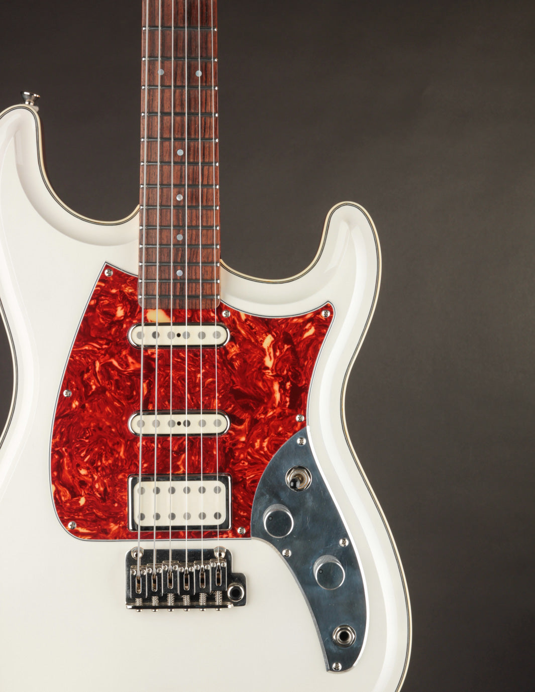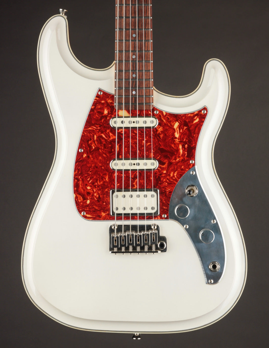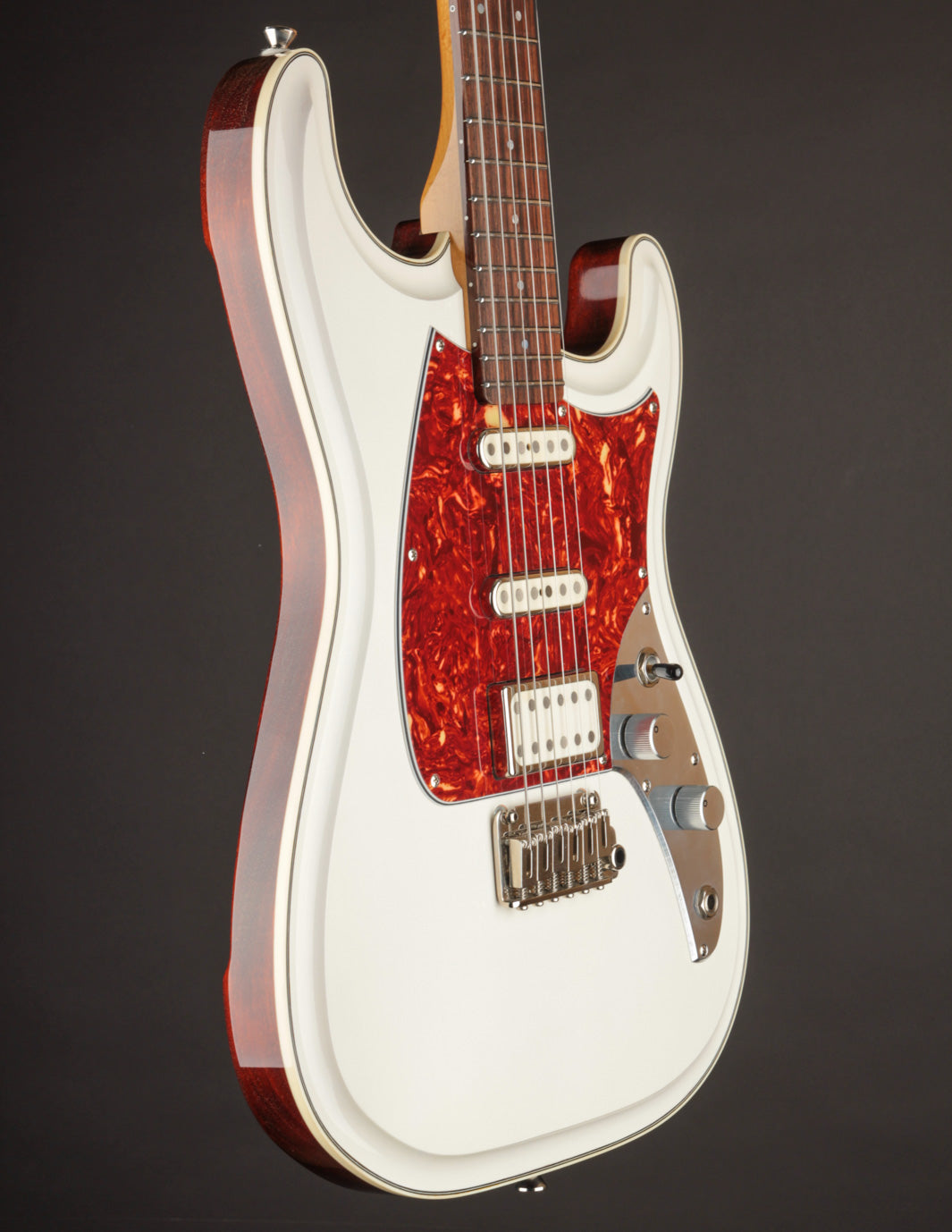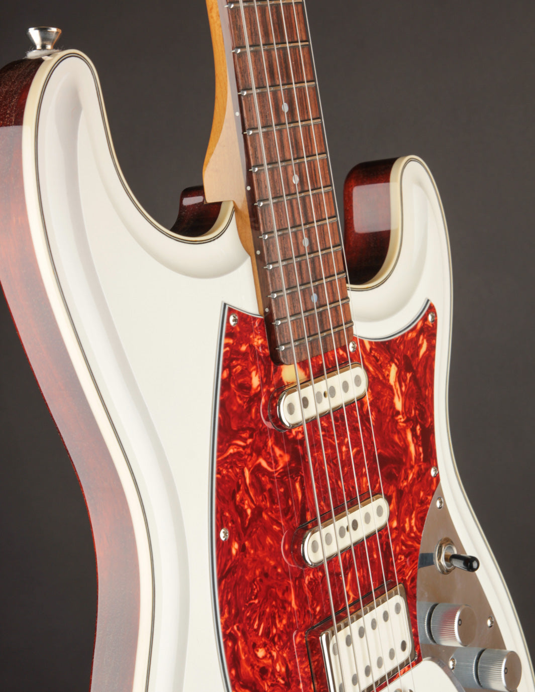 The unbound birdseye maple neck with an Indian rosewood fingerboard offers a striking contrast to the one-piece chambered mahogany body with its Olympic White top. Featuring a 60s Oval C carve, 12” radius, and stainless steel frets, the Skylighter delivers a refined, vintage-inspired feel that’s both familiar and comfortable.