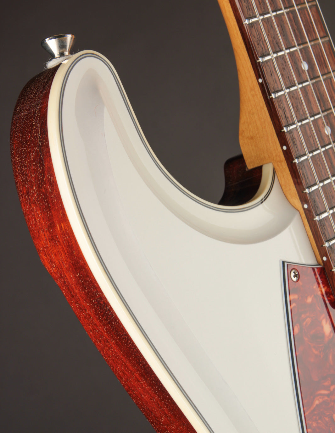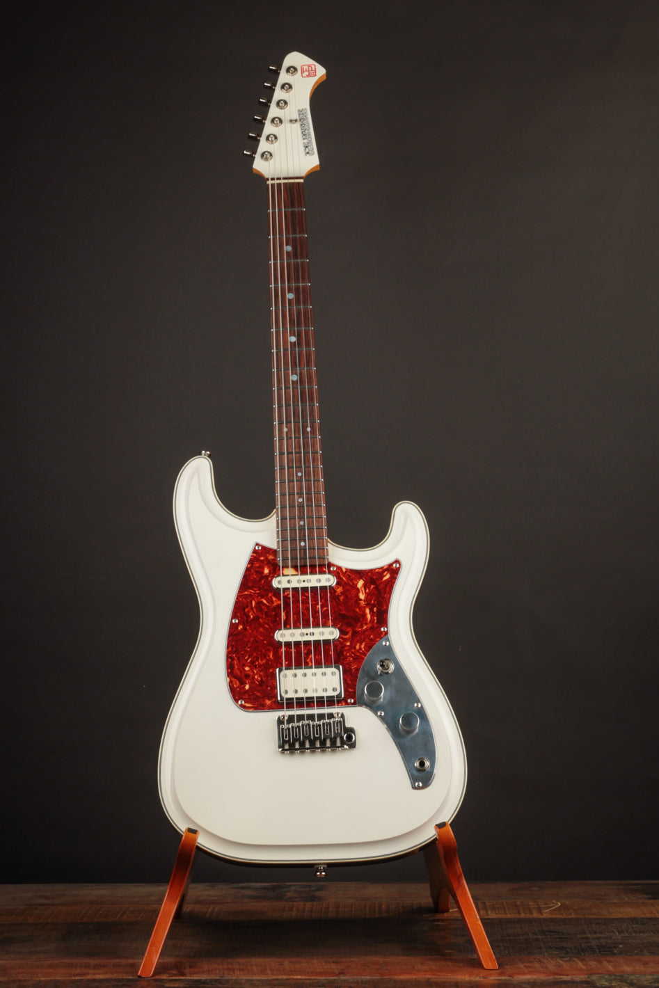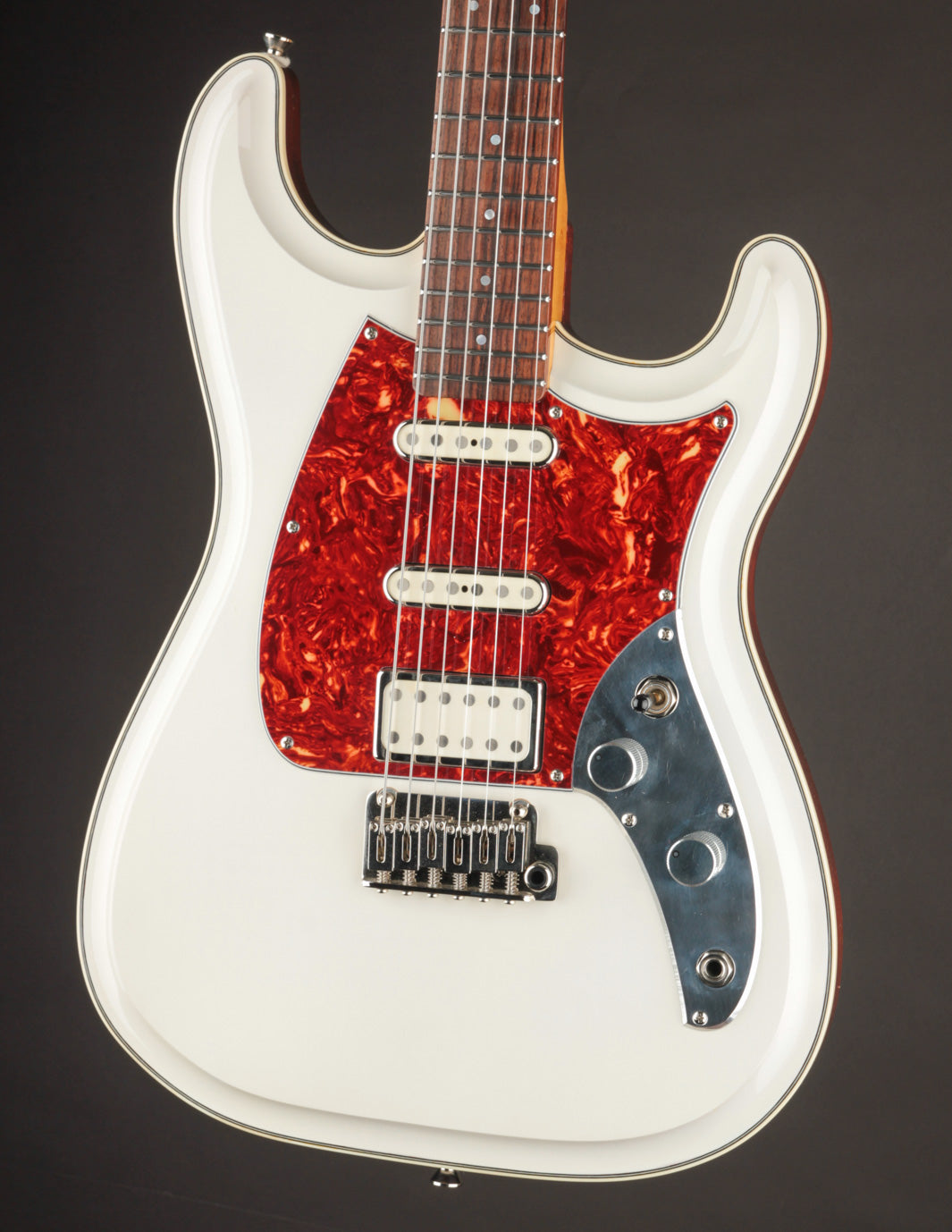 The unbound birdseye maple neck with an Indian rosewood fingerboard offers a striking contrast to the one-piece chambered mahogany body with its Olympic White top. Featuring a 60s Oval C carve, 12” radius, and stainless steel frets, the Skylighter delivers a refined, vintage-inspired feel that’s both familiar and comfortable.