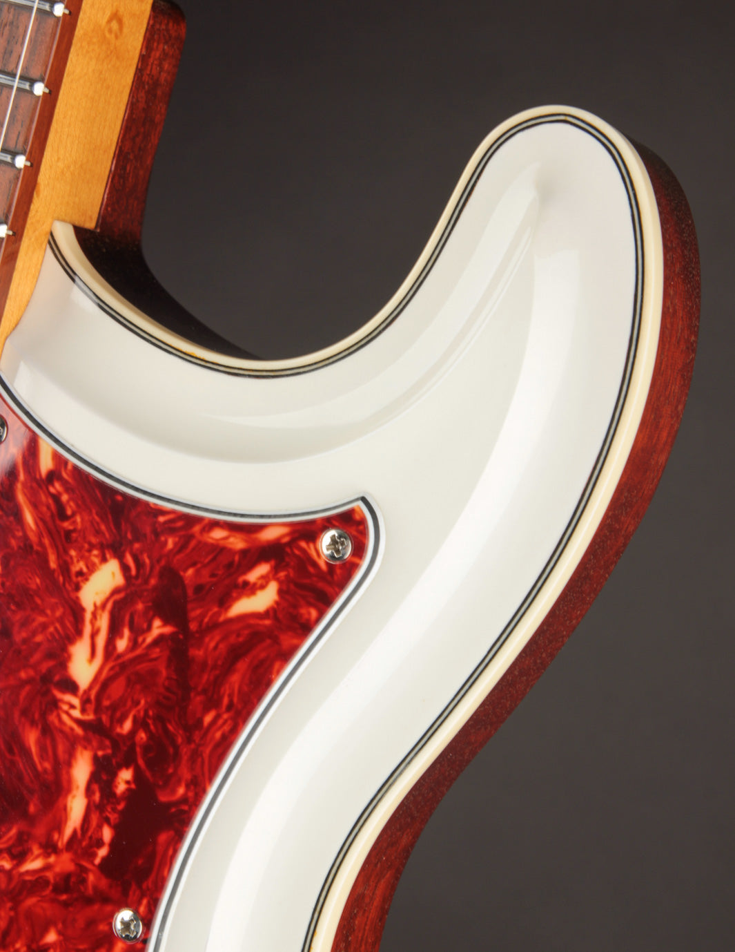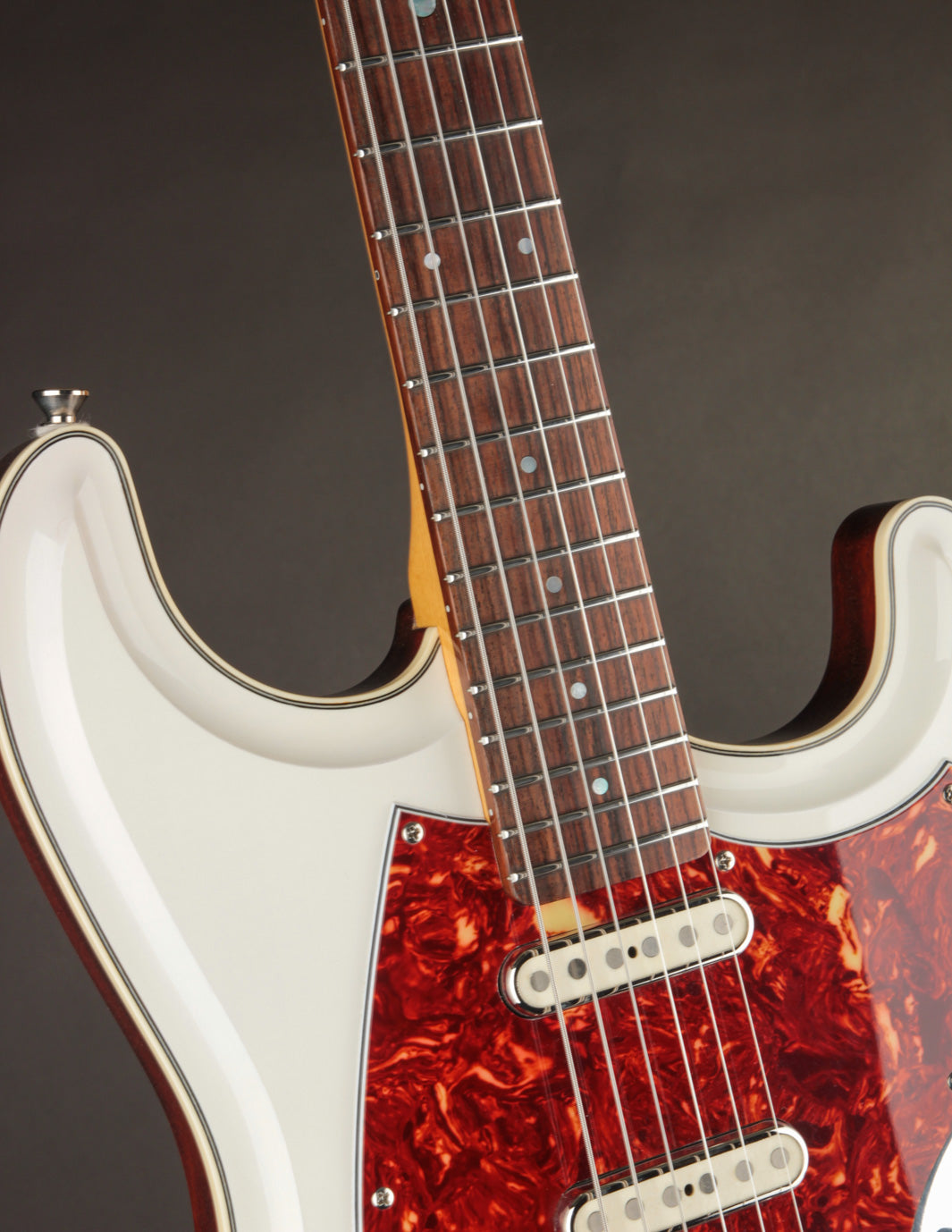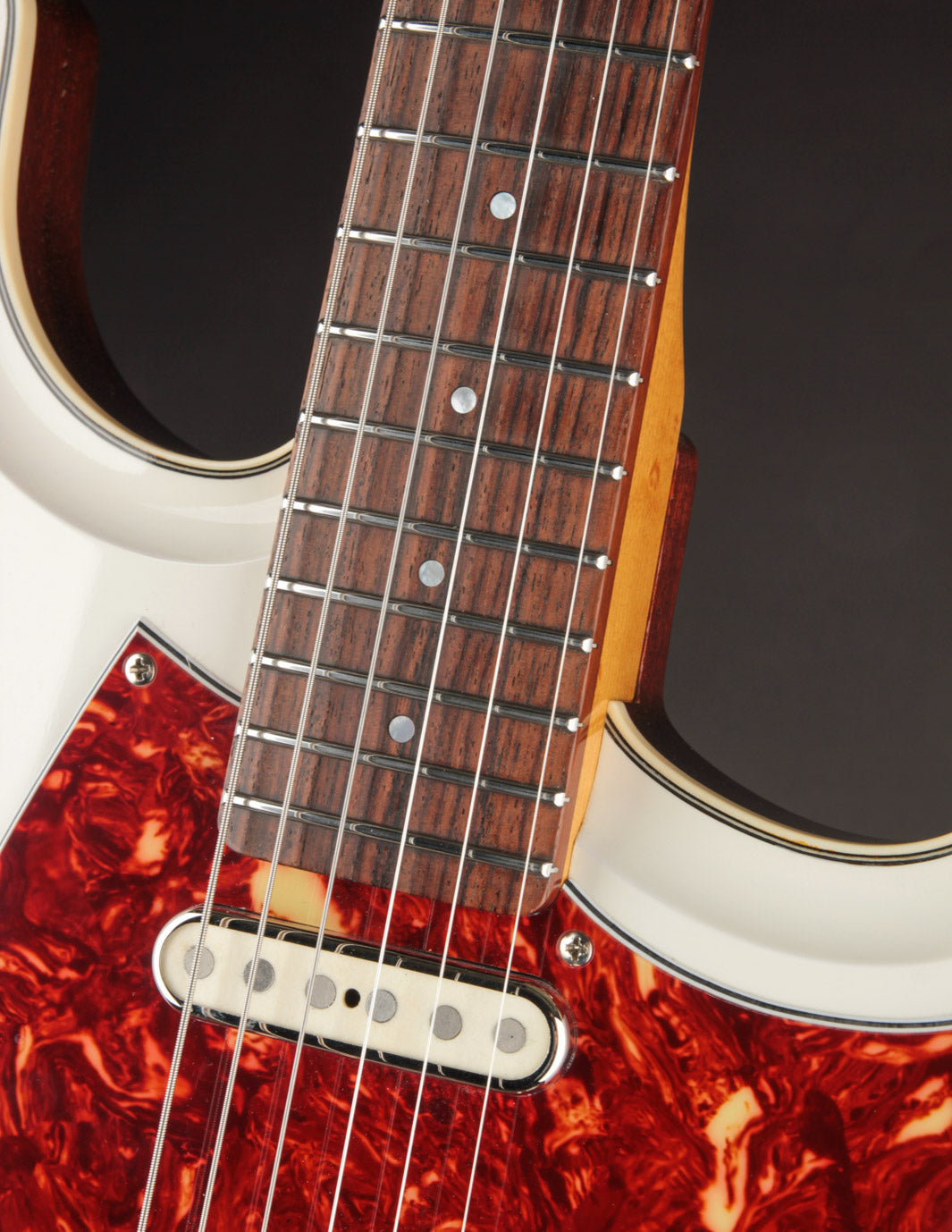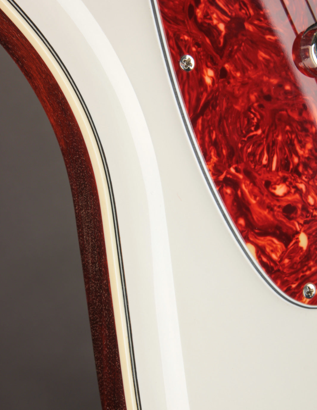 The unbound birdseye maple neck with an Indian rosewood fingerboard offers a striking contrast to the one-piece chambered mahogany body with its Olympic White top. Featuring a 60s Oval C carve, 12” radius, and stainless steel frets, the Skylighter delivers a refined, vintage-inspired feel that’s both familiar and comfortable.