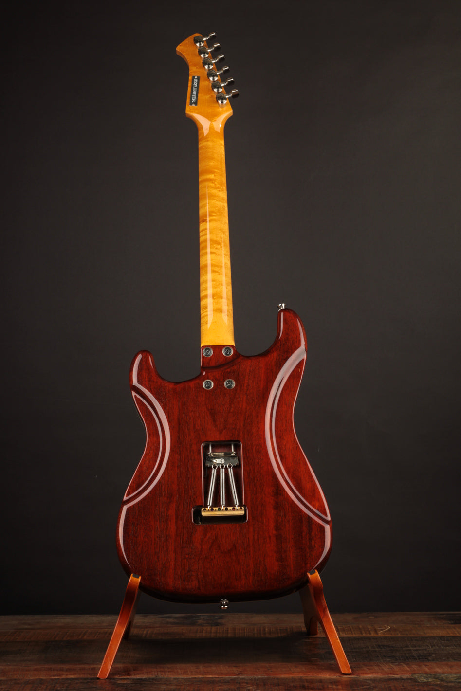 The Skylighter’s aesthetics are nothing short of extraordinary. With its deep German carves on both the top and back of the solid swamp ash body, this guitar balances visual movement, depth, and player comfort.