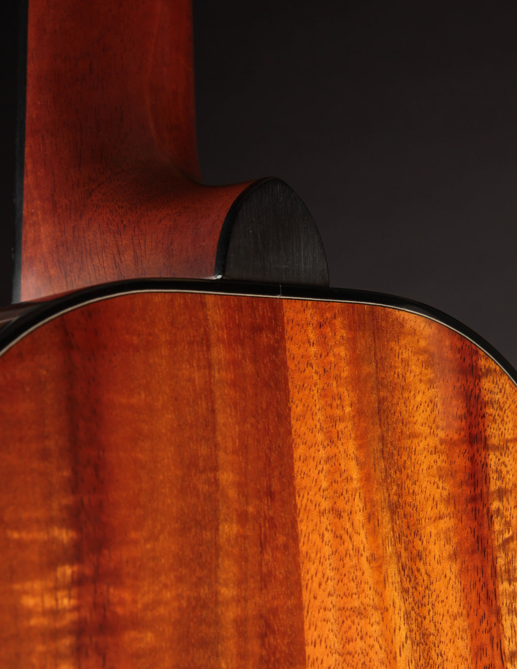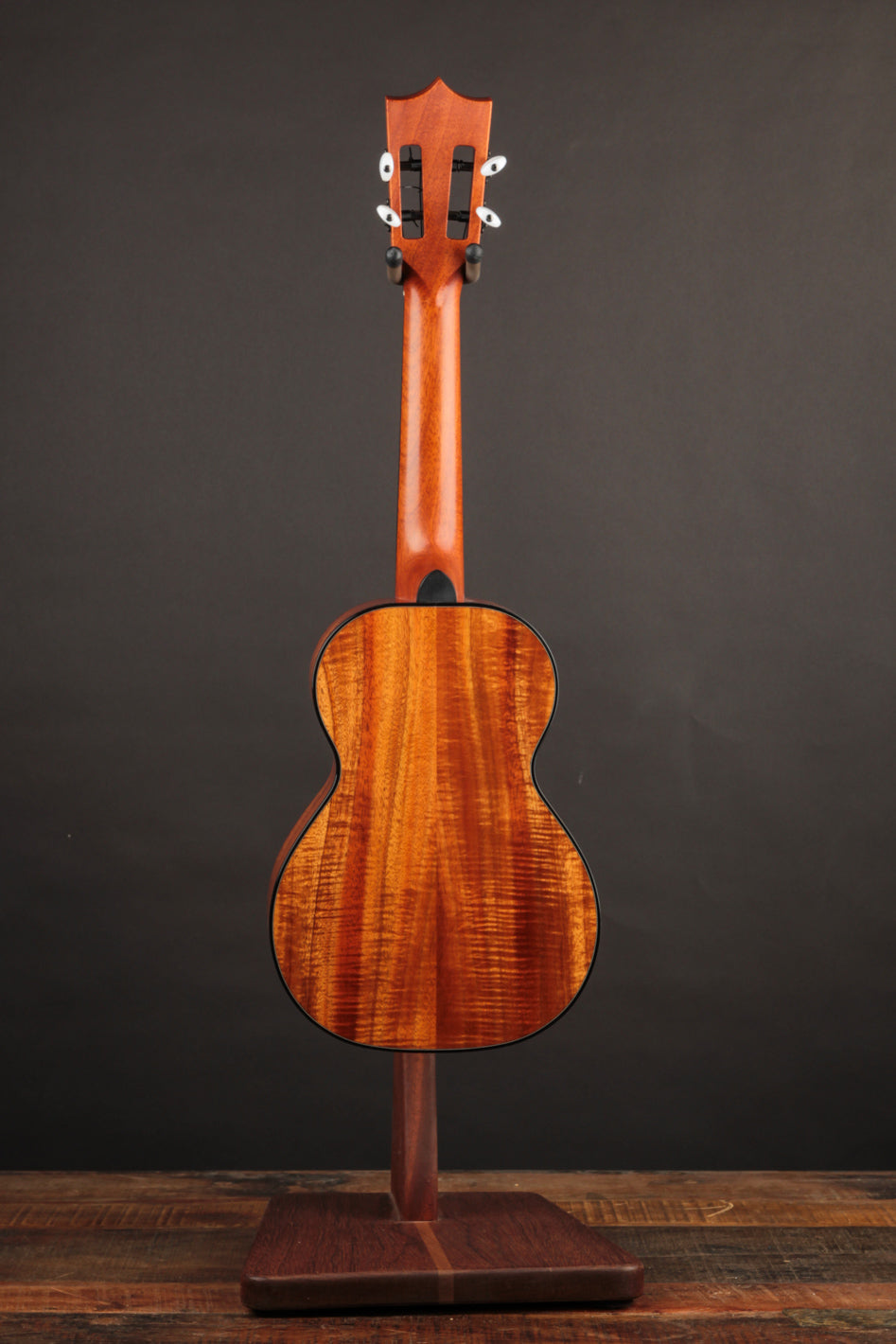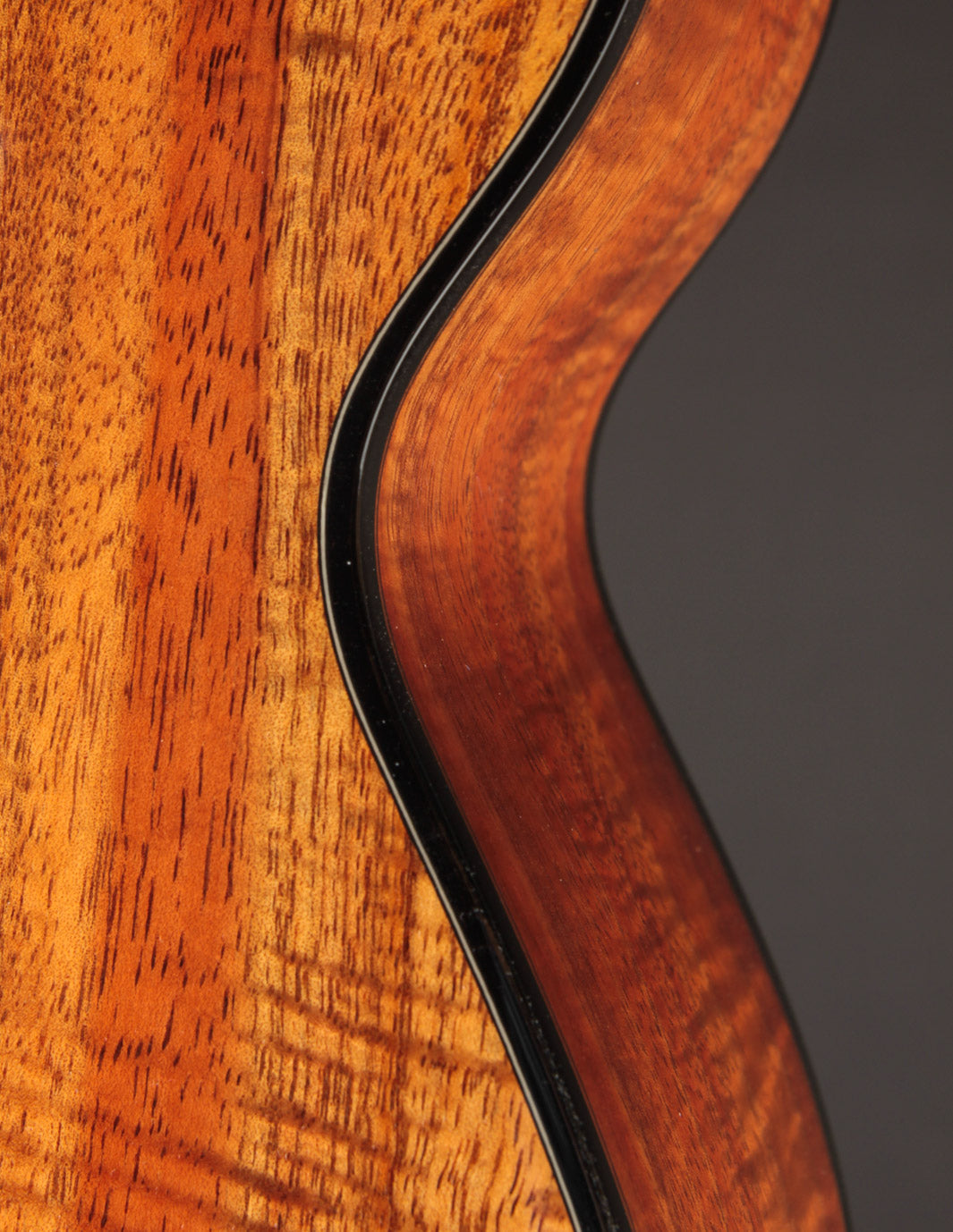 Kamaka pulled out all of the stops on this HF-2D2 Concert Deluxe. With some of the prettiest koa we've seen from their shop paired with tasteful abalone and a slotted peg head, this model delivers visually as well as tonally.