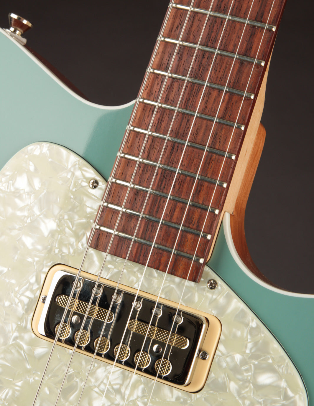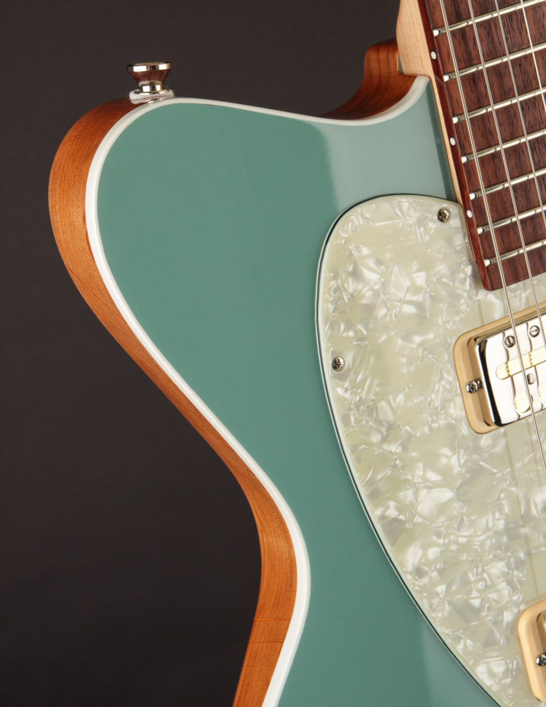Indeed, the Glide body shape that Saul uses for his builds, including this gorgeous Troubadour, is incredibly versatile, lending itself to a wide range of pickups and bridge types. What moves the Troubadour more into Fullerton territory is the use of bolt-neck construction, maple neck, and either Ash or Alder body woods - in this case, a 1-Piece Portland Alder body painted in a really beautiful 1964 Volkswagen Bahama Blue (dig the Koll VW Bus, no doubt the inspiration for this color choice).