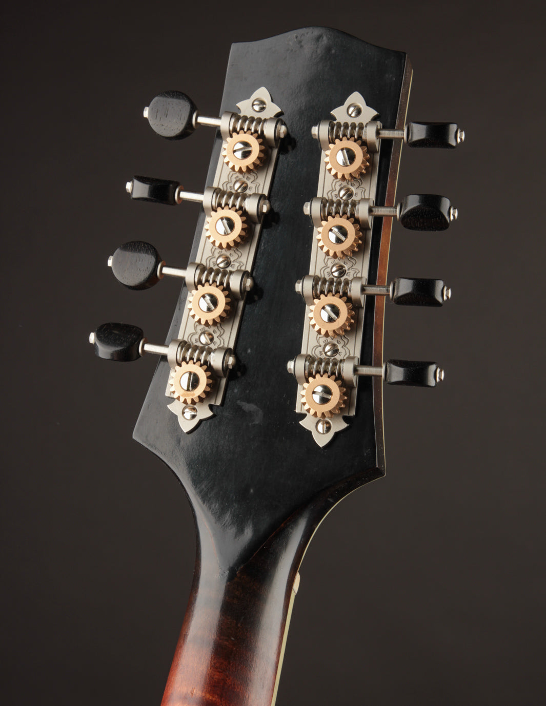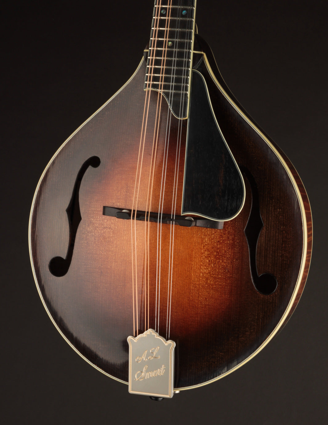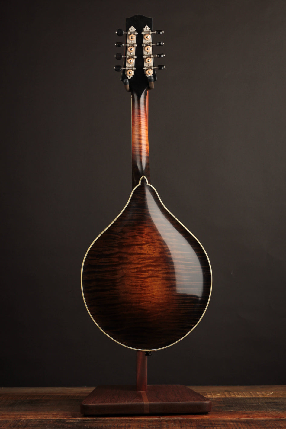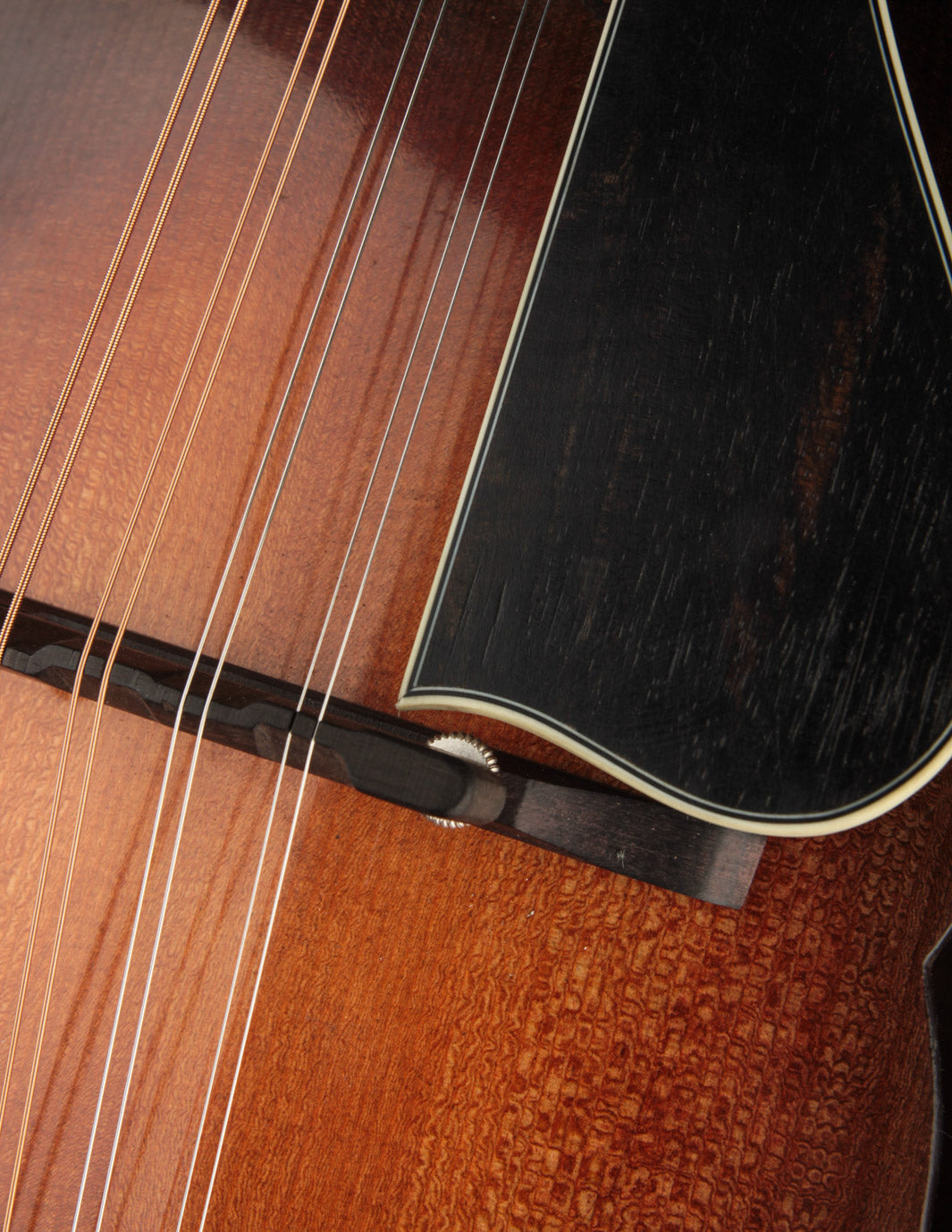 Lawrence always achieves great sonic results from Engelmann spruce, as evidenced by the open, dulcet voice on this mandolin. His best reserve maple makes for a very special instrument, indeed.
