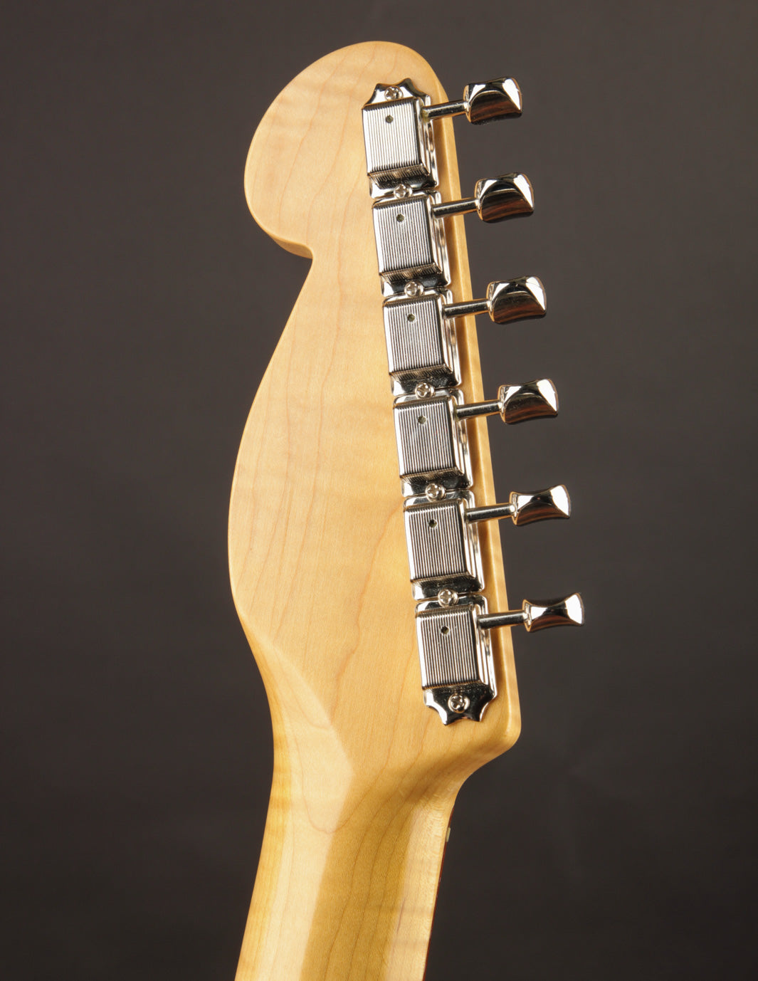 This handmade guitar utilizes cabinet aged woods (25+ years is typical), a lightweight one piece Ash body, a Brazilian rosewood fretboard made from stock dating back to 1915, pickups wound specifically for this guitar, a 3-ply guard, and electronics that are carefully matched in order to achieve the best tones possible.